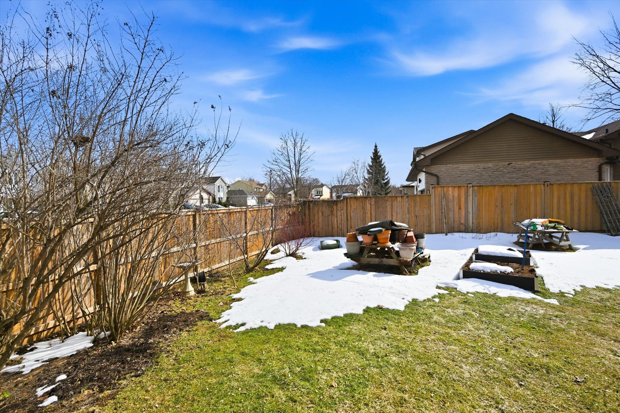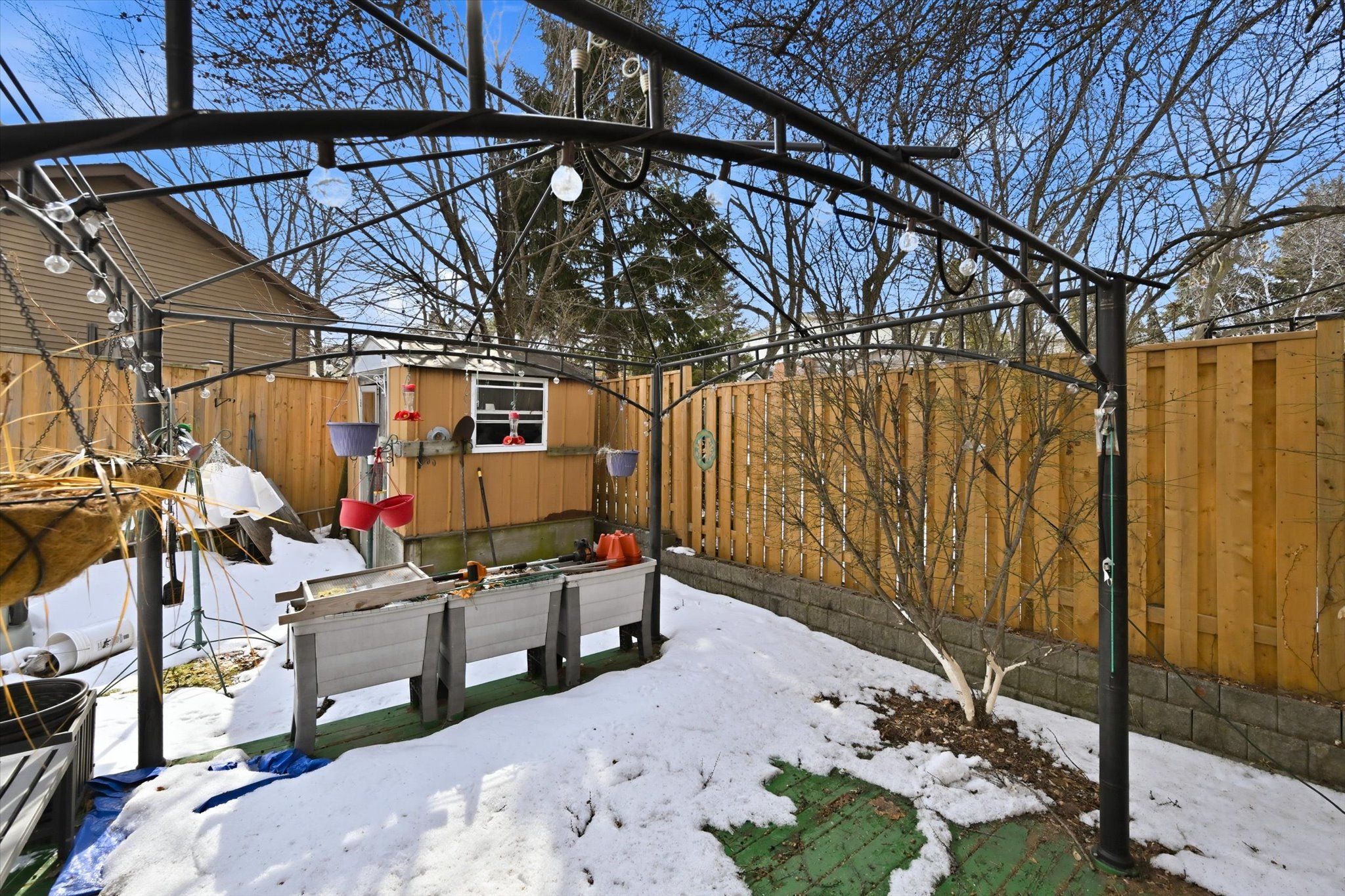 • Large fenced backyard with sun exposure, deck, and gazebo for outdoor fun.