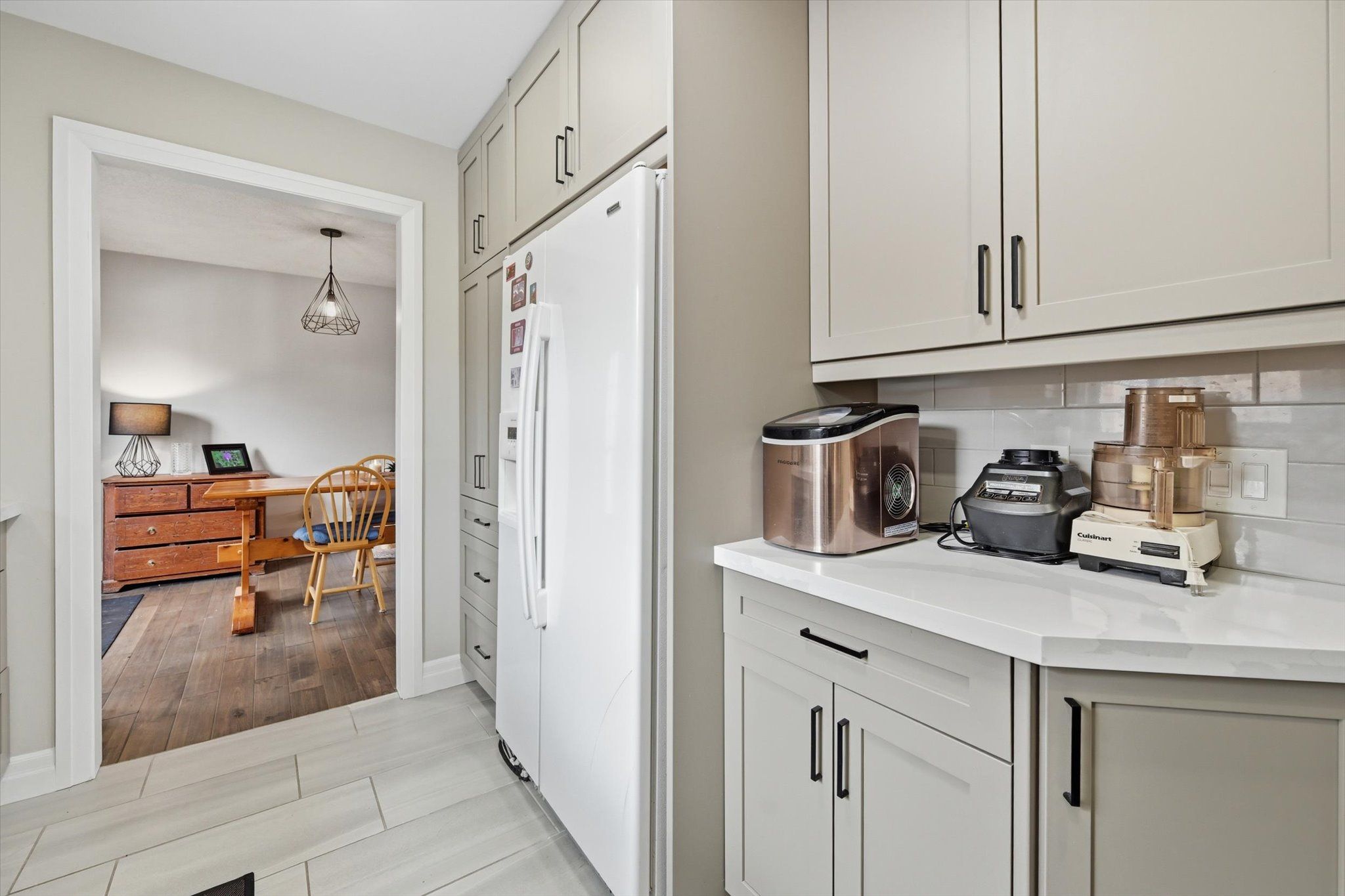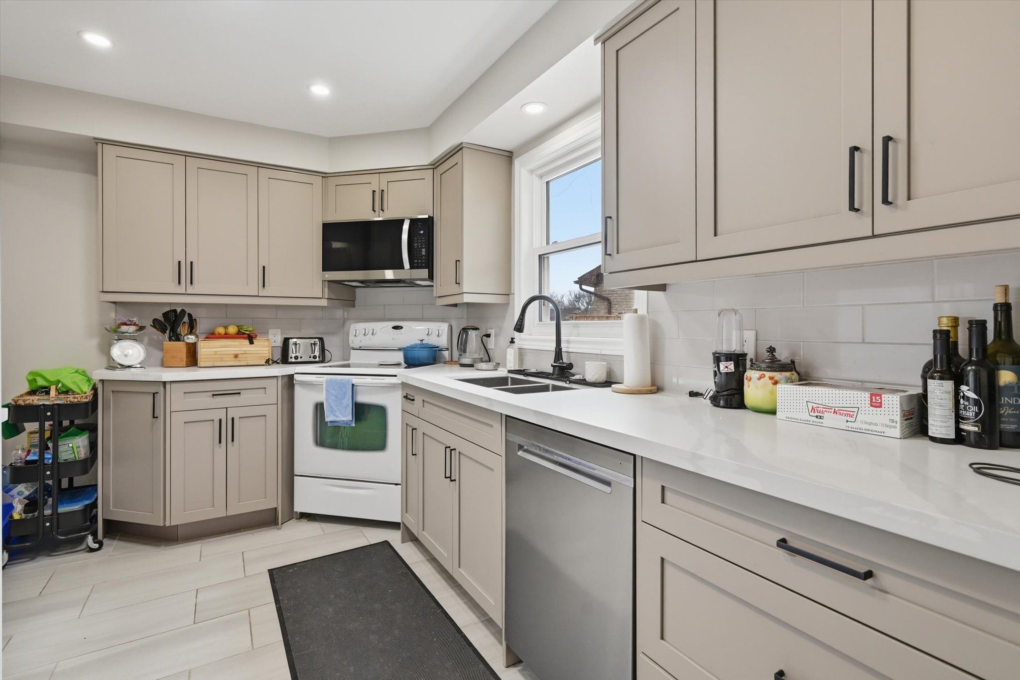 • Modern kitchen with quartz countertops and contemporary finishes.