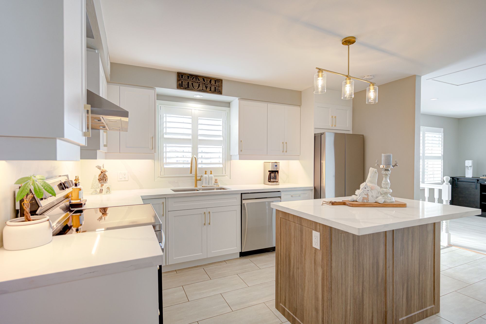 • New kitchen with quartz countertops and a functional island for entertaining.