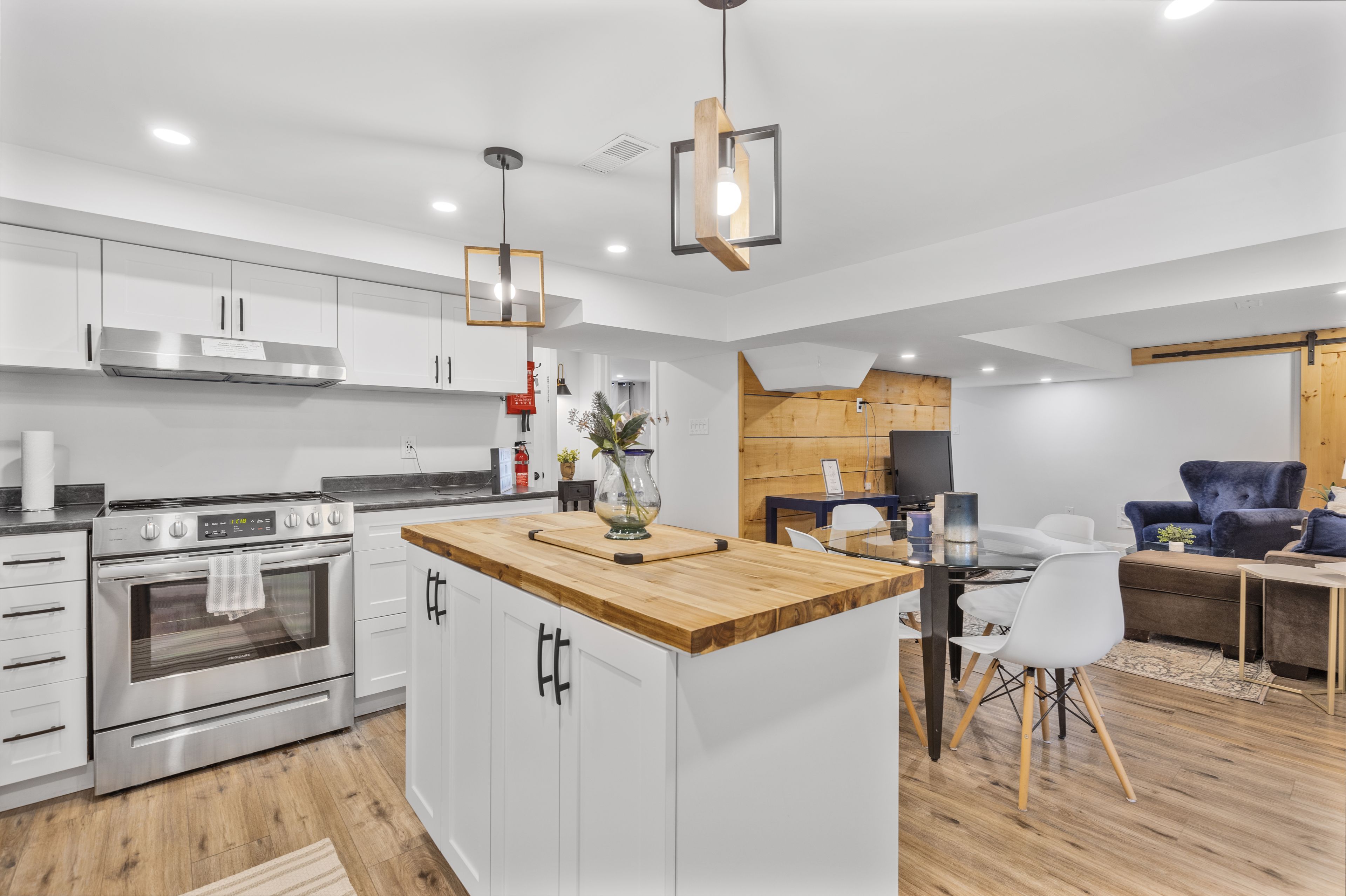 • Updated main floor laundry and modernized kitchens and bathrooms.