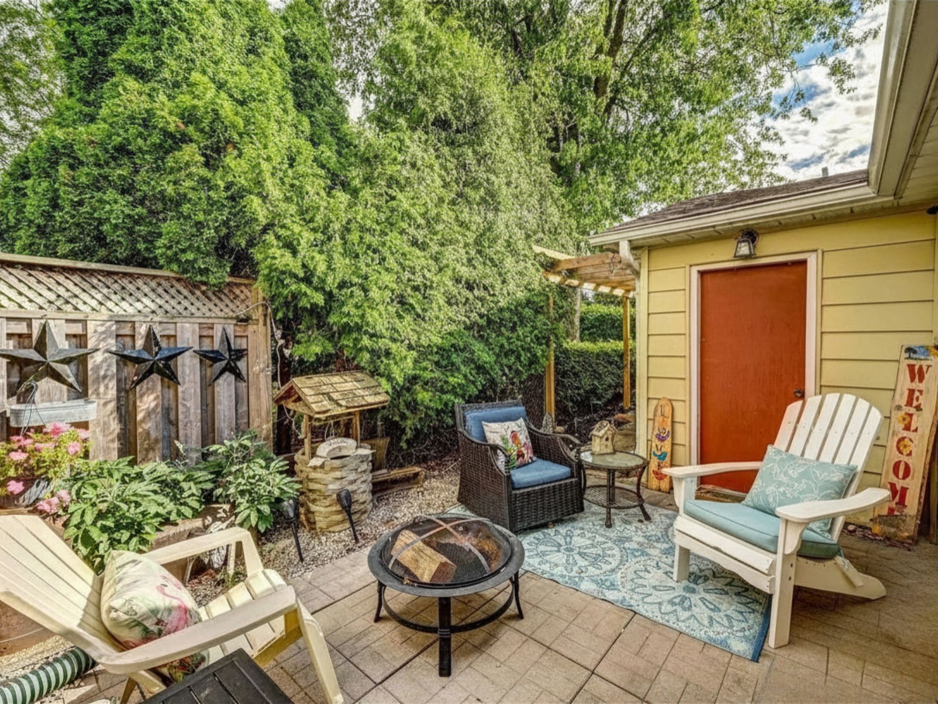 • Large covered porch perfect for morning sun and relaxation.