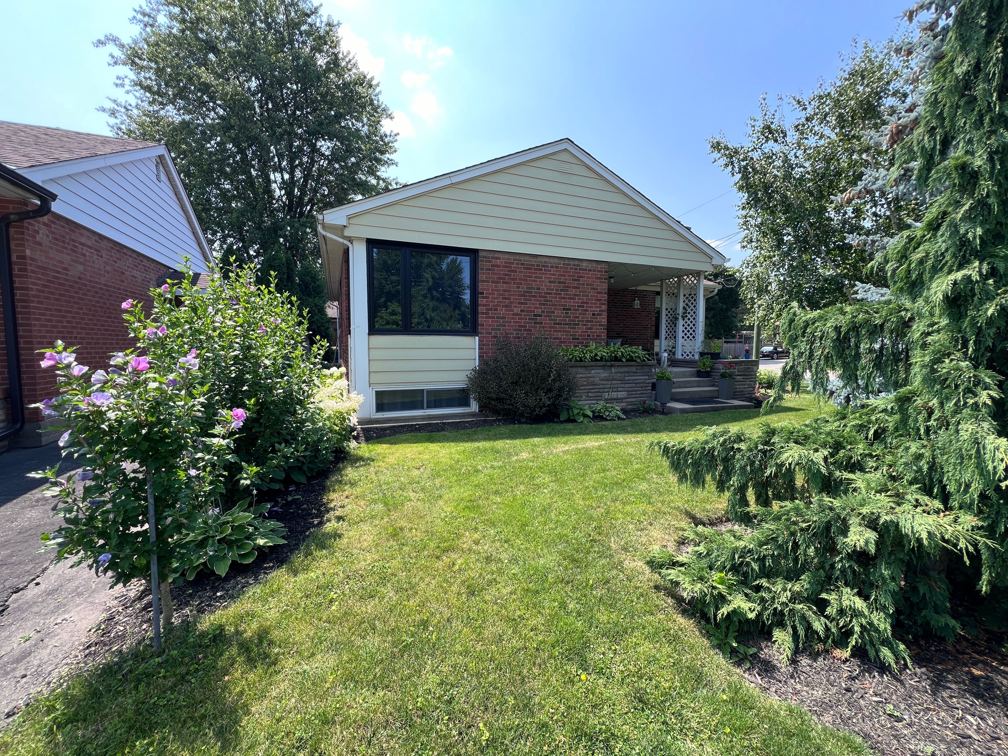 Located on a quiet court, surrounded by new custom build homes and towering mature trees, this property sits on a beautifully landscaped lot that turns heads in every season! The large covered front porch faces east, filling with morning sun and offering the perfect spot to take it all in. The double car garage with inside entry is a true standout in this neighbourhood, offering parking for six total between the garage and four-car driveway. The home has had significant updates throughout. Major mechanical upgrades include a new high-efficiency furnace (2024), heat pump/ac (2024), full attic insulation, and a new roof (2022). Windows have been replaced (2020-2024). Upgraded sound and fire insulation was added beneath bedroom and bathroom floors, and new engineered hardwood runs through the bedrooms and hallway. Main floor laundry adds everyday convenience, alongside a new fridge and dishwasher. Both bathrooms have been fully transformed! The main bath completely gutted with new subfloor, insulation, and plumbing, and the primary bedroom features a beautifully finished ensuite with an enclosed glass shower and european wall-hung toilet. The lower level is a fully self-contained multi-generational suite with its own kitchen, living room, two bedrooms, office, full bathroom, a walk-in closet, and in-suite laundry - equally suited to extended family, in-laws or nanny. Completed in 2020 with potlights throughout, it functions entirely independently from the main floor. The property features a pergola-covered patio surrounded by gorgeous gardens and mature greenery, with inviting outdoor spaces at every turn, from the sunny front porch to the light-filled breezeway patio, each offering its own distinct atmosphere to unwind and enjoy.