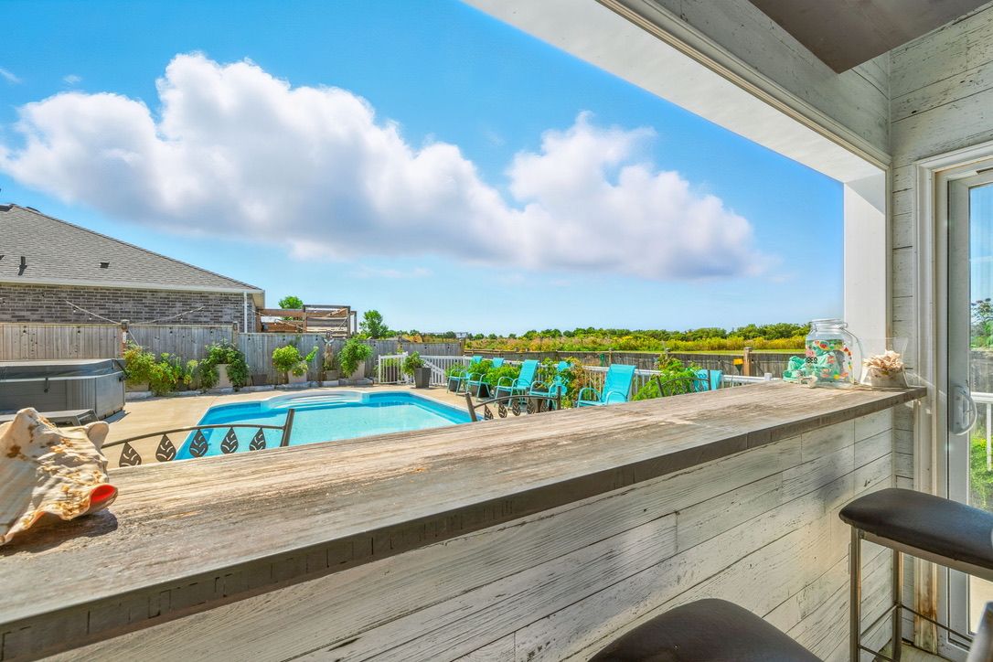 • Private backyard oasis features a heated pool, cabana, and outdoor kitchen.