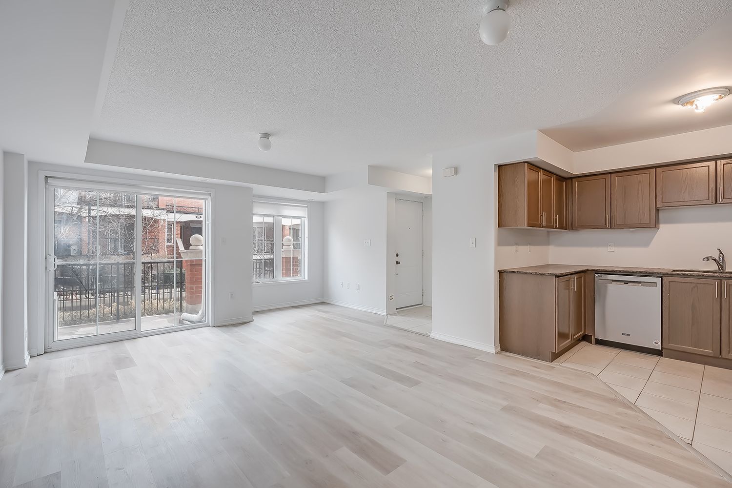 Beautiful and bright main level unit located in the waterlilies community. This stacked townhome boasts brand new laminate flooring and is just under 1000 square feet with 2 beds + 2 baths (all one level, no stairs). Spacious living room with direct access to the balcony and open to the gorgeous modern kitchen with stainless steel appliances, granite counters and ample storage space open to the dining area. Primary bedroom with a 2-piece ensuite bath and walk-in closet. Great sized 2nd bedroom + 4 pc main bath. In-suite laundry, 1 underground parking spot + 1 locker included. Located in walking distance to all amenities including schools, parks, trails, shops, restaurants + easy access to the qew + 407. Don't miss this fantastic rental opportunity.