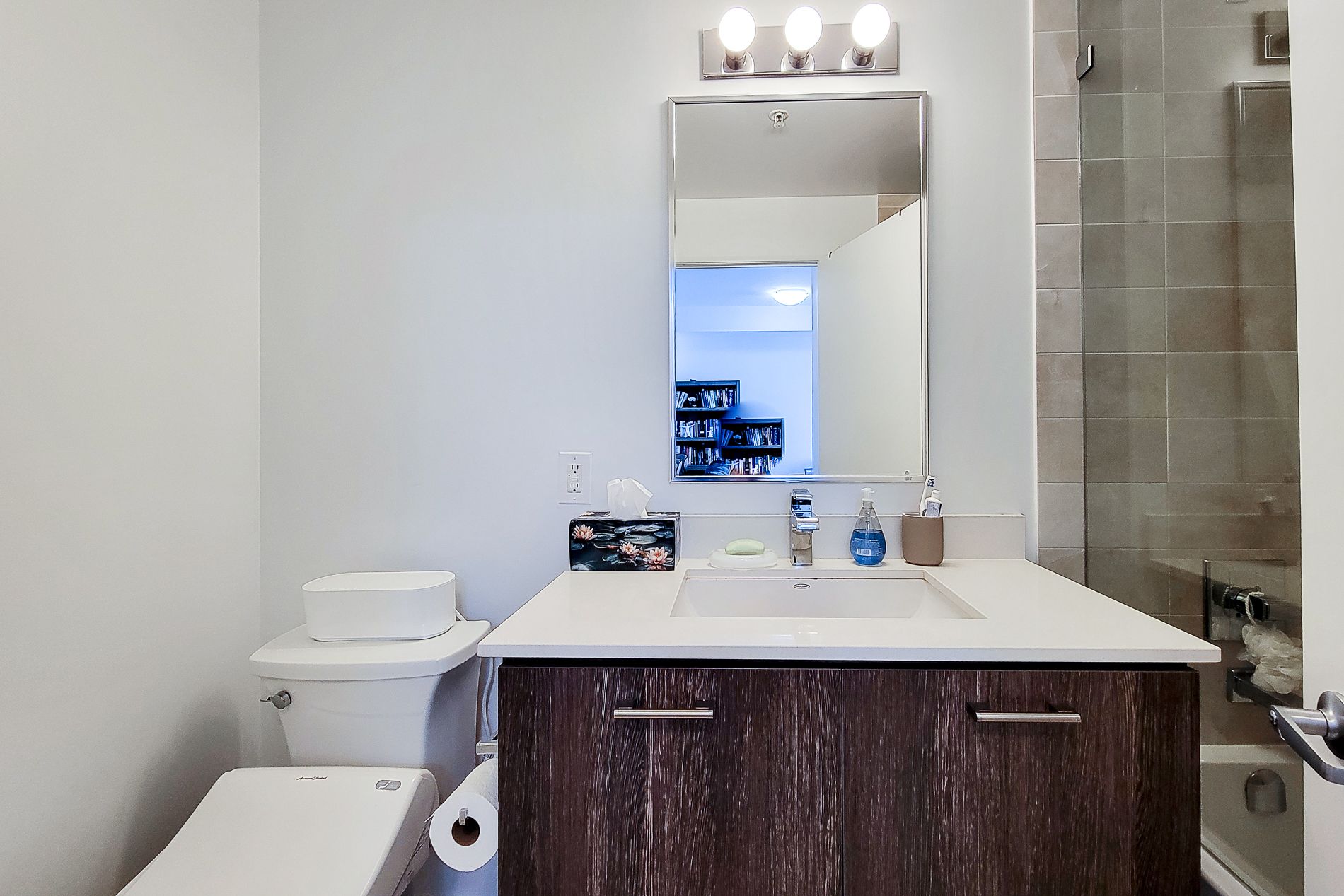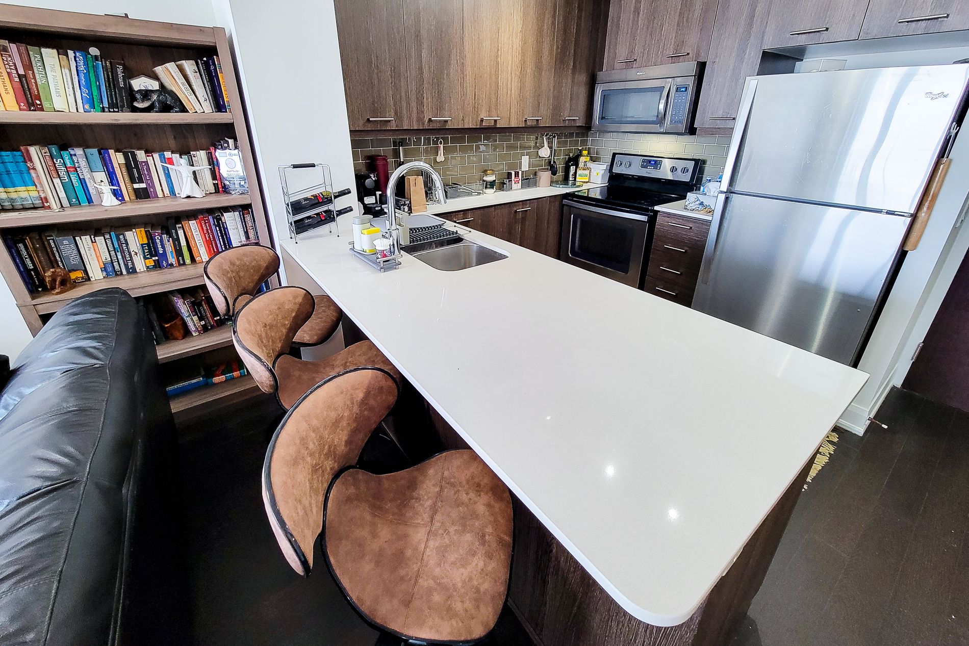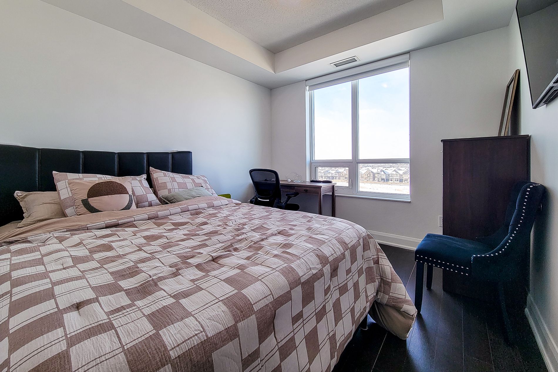 • Furnished one-bedroom plus den suite with modern finishes.