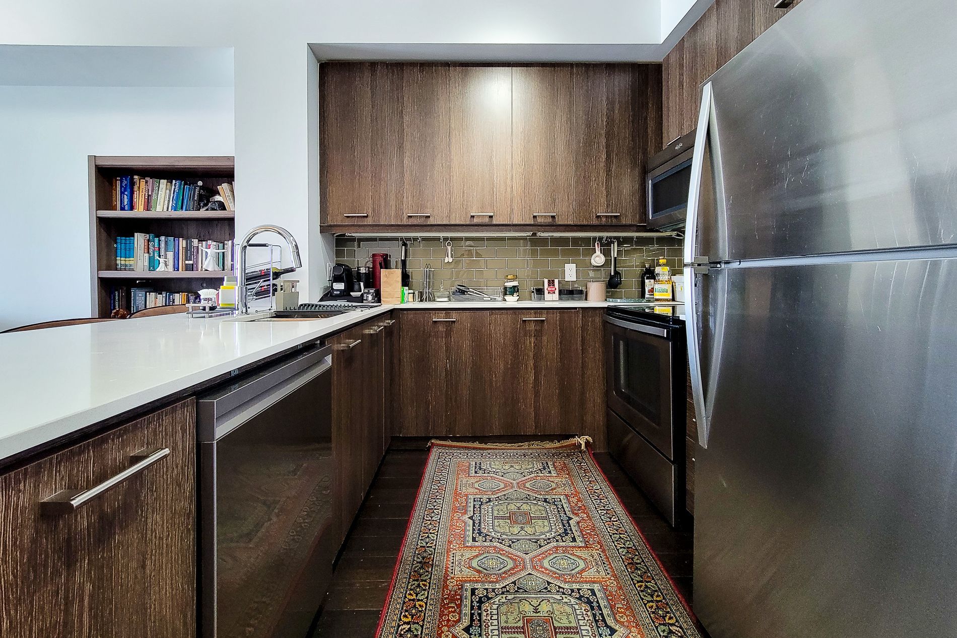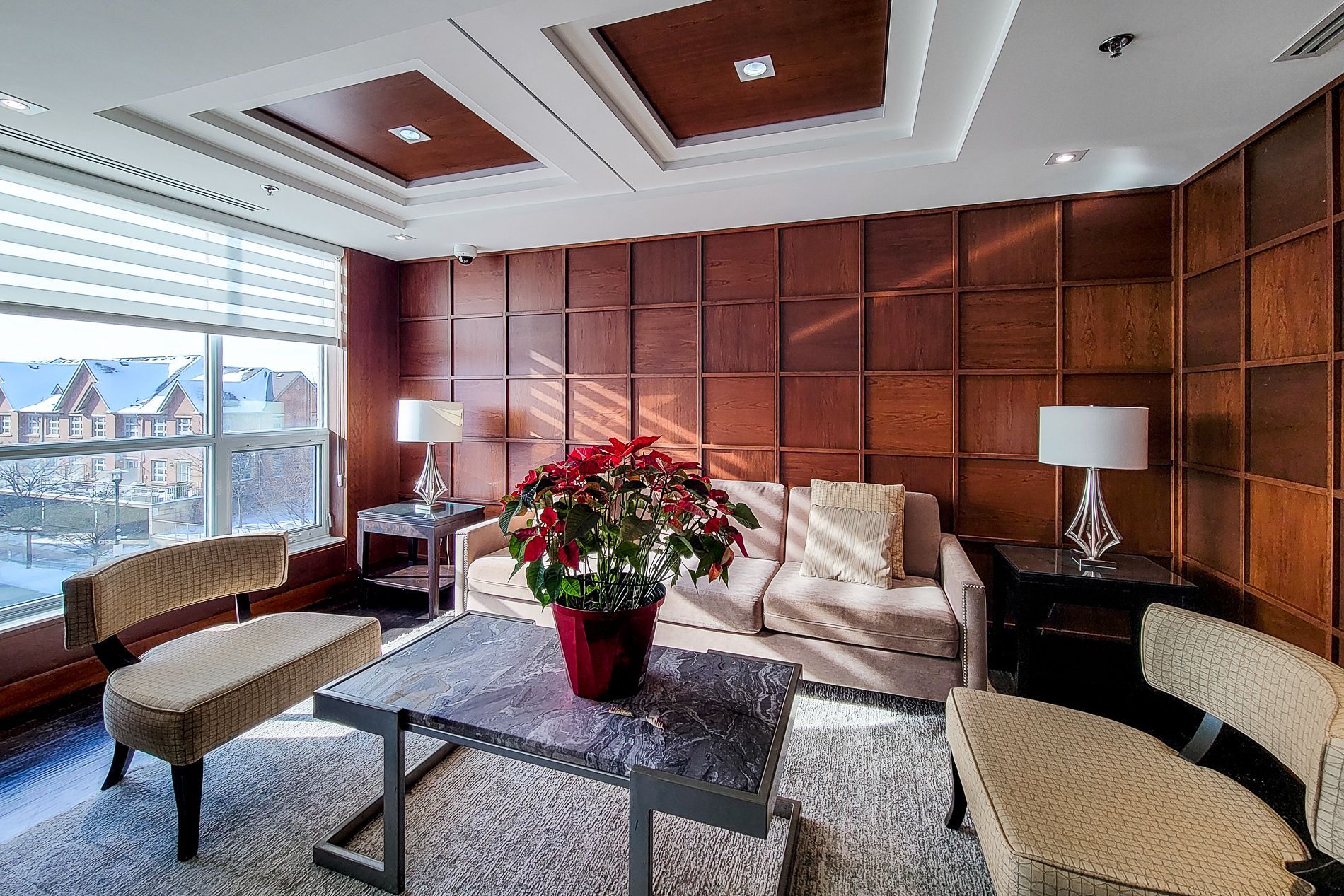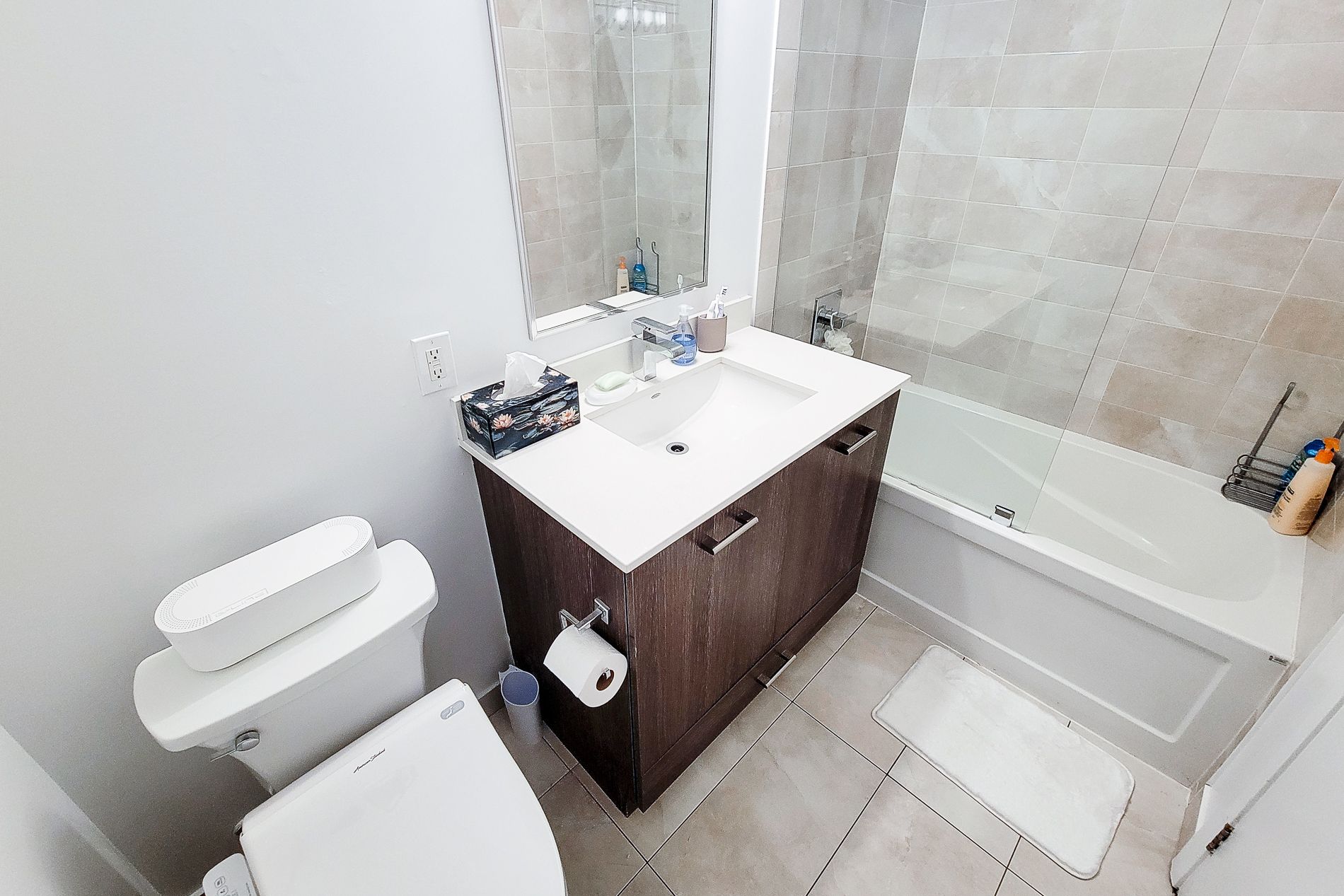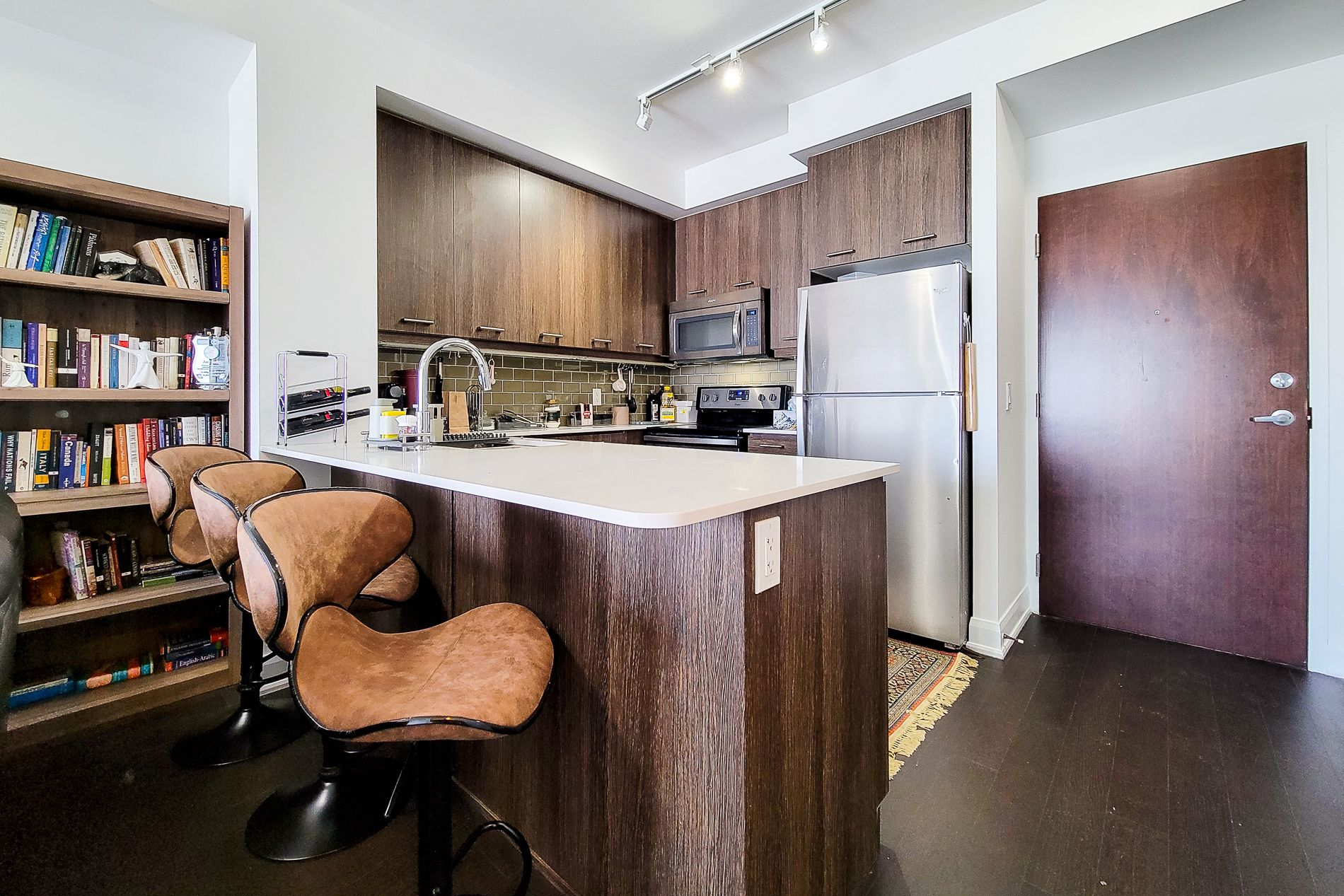 • Furnished one-bedroom plus den suite with modern finishes.