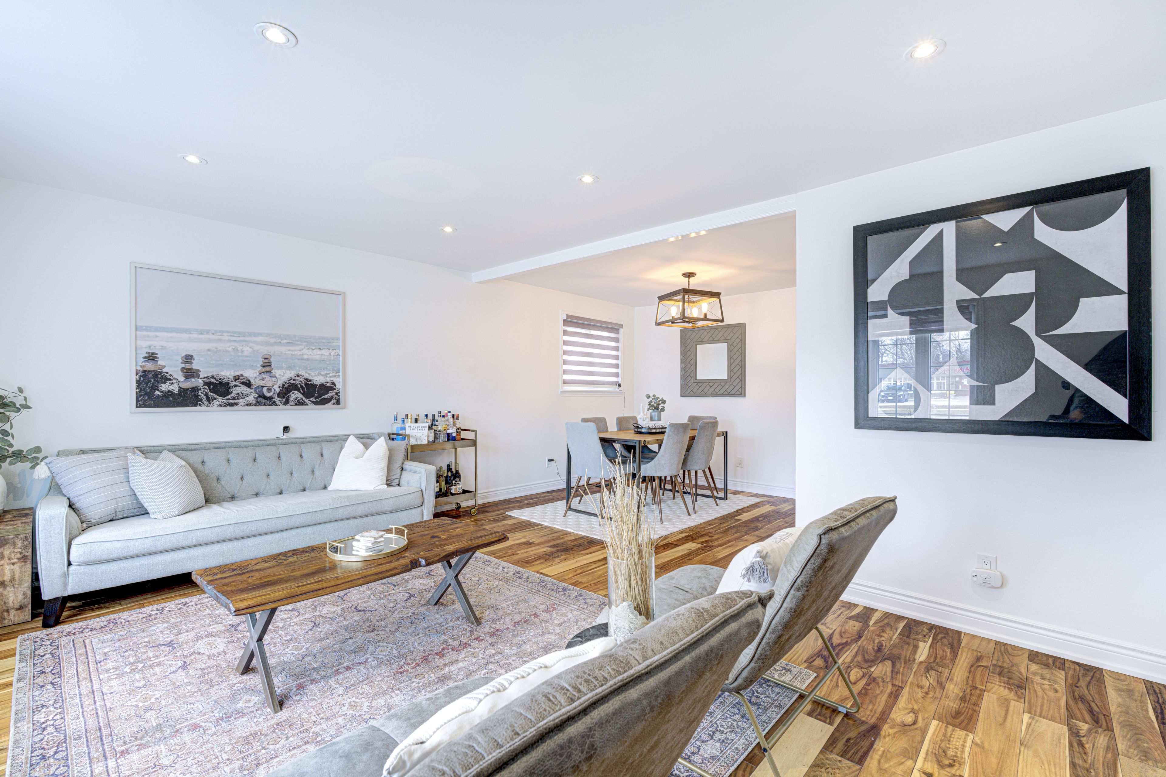 • Bright interiors with smooth ceilings, pot lights, and hardwood flooring.