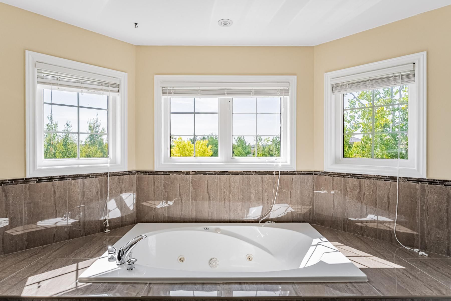 Ravine lot! Stunning 3,342 sq ft (mpac) stately home in desirable westmount, featuring a 50 ft premium frontage backing onto serene greenspace. Impressive two-story family room with soaring palladium windows and cozy gas fireplace. Elegant double-door entrance leads to a sunken living room and a private main floor office with fireplace. Gleaming hardwood floors flow throughout. The upgraded eat-in kitchen boasts stainless steel appliances and polished marble countertops. The luxurious primary suite includes a spacious sitting area and a contemporary 5-piece ensuite. Fantastic location in beautiful westmount community close to school and just minutes from many parks & trails, hospital, soccer club, lions valley park, sixteen mile creek, shopping & many more amenities!