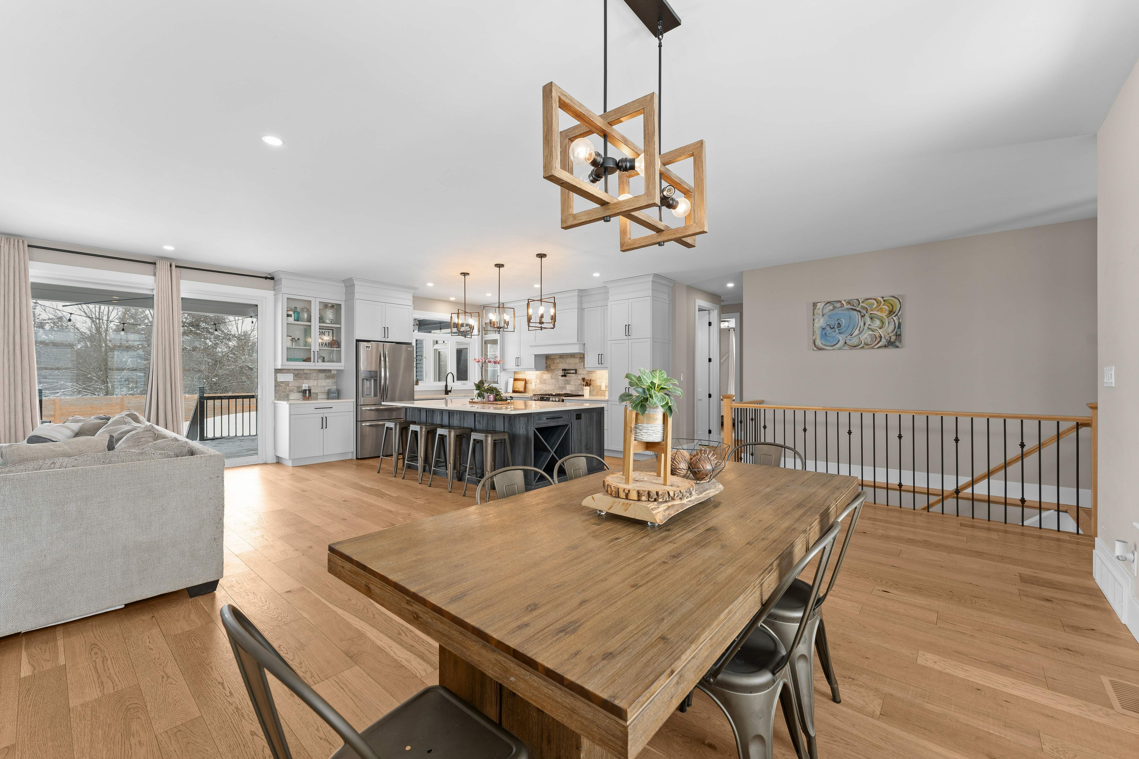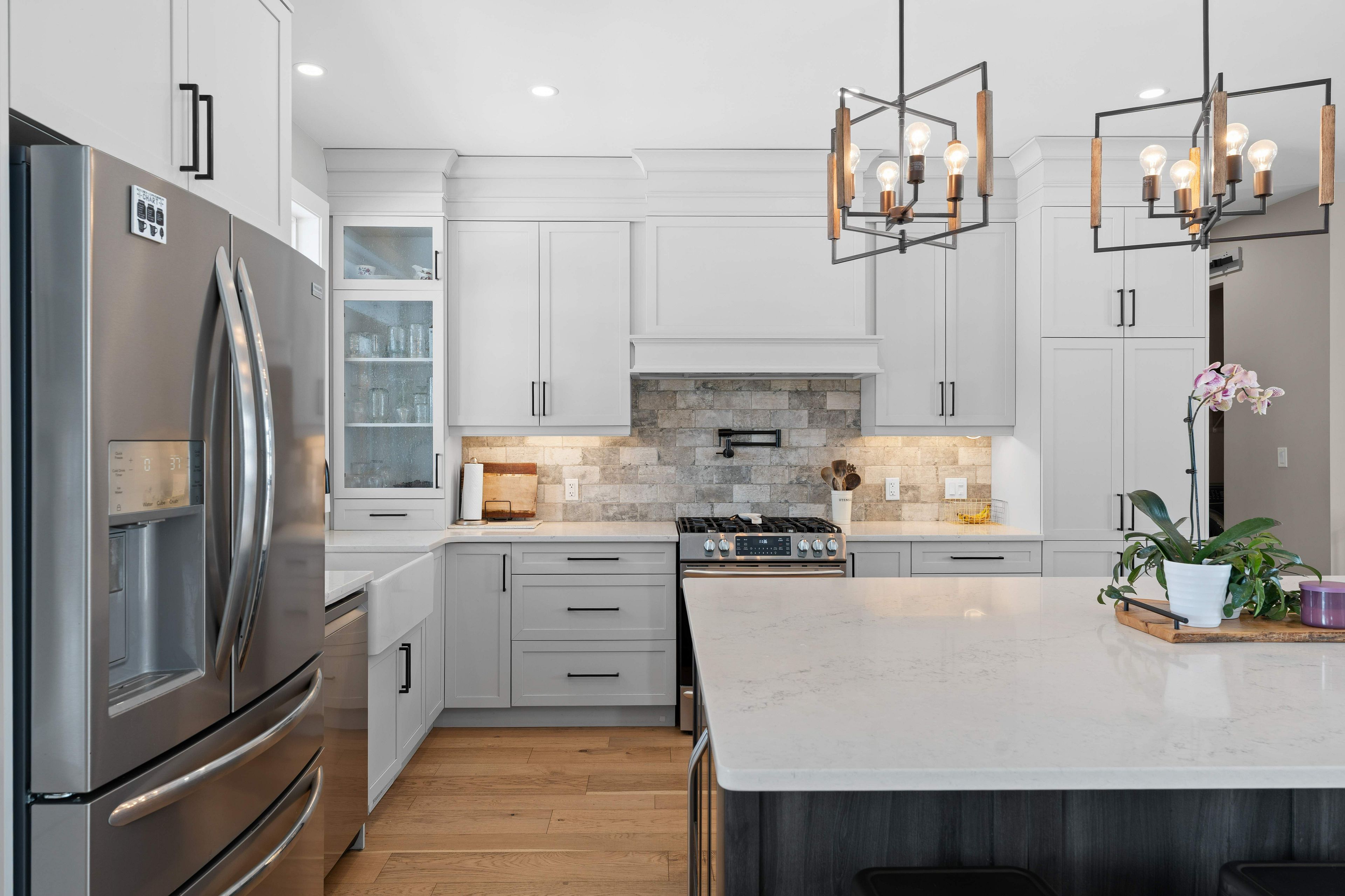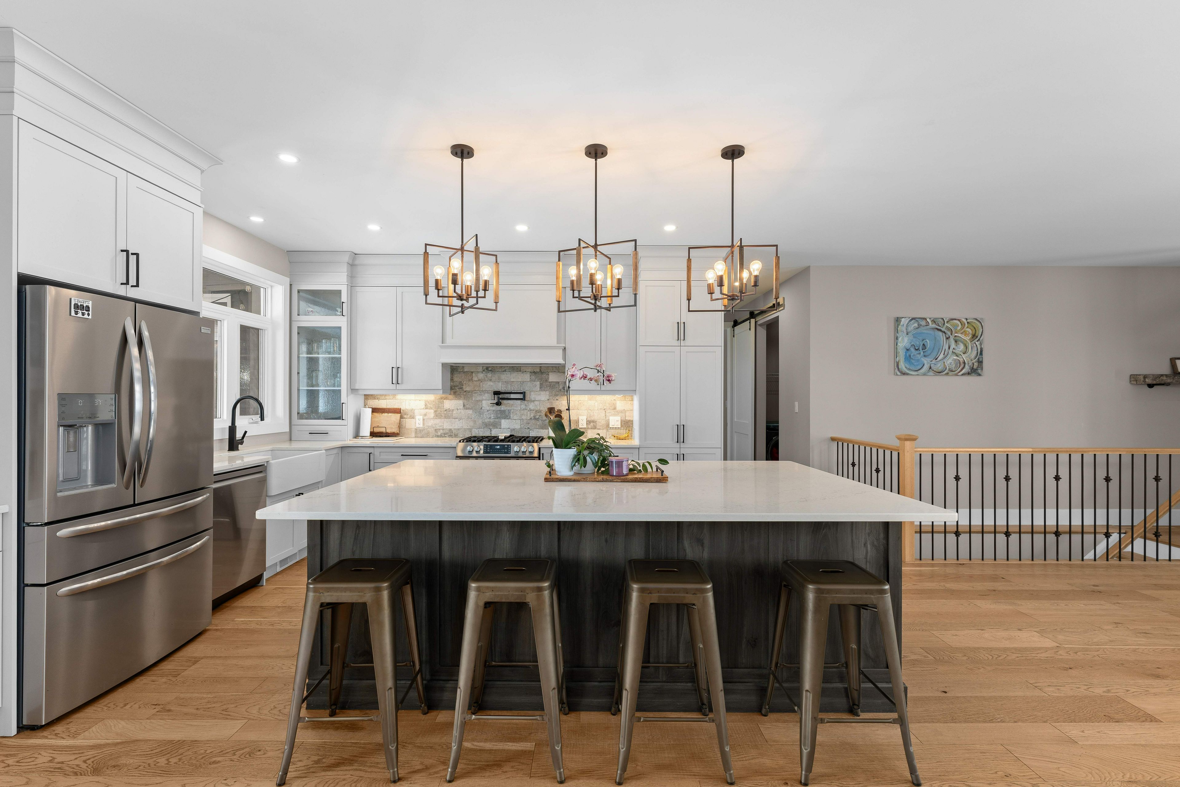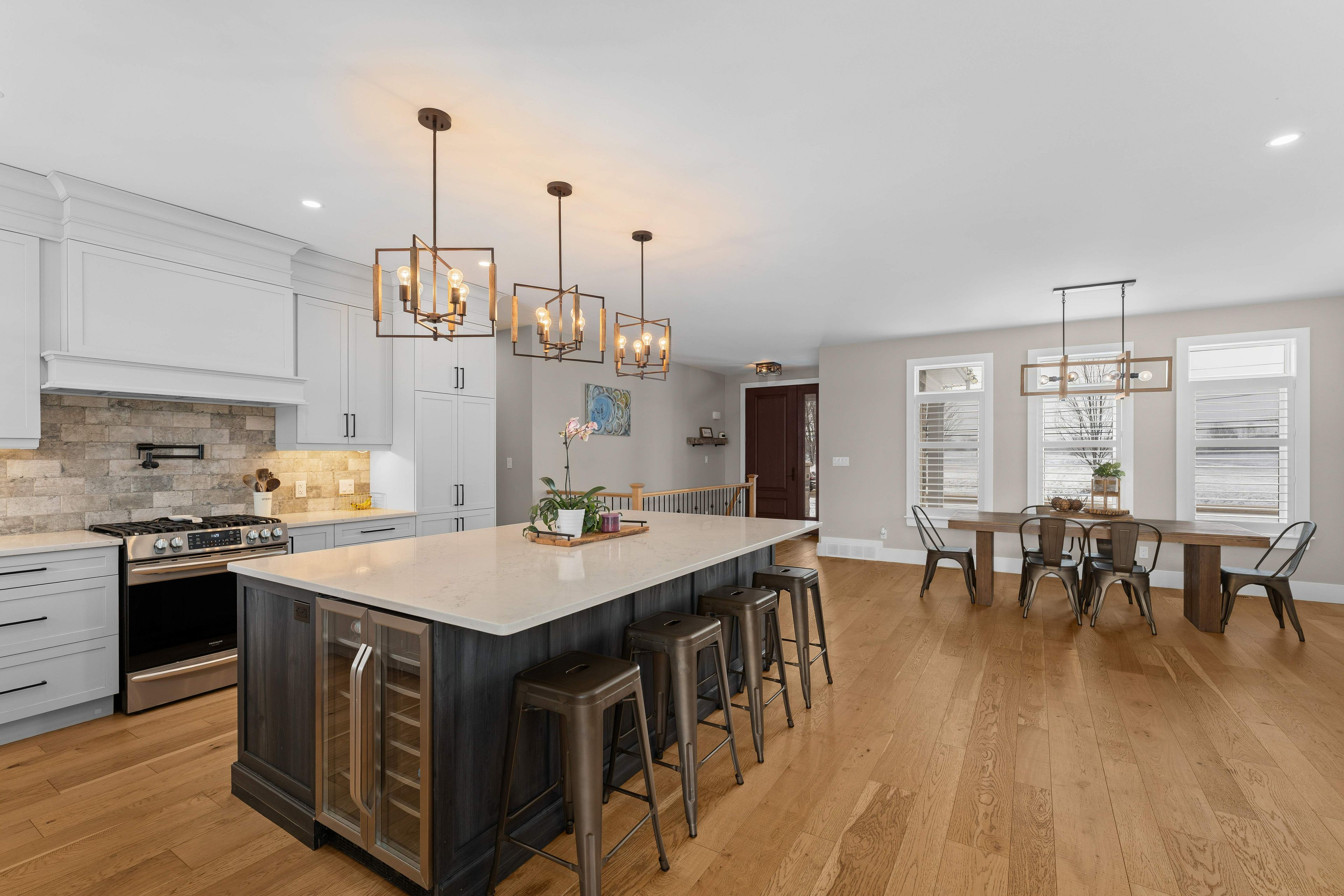 • Chef's kitchen with stainless steel appliances and large island for entertaining.