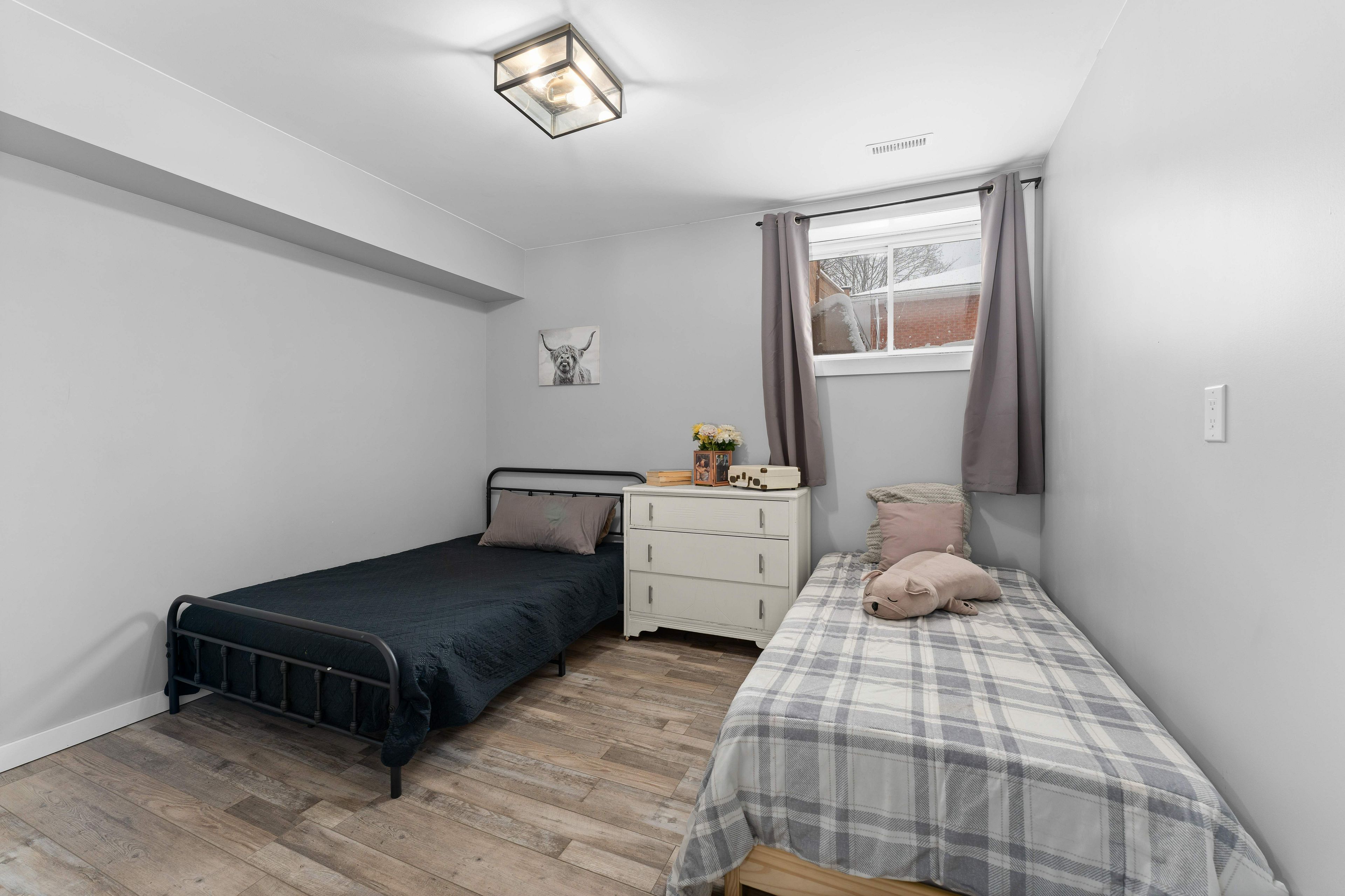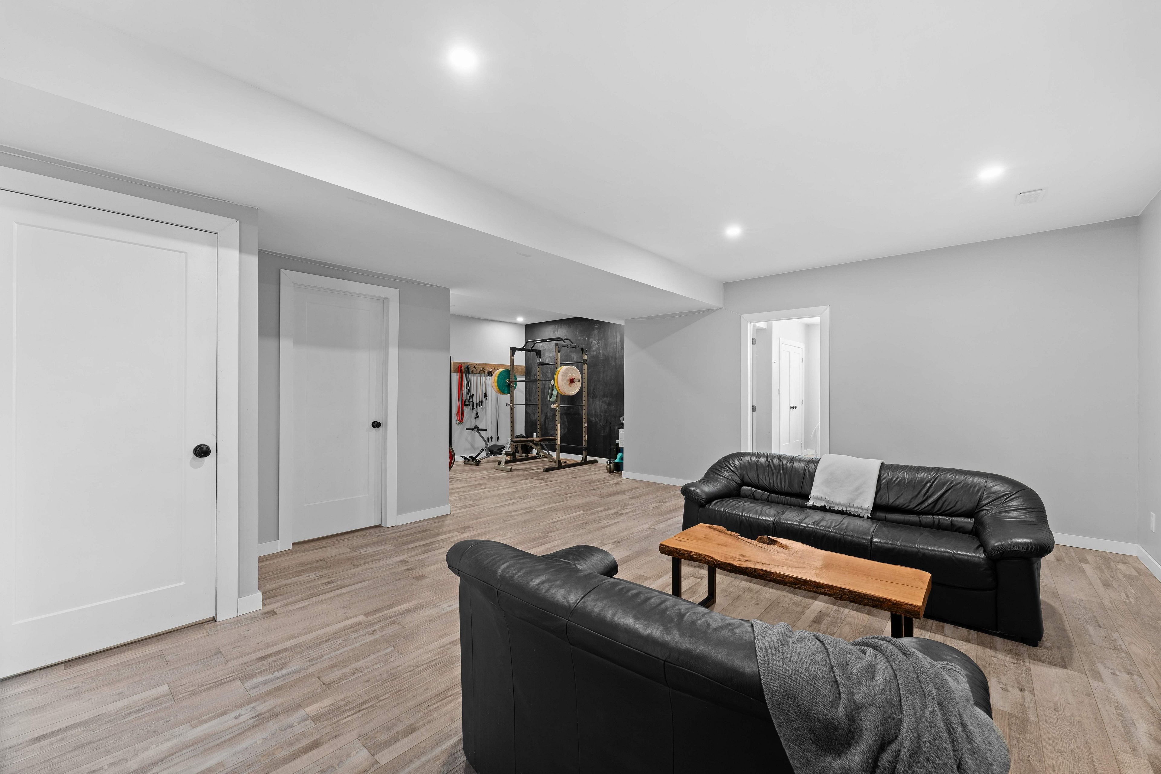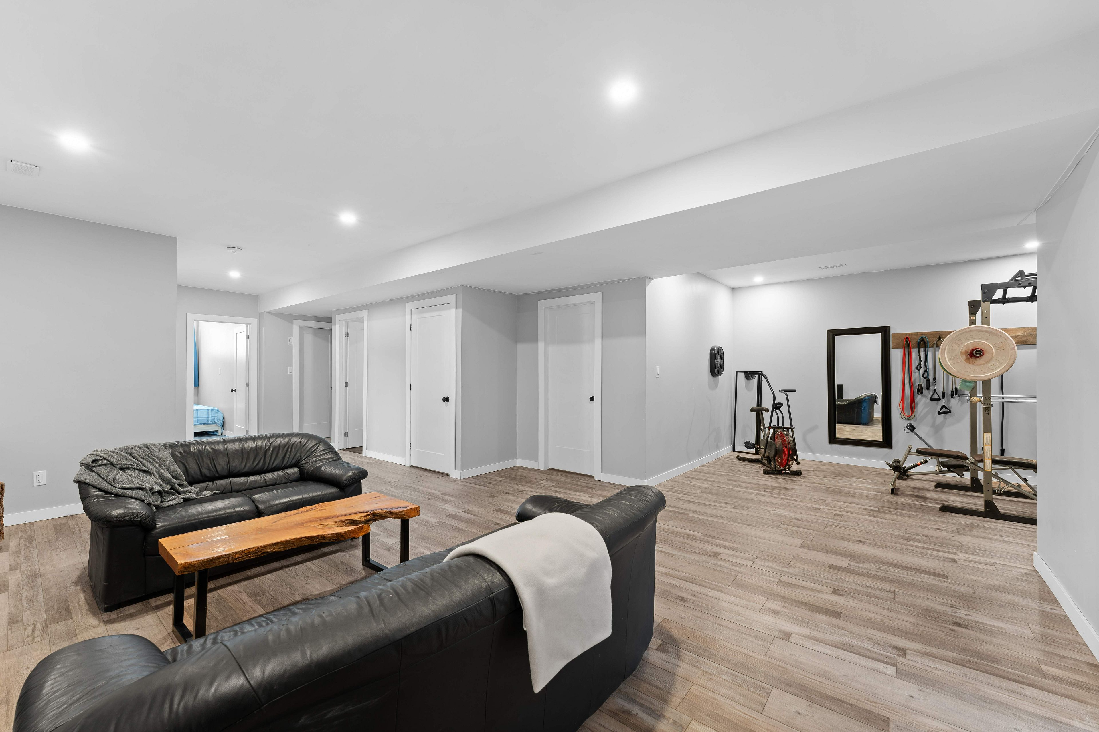 • Fully finished basement with additional bedrooms, gym, and rec room options.