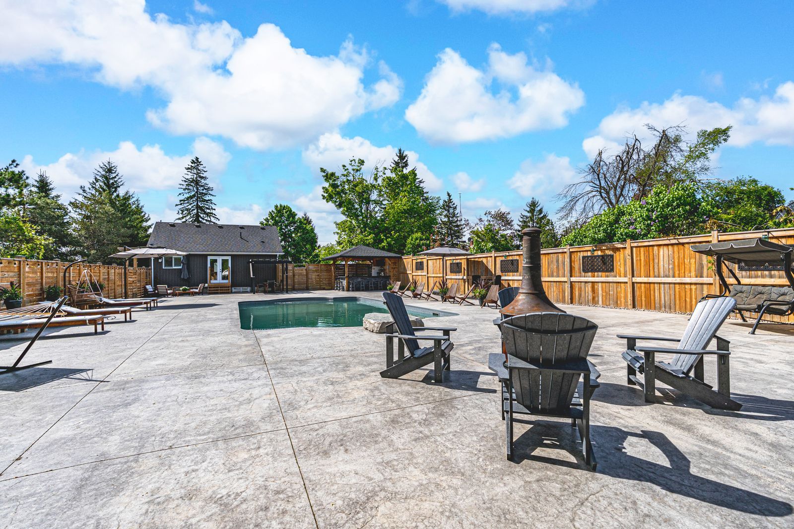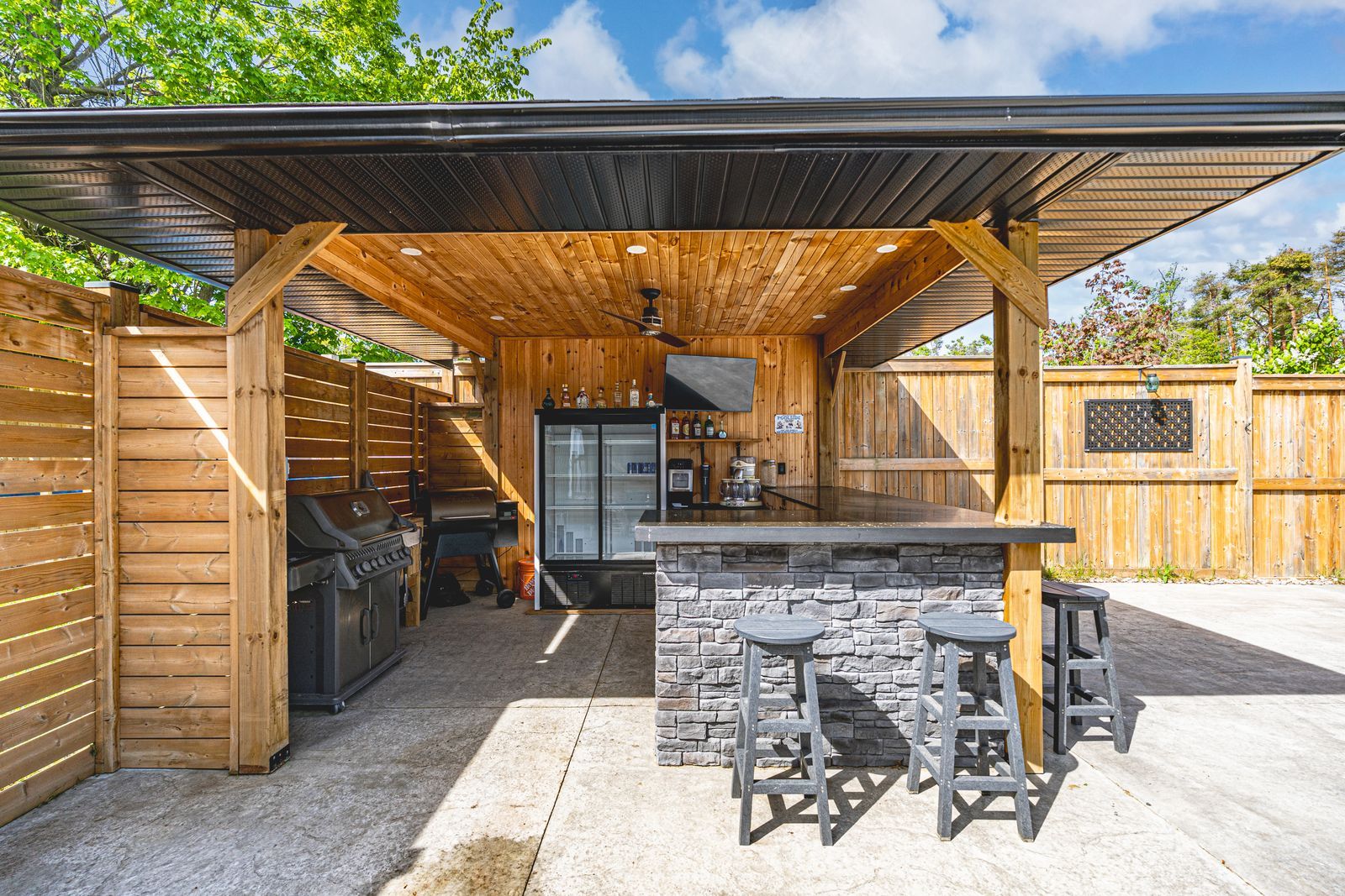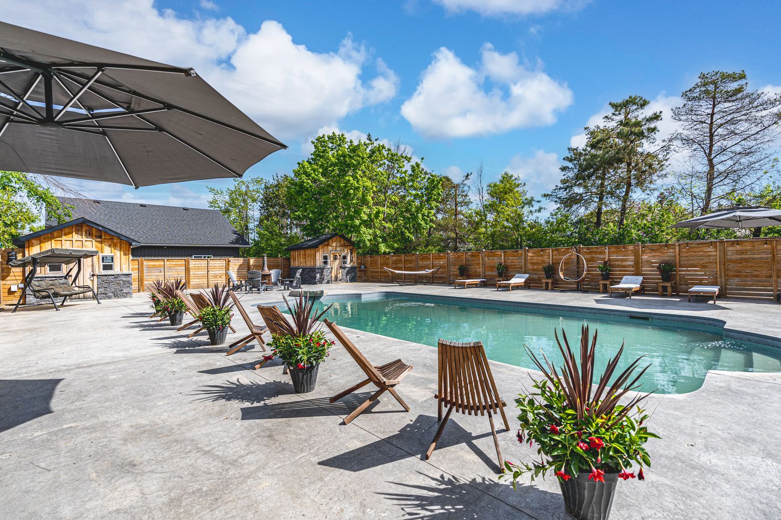 Luxury inside, paradise outside - this one was made to entertain! Live the lifestyle you've been dreaming of in this extraordinary home, set on a fully fenced 0. 72-acre lot just off highway 11 with quick access to downtown barrie in 15 minutes and orillia in 20. Enjoy year-round recreation with lake simcoe's waterfront only 6 minutes away, nearby golf courses, scenic forest trails, and snow valley ski resort just 30 minutes from your door. Behind the secure gated entry with keypad access and motion sensors, the professionally landscaped grounds showcase luxurious armour stone, a 9 x 12 ft front deck, a newly paved driveway, and a heated triple garage and workshop with full insulation, gas service, and automatic door openers. The backyard oasis is built for entertaining with a 20 x 40 ft saltwater pool, stamped concrete surround, two powered cabanas with change rooms, and a covered bar with epoxy counters, a built-in fridge, bbq hookup, ceiling fan, and a seasonal sink. Inside, the fully renovated main level offers high-end finishes and open-concept living, with a designer kitchen boasting quartz counters, upgraded appliances, and a walkout to the poolside patio. The bathroom features a quartz vanity and glass-enclosed tiled shower, while the primary bedroom includes a cedar walk-in closet, with the option to convert the dining room into a third bedroom if desired. Added highlights include main-floor laundry, california shutters, and an engineered hardwood staircase with custom black rod railings. The finished basement adds a spacious family room with a gas fireplace and built-in shelving, a guest bedroom, office nook, and premium mechanical upgrades including a gas furnace, pressure pump, water softener, three sump pumps, and an owned hot water tank. Don't miss your chance to own this exceptional retreat - where high-end finishes meet unmatched outdoor luxury, creating the ultimate space to relax, entertain, and make every day feel like a getaway.