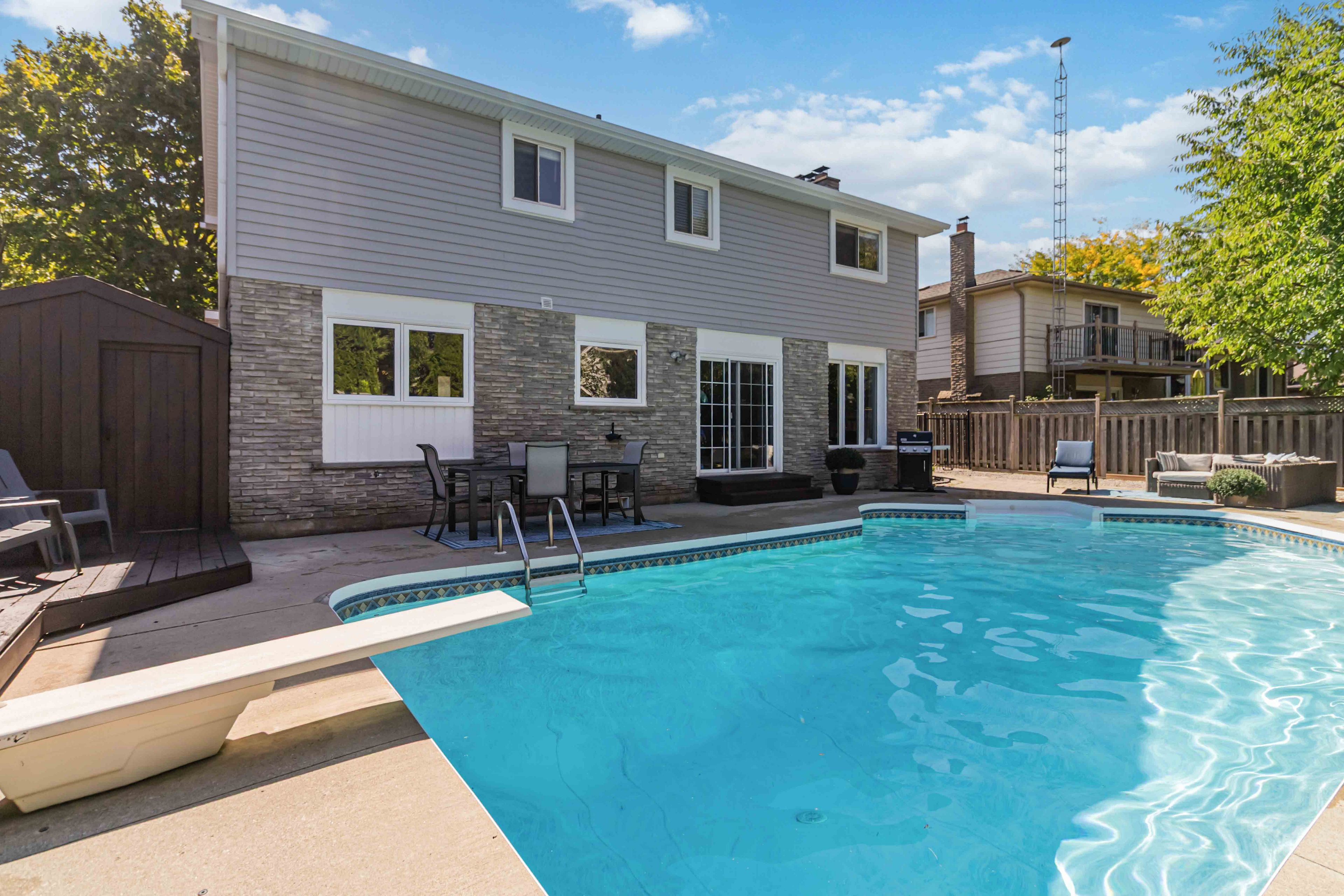 • Backyard oasis with inground saltwater pool on a quiet, child-friendly crescent.