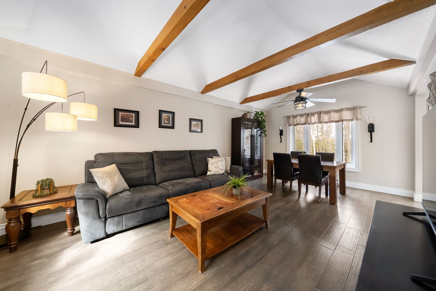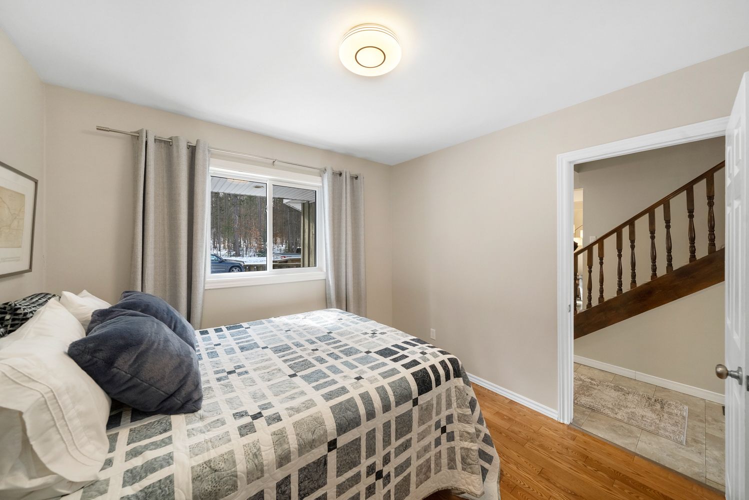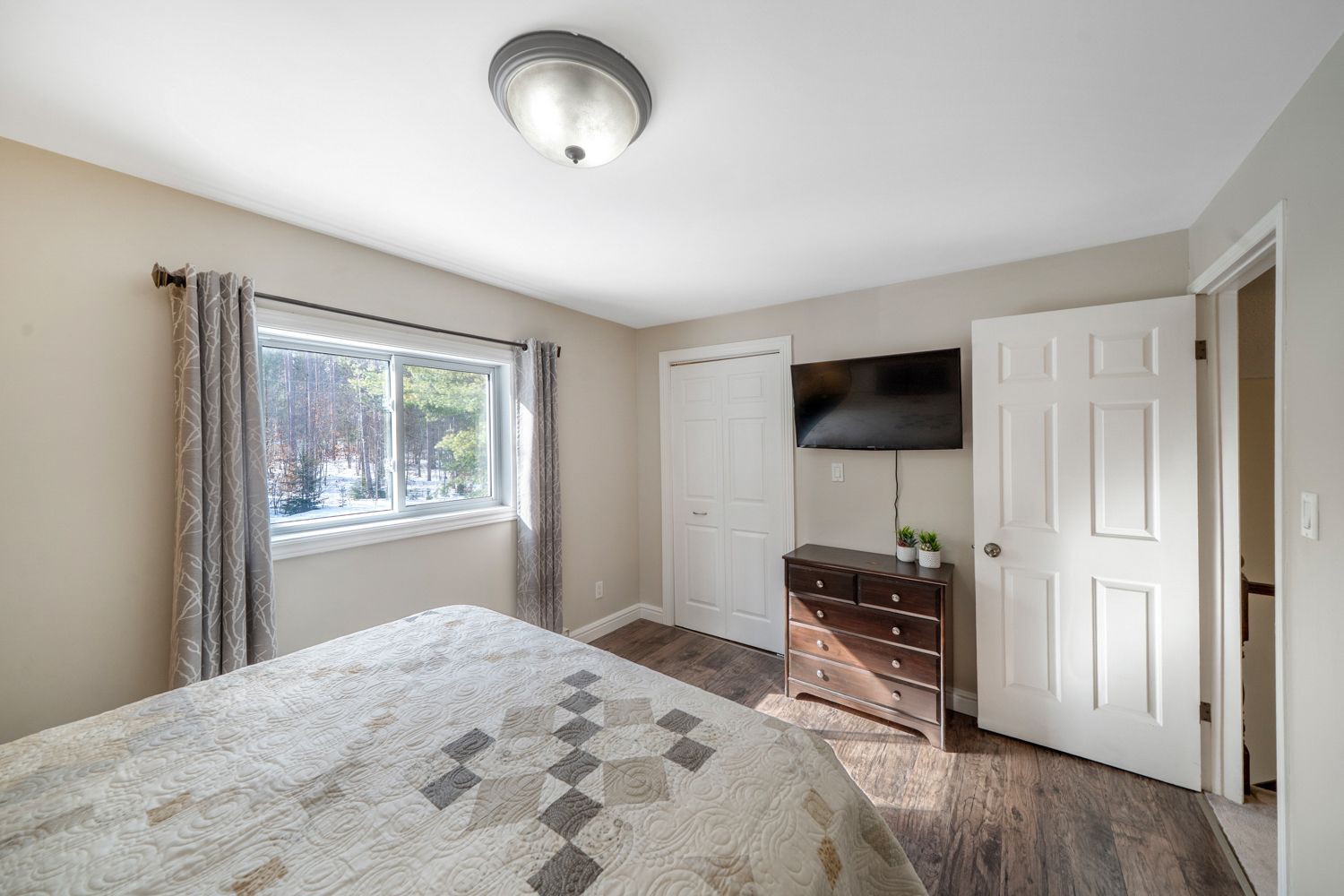 Nestled in a private rural setting on just under half an acre, this charming property offers peaceful living with scenic views of orr lake. Ideally located for year-round enjoyment, you're just moments from snowmobile trails, ski hills, and picturesque nature trails through the simcoe county forests-plus only a 2-minute walk to the local beach and boat launch. This updated, move-in-ready detached home features 3 bedrooms and 1. 5 bathrooms, offering a perfect blend of comfort and functionality. A spacious driveway accommodates up to 6 vehicles and leads to a large, convenient carport. Enter through the enclosed porch into a thoughtfully designed main floor, highlighted by a newly installed kitchen complete with stainless steel appliances and a walk-out to an elevated 11' x 12' deck overlooking the private, treed backyard-perfect for relaxing or entertaining. The inviting living and dining area showcases vaulted ceilings, exposed beams, and hardwood flooring. A main floor bedroom with a 2-piece ensuite adds flexibility and convenience. Upstairs, you'll find two additional well-sized bedrooms and a 4-piece family bathroom. The fully finished walk-out basement offers even more living space, featuring a large family room with a cozy gas fireplace and direct access to the backyard, along with a separate laundry room, office space, utility room, and cold room. Additional upgrades include a newer furnace, air conditioning, windows, and a durable metal roof. Centrally located between barrie, orillia, midland, and wasaga beach, and just 5 minutes to highway 400-this is an ideal property for commuters, outdoor enthusiasts, or those seeking a peaceful retreat close to amenities.