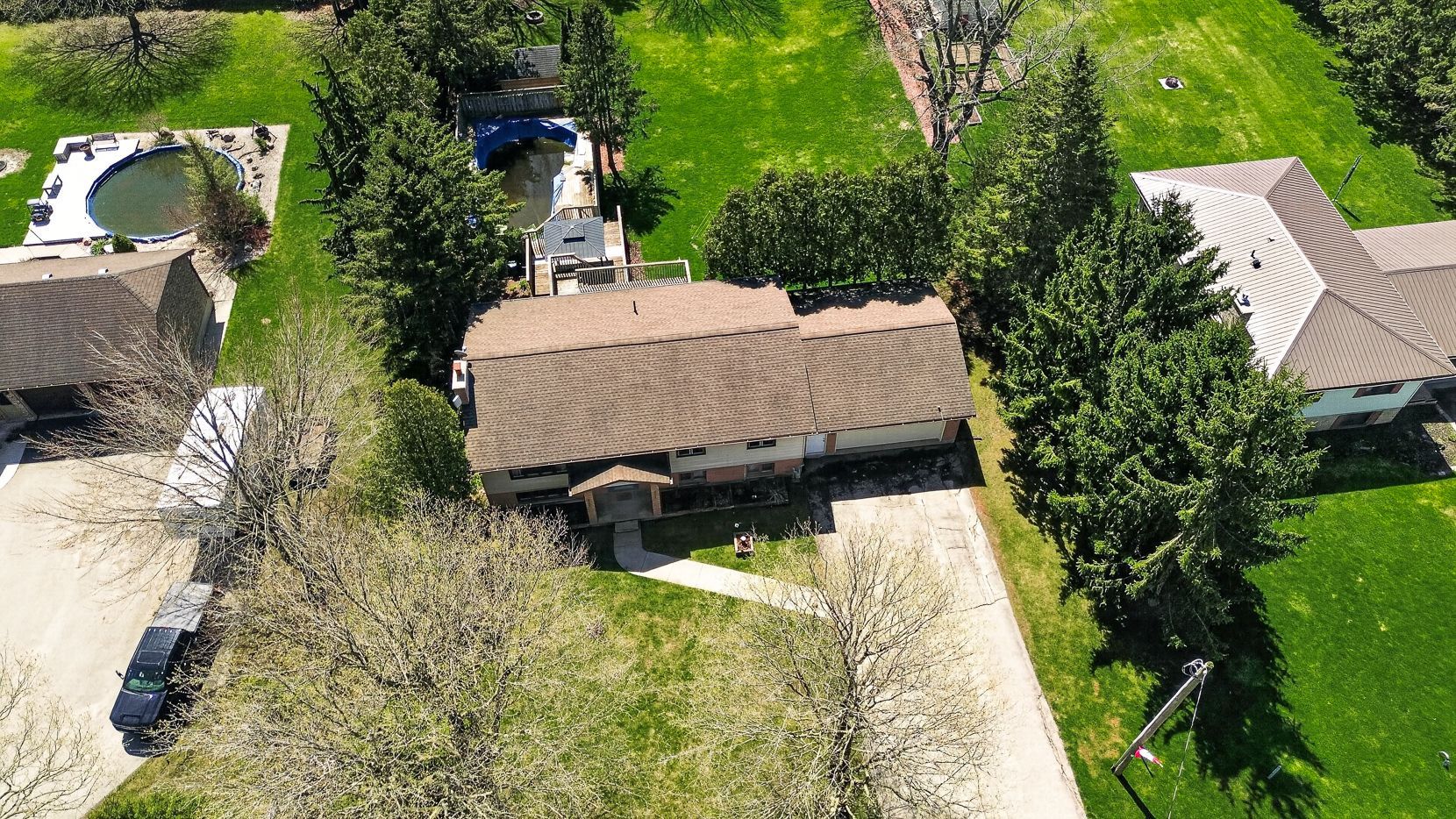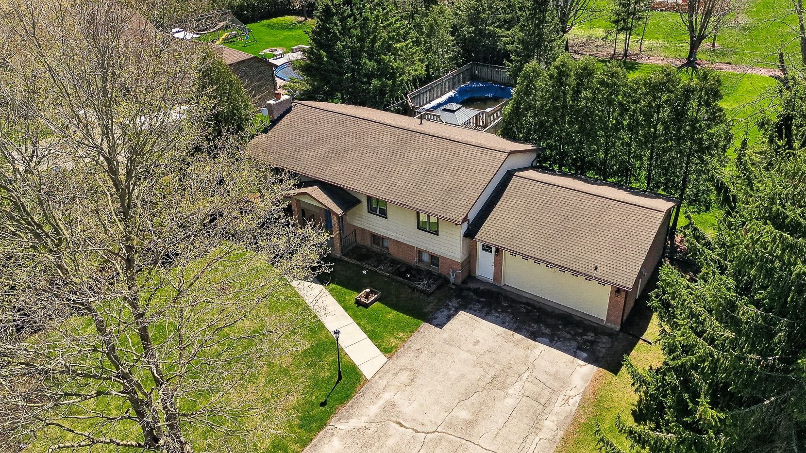 Welcome to this charming raised bungalow nestled in the peaceful hamlet of mossley, just outside of london and only minutes from highway 401- perfect for commuters seeking a quiet area without sacrificing convenience. Set on a generous 1/2 acre lot, this home offers a fully fenced backyard with an above ground pool, ideal for families, pets, and outdoor entertaining. Step inside into the spacious kitchen with ample cabinetry, featuring direct access to a deck that overlooks the beautifully landscaped yard. The dining area is filled with natural light and offers picturesque views of the backyard, where you'll enjoy frequent visits from a variety of birds. The main level features 3 well-sized bedrooms, a 4 piece bathroom, and a bright and inviting living room perfect for relaxing. The generous sized entryway provides plenty of space to welcome family and guests without feeling crowded. Tucked under this space you will find a unique little hideaway play area that adds a fun and functional touch for young families... Don't miss it! The finished lower level that was updated in 2016 and provides additional living space with large above-grade windows due to the raised bungalow design-creating a bright, airy space that doesn't feel like a typical basement. Here you'll find a cozy family room complete with a wood-burning fireplace (not wett certified, and not being used), a large bedroom, and a second bathroom-ideal for guests or extended family. The large utility/laundry/storage area finishes this level. The attached garage offers a convenient inside entry close to the laundry room, and has ample storage space. With parking for at least 6 vehicles and numerous updates throughout (furnace/water heater '19, a/c '23, septic-2 risers for easy access, drilled well - 212' deep in 2017, an added bonus.. No rentals), this property offers the perfect blend of comfort, space, and country charm... Just minutes to the city. All meas. Approx and taken from iguide and public record.