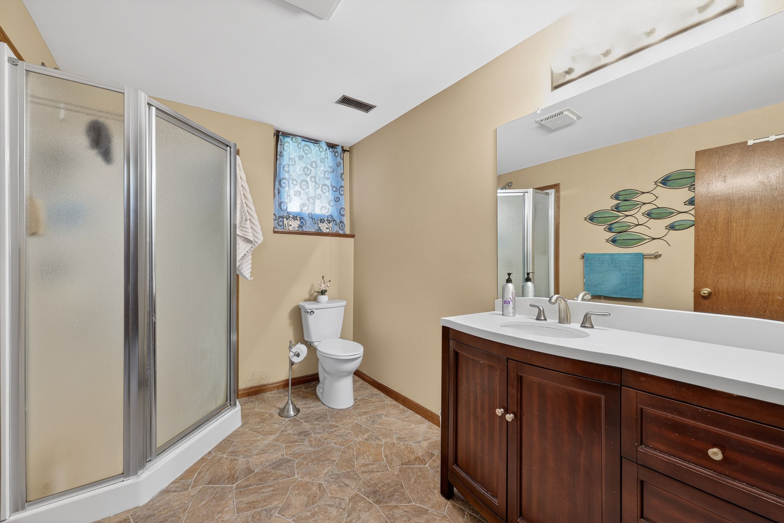 • Finished lower level with bright family room, large bedroom, and extra bathroom.