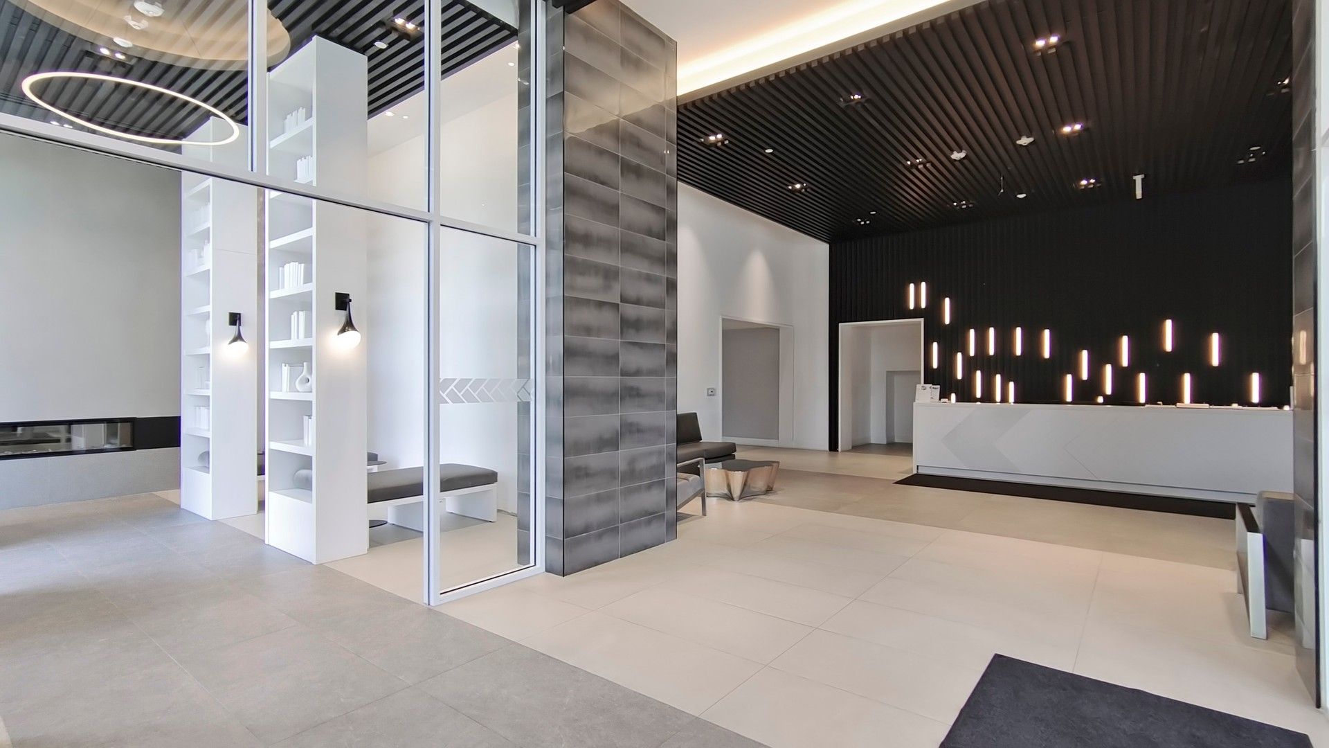 • Luxury amenities include a gym, outdoor pool, and rooftop garden.