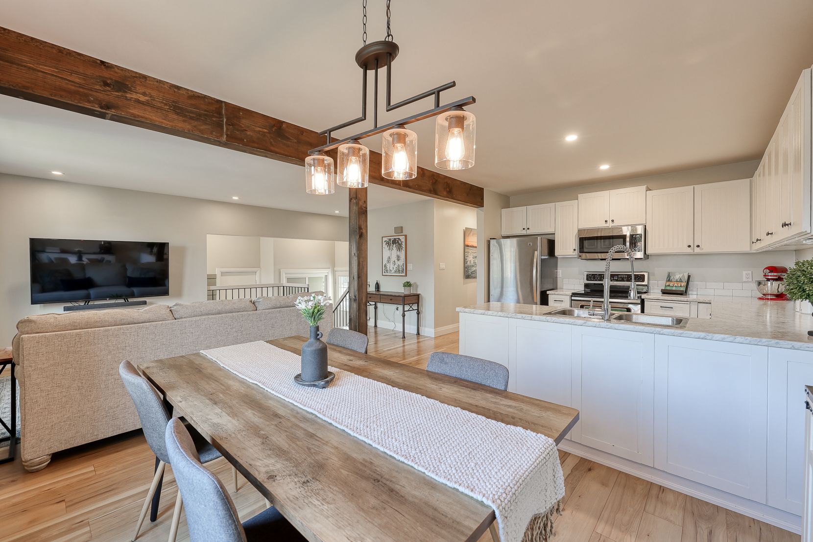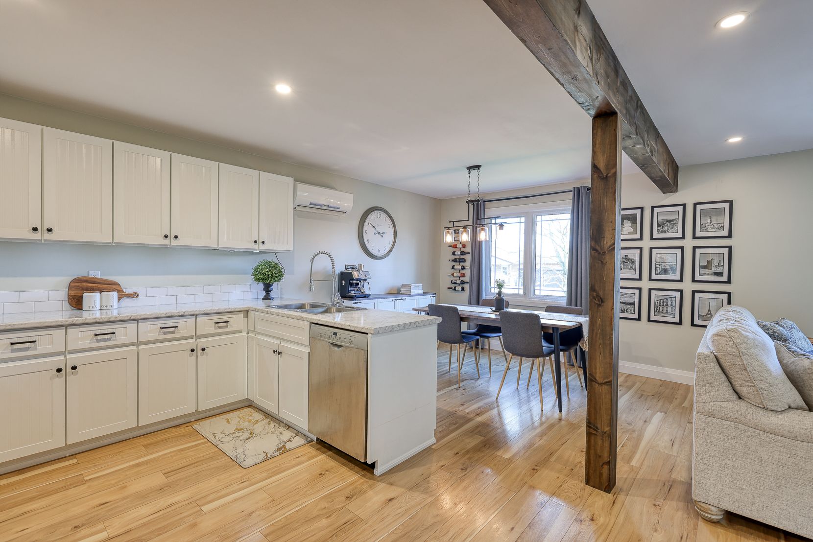 Imagine coming home to a space that feels instantly warm and inviting.... This beautifully updated raised bungalow is just that! With four generous bedrooms and two full bathrooms, there's plenty of room for everyone to feel at home. Upon entering the home, you will be impressed by the incredible natural light streaming through large windows. The open concept living area is perfect for prepping dinner as a family, hosting gatherings, and just being together. The three main floor bedrooms are spacious. The primary bedroom has a beautiful feature wall, a built-in wardrobe, and ensuite privileges to the updated 4-pc bathroom. The lower level is finished with a spacious family room featuring a natural gas fireplace, ideal for evenings cozied up on the couch. The lower level bedroom has a large window, full closet, and loads of space suitable for not only a bedroom, but a home office, games room, guest room or in-law suite. Outside, you'll love the large fenced yard and huge deck perfect for backyard barbecues or letting the kids and pets run wild. You'll have lots of parking spaces with a 1. 5 car garage, ideal for a vehicle plus storage, and a paved double driveway. Just steps from parks, schools, and community amenities, enjoy what small town living is all about! This isn't just a house - it's a home that is ready to write your next chapter. Whether you're a growing family, a professional looking for space, or someone wanting room to breathe, this property checks all the boxes. Don't miss your chance to make this amazing home yours!