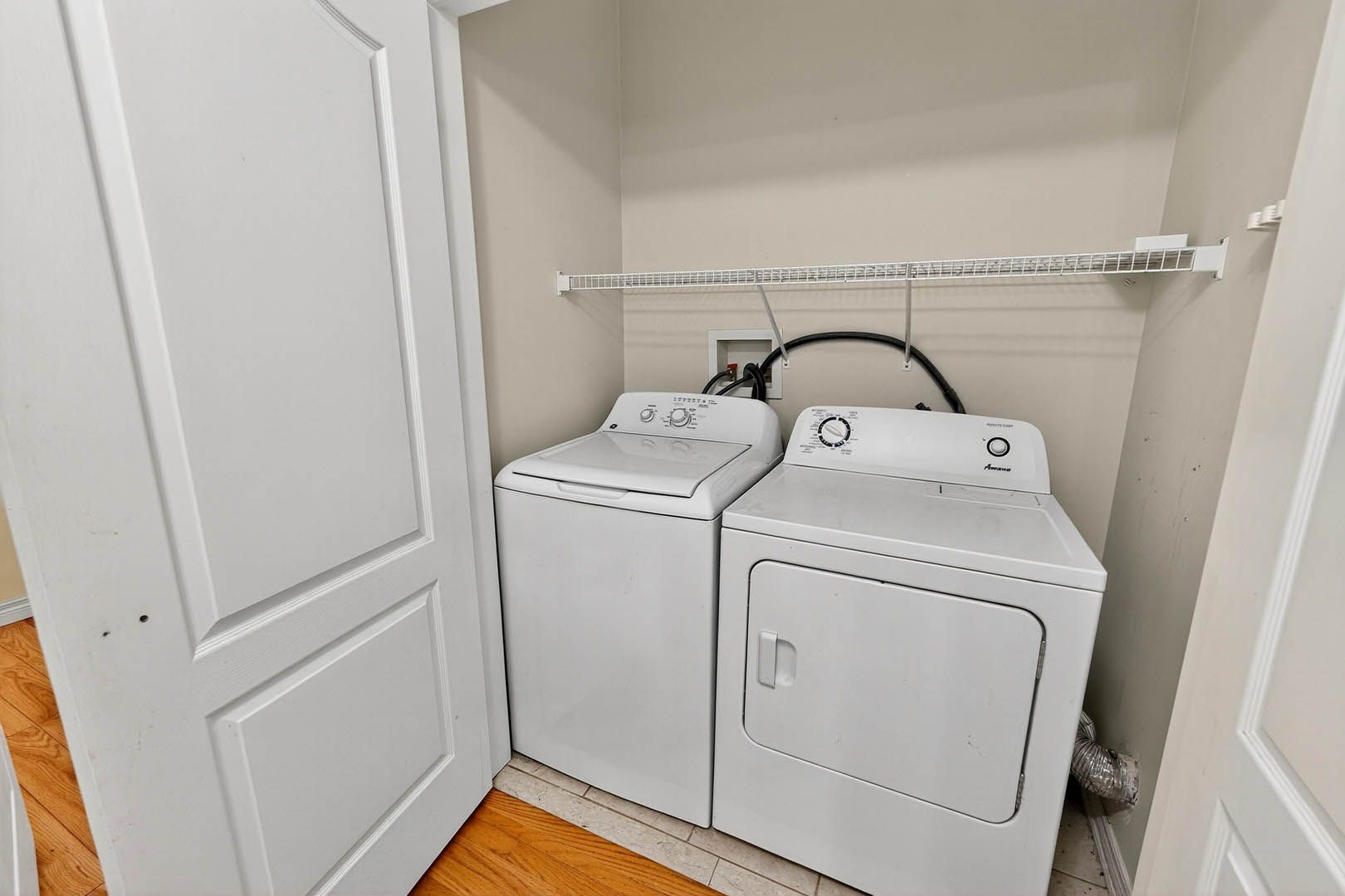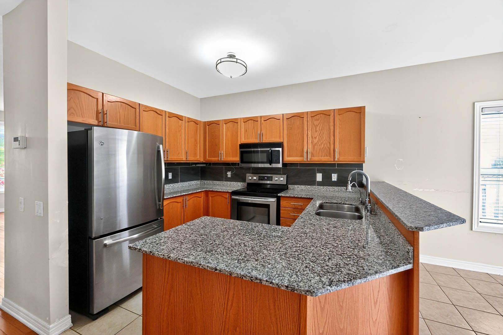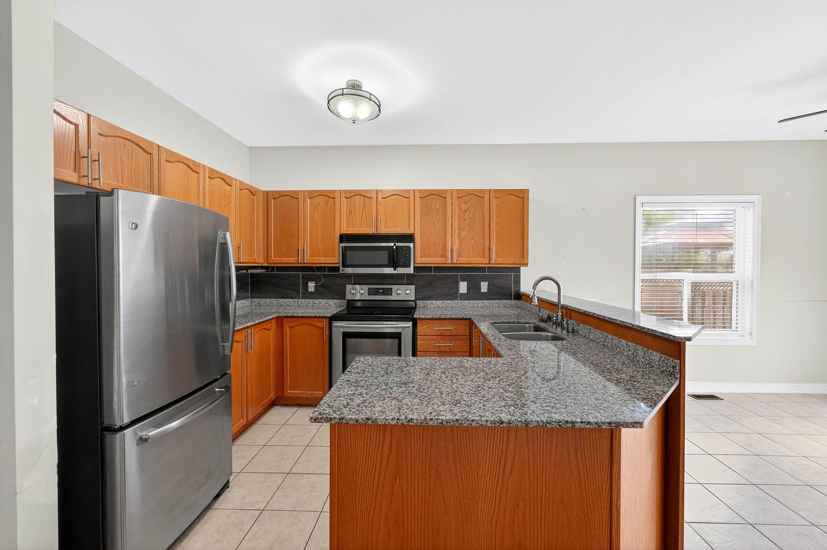 • Eat-in kitchen with stainless steel appliances for modern cooking.