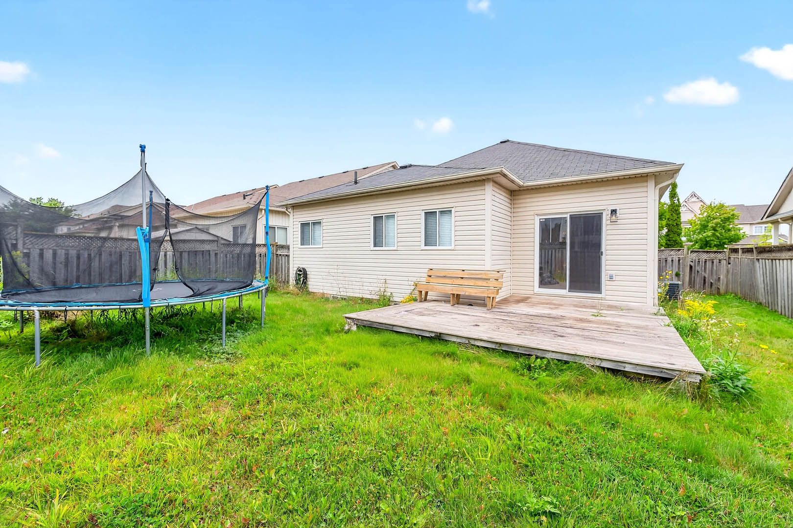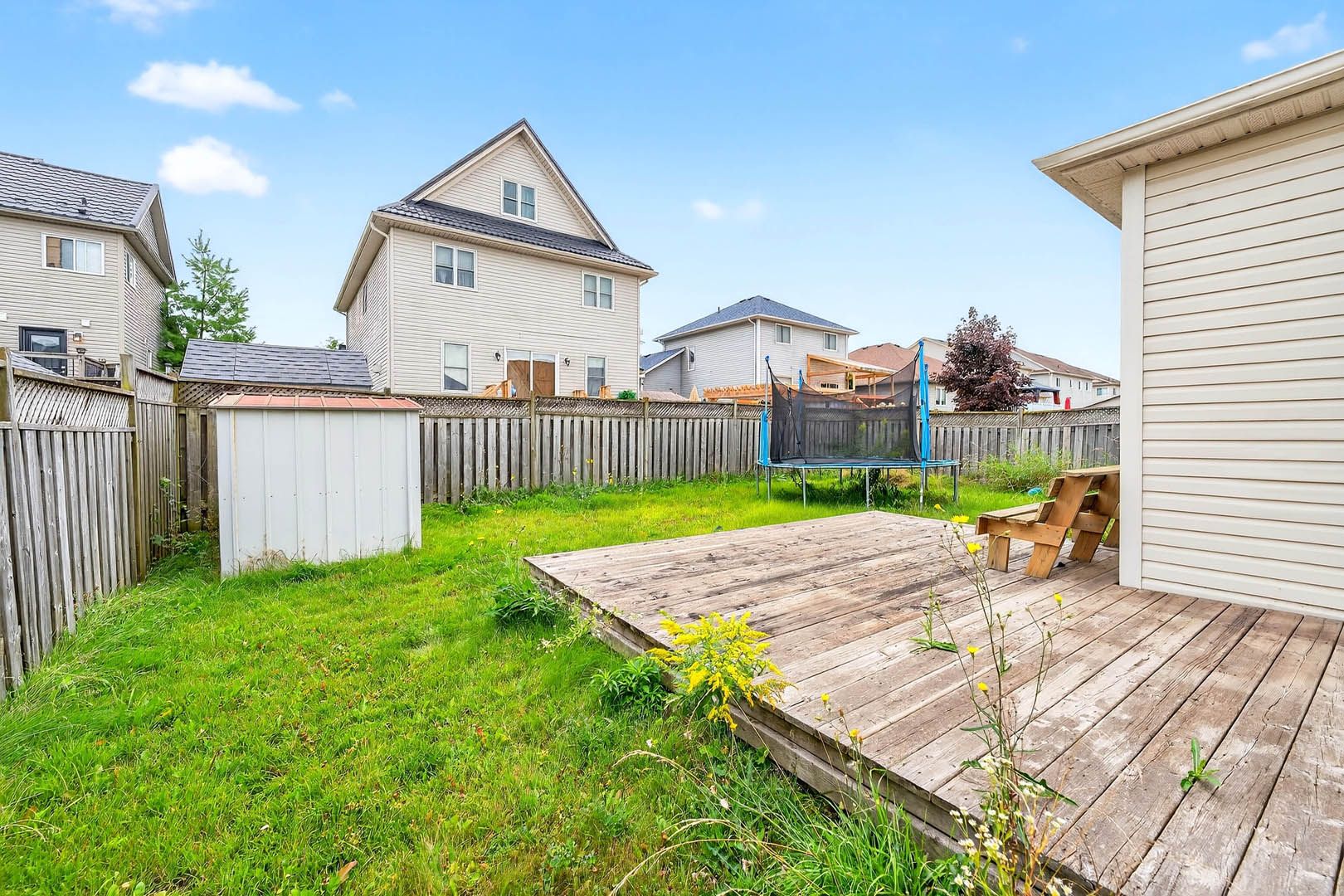 • Walk-out deck overlooking a fully fenced yard for privacy.