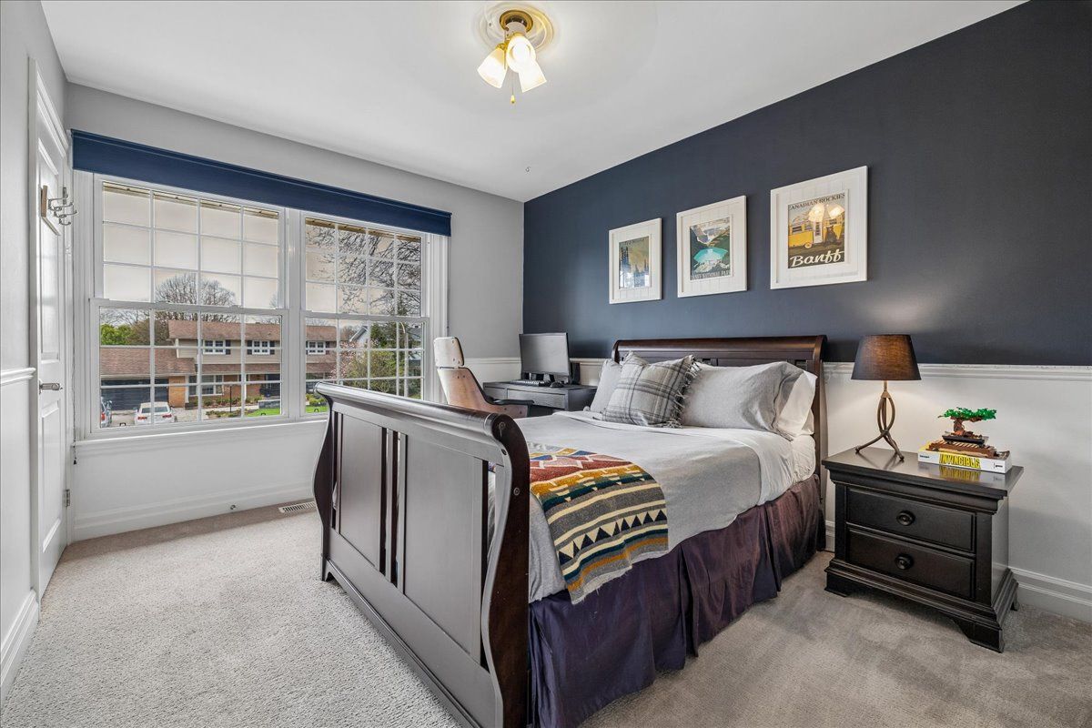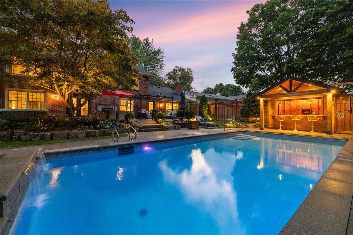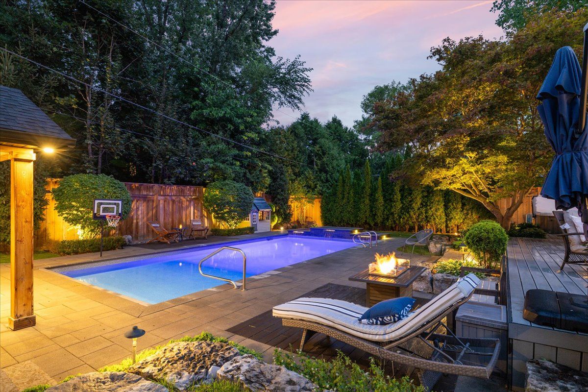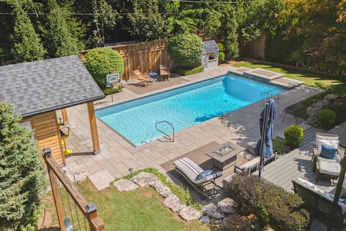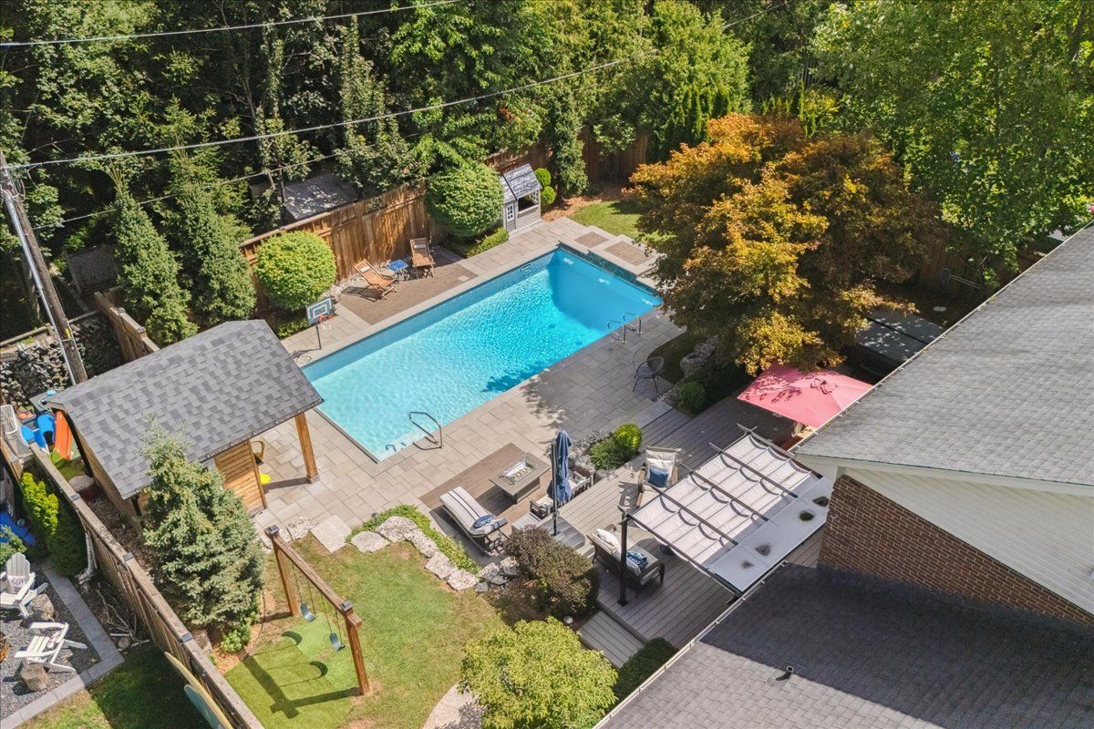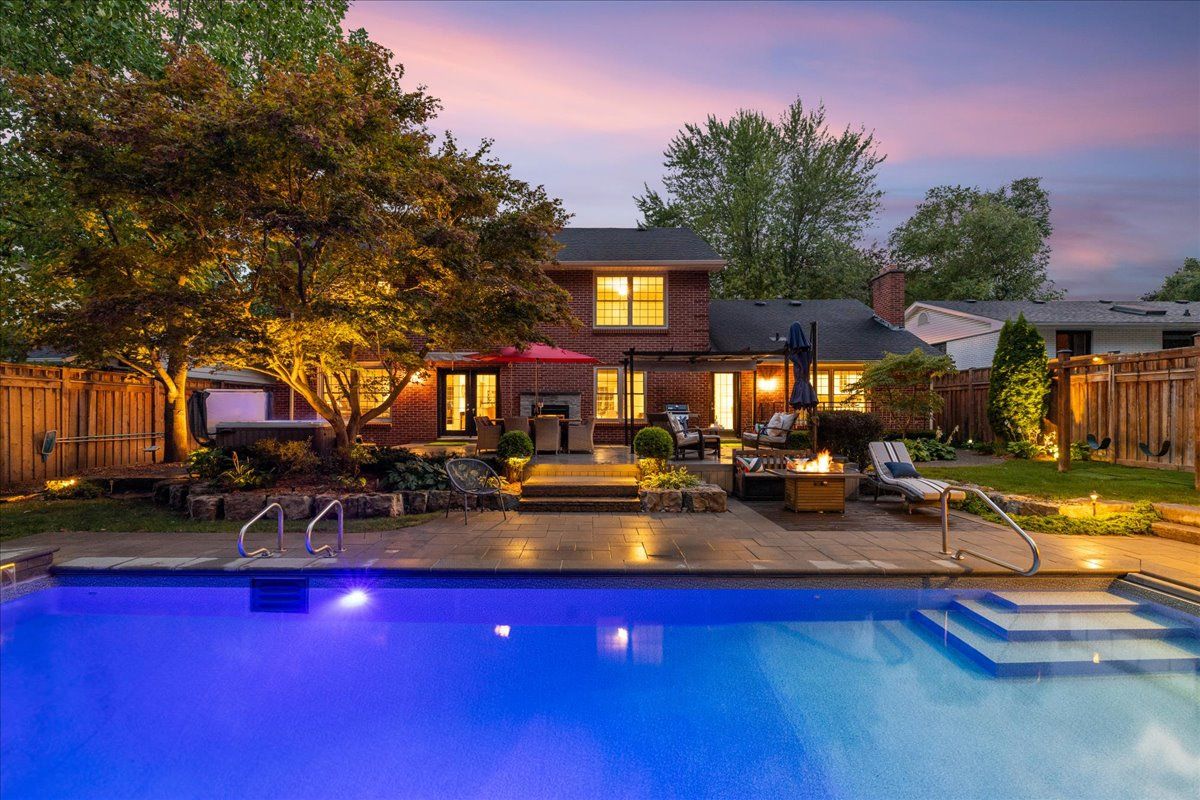 An exceptional family residence nestled in one of burlington's most coveted neighbourhoods, within the desirable tuck/nelson school district. Impeccably maintained & thoughtfully updated, this elegant home offers the perfect balance of luxury, comfort & everyday functionality. Set on a premium lot with an extra-wide 4 car private drive & double garage complete with 200 amp tesla charging station. Inside, the oversized windows flood the home with natural light & sonos sound system throughout creates your unique home. A spacious foyer welcomes you with ample storage, while a versatile front office offers the perfect work-from-home solution & a formal dining room flows seamlessly into the den. A stunning open-concept kitchen & family room overlook the professionally landscaped *private* backyard. Featuring a 5-burner gas stove & side-by-side fridge/freezer, the kitchen is as functional as it is stylish. A convenient mudroom with inside garage access, along with a newly renovated powder room, complete the main floor. Upstairs, the principal retreat is highlighted by a custom walk-in closet (which can convert back to a 4th bedroom) & luxurious 5-piece ensuite w/ heated floors. Two additional generously sized bedrooms, 3-piece bath & upper-level laundry room with custom cabinetry provide convenience for the whole family. The fully finished basement expands your living space with a large rec room, 3-piece bath w/ heated floors, abundant storage & walk-up entrance to the backyard offering in-law suite potential. Step outside to your backyard oasis - an entertainer's dream! Professionally designed & meticulously maintained, this outdoor retreat features an exposed aggregate walkway, composite deck, & stone patio surrounding the pool cabana & custom-built in-ground pool with a luxurious heated waterfall. The lush, landscaped grounds are enhanced by mature trees, perennial shrubs & in-ground rainbird irrigation system. An unparalleled lifestyle in a truly exceptional setting!