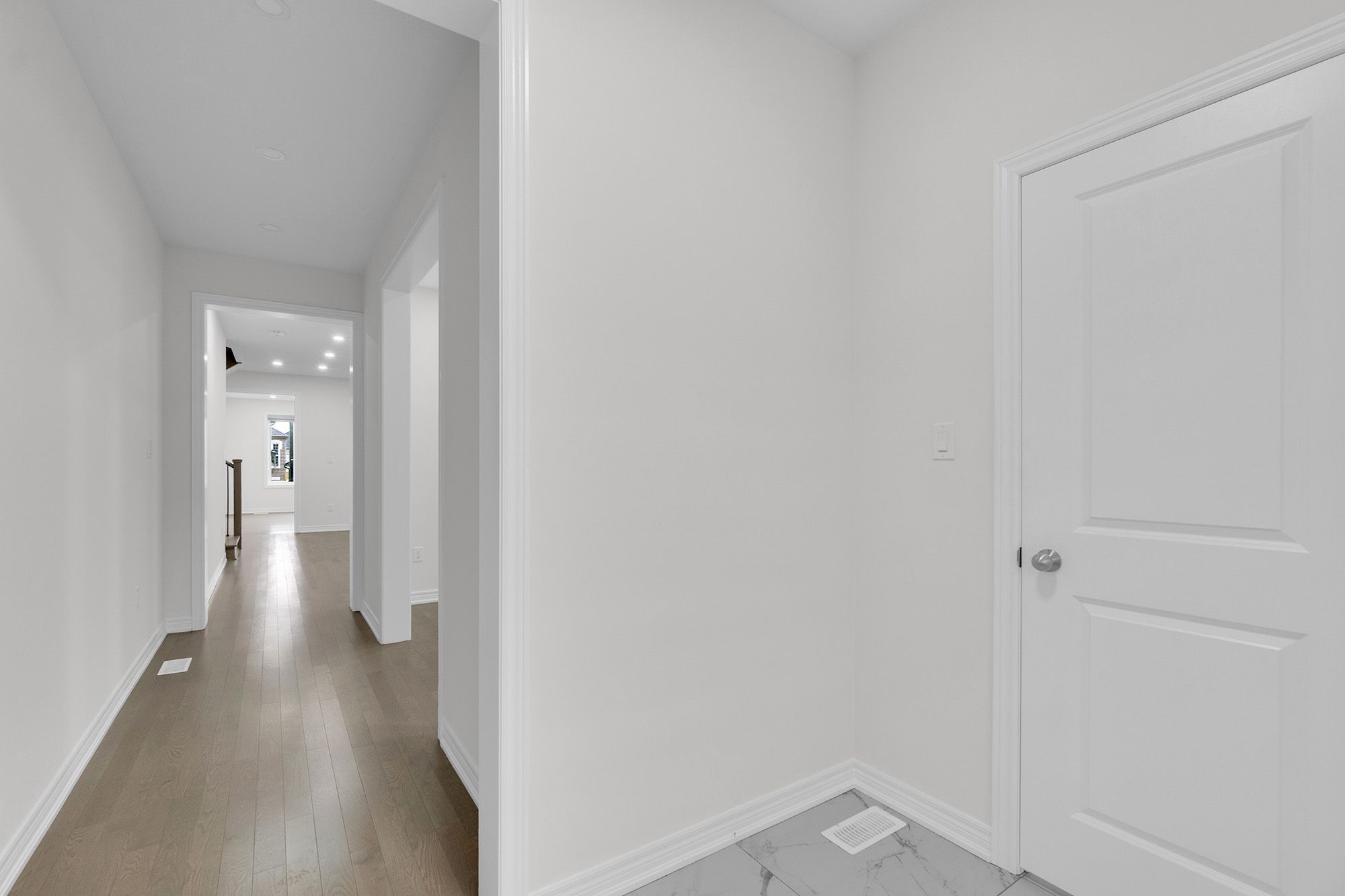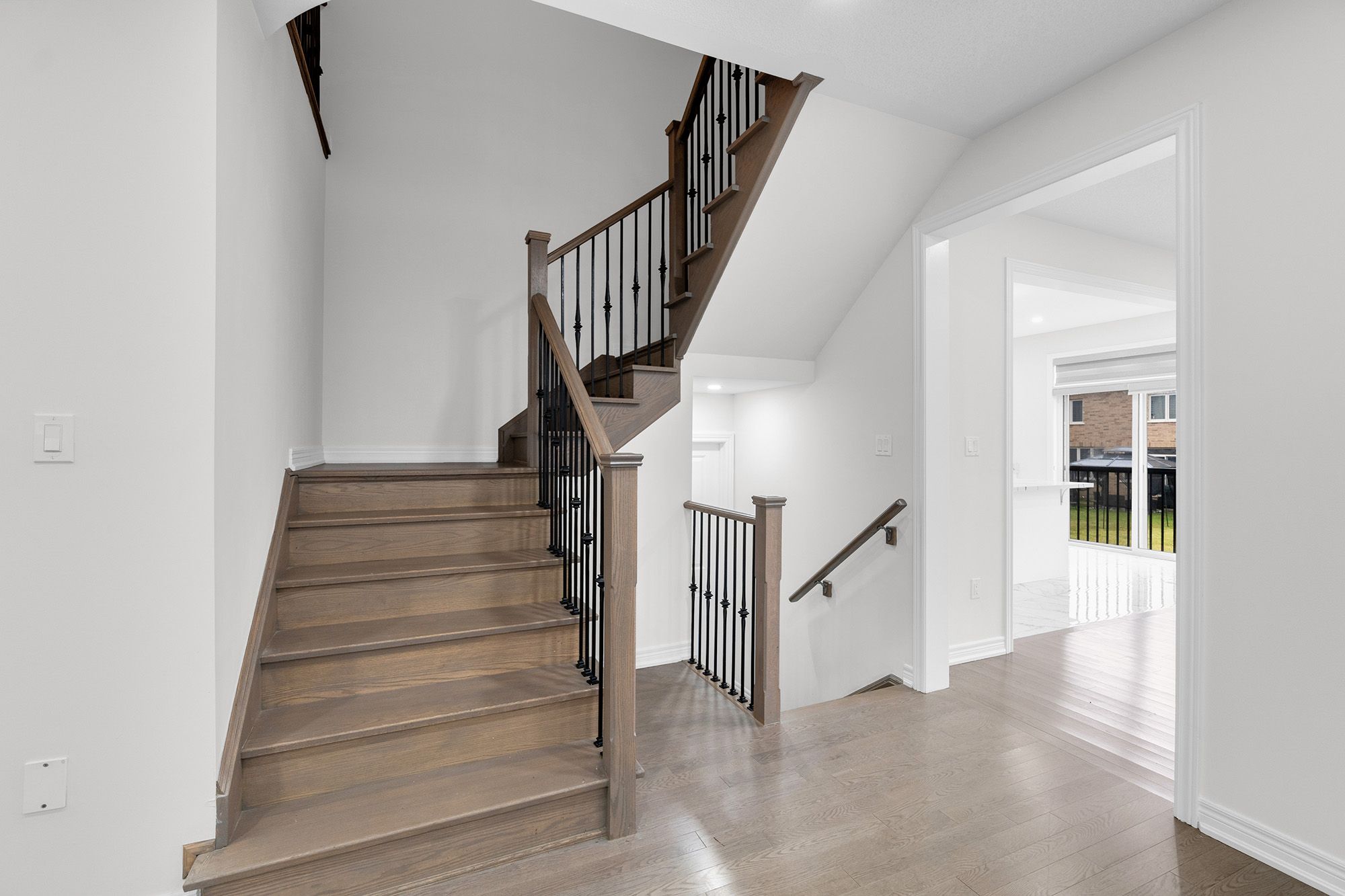 • Hardwood floors on the main level and upgraded laminate upstairs.
