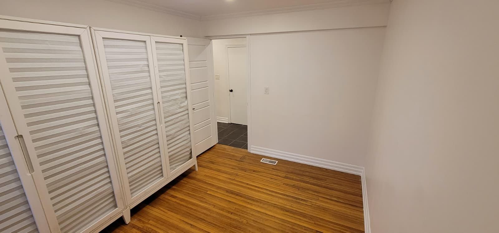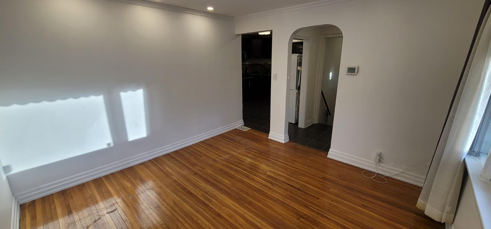 Main-floor 3-bedroom apartment available for lease. The unit features three bedrooms, a living room, an open-concept kitchen, a four-piece bathroom, and in-unit laundry facilities. Located on a tree-lined street close to highway 401, schools, parks, costco, freshco, banks, and restaurants. Includes two parking spaces and access to a fenced backyard for outdoor use.