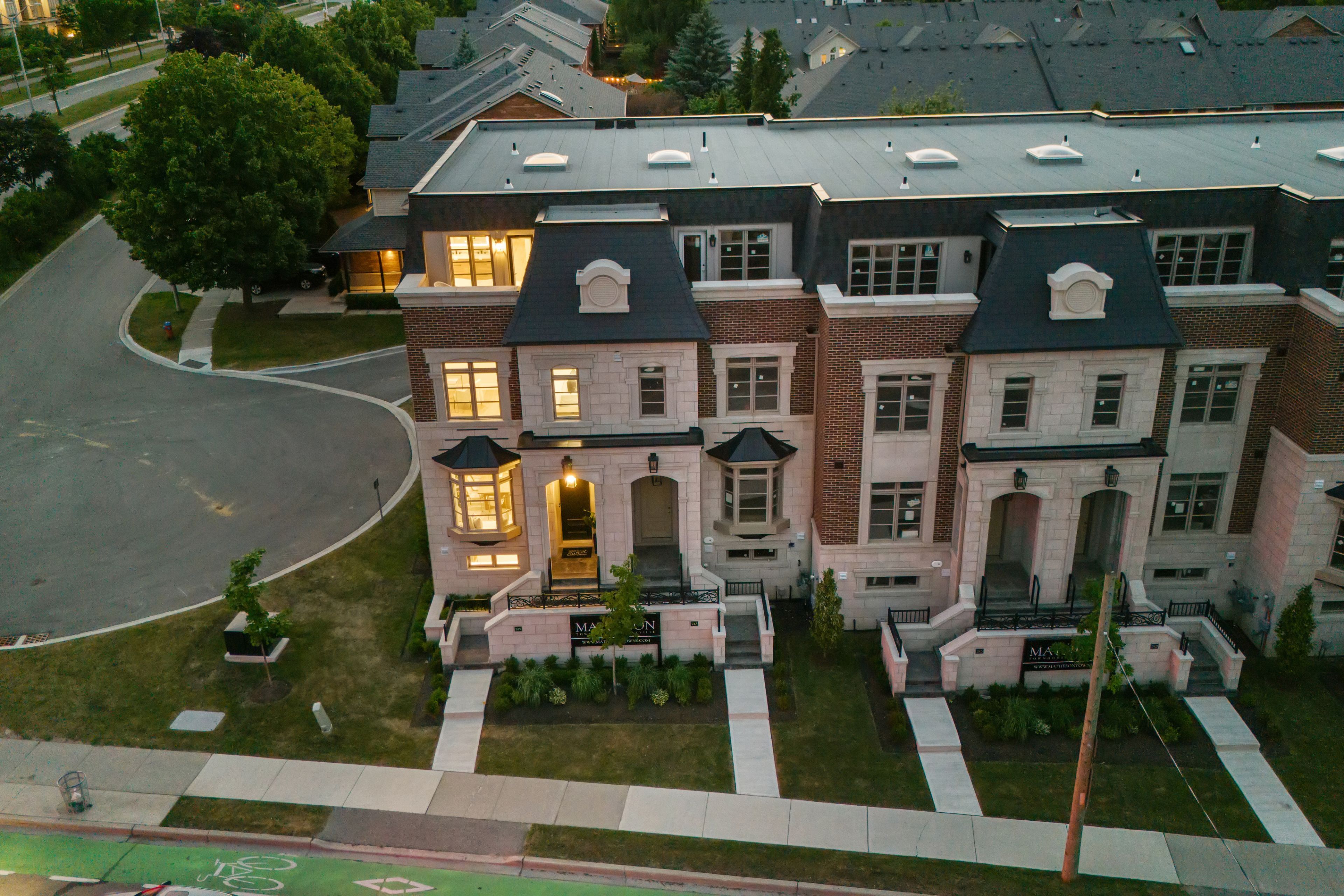 This newly completed, three-storey luxury townhome is part of the matheson, an exclusive six-unit enclave tucked in one of oakville's most sought-after neighbourhoods, just a short walk to downtown, the lakefront, top schools, and vibrant local amenities. Offering over 3,000 sq ft of thoughtfully designed living space, this home features 3 spacious bedrooms, each with its own ensuite, and 4 beautifully appointed bathrooms. A private in-suite elevator ensures seamless access to every level, combining the scale of a detached home with the convenience of modern townhome living. The chefs kitchen is a standout with 35 feet of custom cabinetry, a full miele appliance package, sleek quartz countertops and backsplash, and a large central island perfect for entertaining. The family room is anchored by a full-height feature fireplace wrapped in premium quartz, creating an elegant and inviting atmosphere. The private primary suite spans an entire floor and includes a morning kitchen, walk-in closet with custom organizers, and a spa-like ensuite featuring a deep soaker tub, walk-in glass shower, radiant heated floors, and a double vanity. Two secondary bedrooms are located on their own level, with direct elevator access and ample storage. Outdoor living is just as refined, with a front composite deck off the primary ensuite, and a private rear terrace finished in ipe wood and tempered glass railings, ideal for relaxing or entertaining. Parking for up to 4 vehicles, including a private garage, adds exceptional everyday ease. This turnkey residence blends elegant design, premium finishes, and a prime location, offering the ultimate in low-maintenance luxury living.