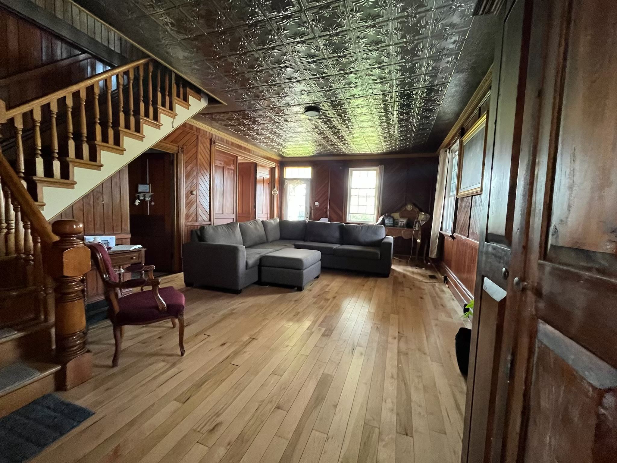 **non-legal duplex, rental income!** this charming century home blends timeless historic appeal with thoughtful modern updates, offering the perfect opportunity for personal touches in a versatile, income-generating property. Recently topped with a brand-new steel roof (replacing the original 125-year-old one), this home ensures long-term peace of mind and low maintenance. Major renovations include a new propane furnace (replacing the old oil system for efficient, reliable heating), fresh basement flooring, and a commercial-grade washer and dryer setup for added convenience. Inside, the kitchen shines with new wood cabinets and replaced floorboards, creating a warm, inviting space. Upgrades extend to three upgraded bathrooms (with new toilets and updated plumbing behind the showers), delivering modern functionality while preserving the home's classic character. The property has been beautifully cleared of overgrown gardens, revealing a clean slate for your dream landscaping-plus a rough-in vegetable garden area ready in the backyard for fresh produce or creative gardening. A standout three-door garage features plumbing and drainage, ideal for workshops, hobbies, or extra storage. This non-legal duplex configuration provides excellent flexibility: two separate kitchens, two laundry rooms, and independent entrances for each side. Previously operated successfully as an airbnb and continuing to generate rental income, it offers the smart buyer the chance to live in one unit and rent the other for supplemental income-or configure as desired. Priced as-is to allow your personal vision and evolving style to shine, this rare find combines historic charm, substantial updates, and strong income potential. Legal basement apartment. Basement has high ceilings and extra hight ceilings. Cable tv and satellite tv available and fibre with bell canada. Don't miss the chance to make it your own-schedule a viewing today