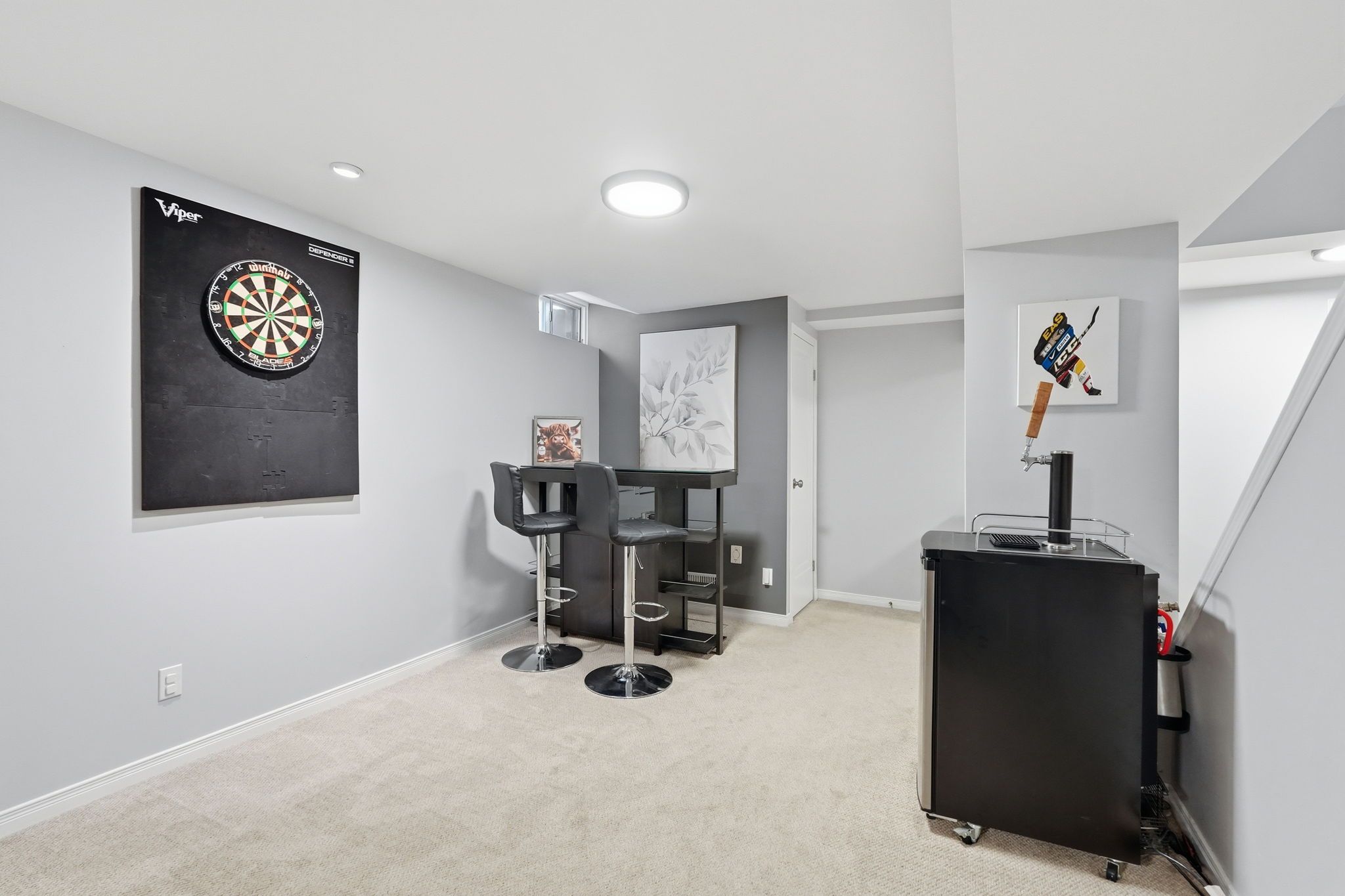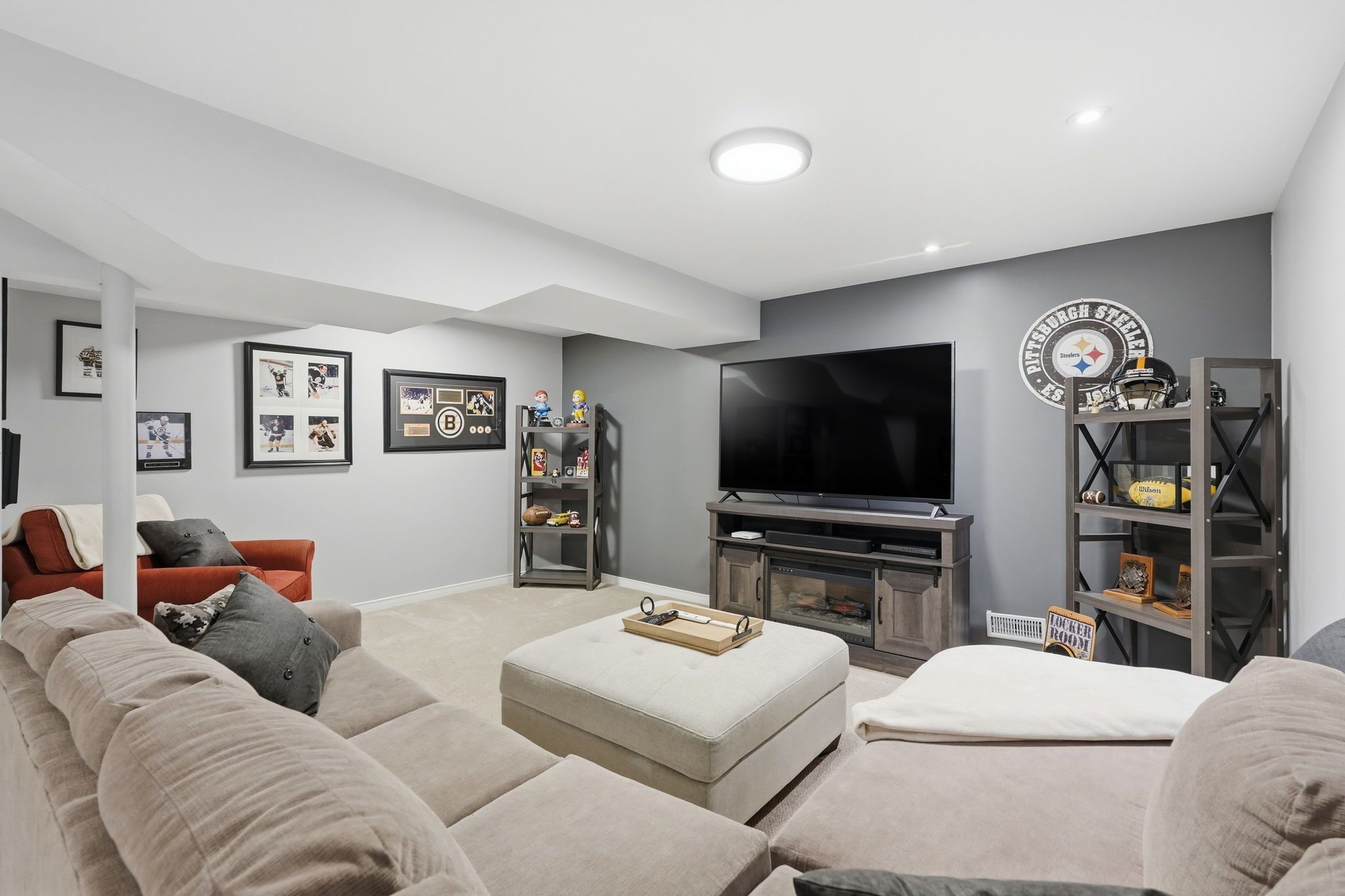 From the moment you arrive, you're greeted by a grand entrance featuring an updated foyer and elegant staircase, setting the tone for the rest of the home. The thoughtfully designed main floor offers both comfort and functionality, highlighted by a bright and spacious family room with a cozy gas fireplace that flows seamlessly into a modern, recently painted eat-in kitchen-perfect for everyday living and effortless entertaining. A generous dining room adds versatility and can easily be converted back into a formal living room if desired. The main level is complete with a convenient 2-piece bath and a den, ideal for a home office or quiet workspace. Upstairs, you'll find four well-appointed bedrooms, including two with their own private 4-piece ensuites, providing added comfort and privacy. An additional 4-piece bath completes the upper level, making busy mornings a breeze for the whole family. The fully finished basement expands your living space even further, offering endless possibilities for a rec room, gym, or home office. Step outside to a beautifully landscaped backyard featuring a wood deck and a fully fenced yard, providing exceptional privacy-perfect for entertaining or relaxing in your own outdoor retreat. Ideally located close to schools, parks, shopping, dining, and golf courses, this home offers the perfect blend of space, style, and convenience.