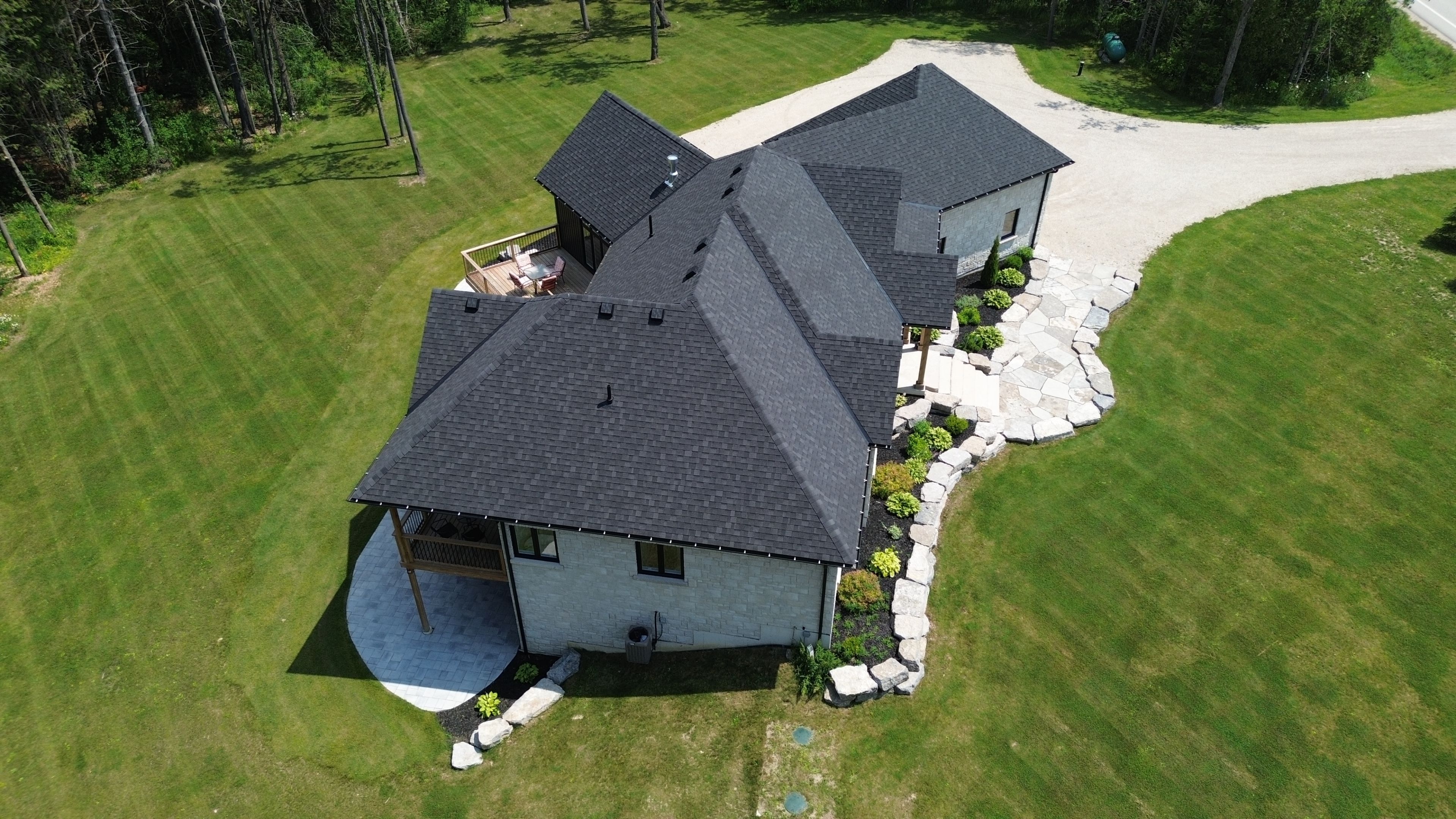 • Beautifully landscaped grounds with stone walkways and timber accents.