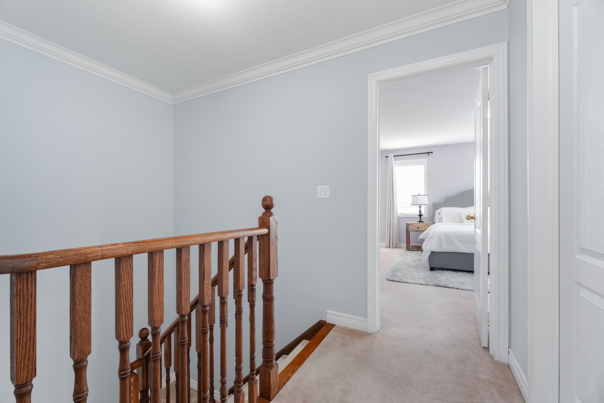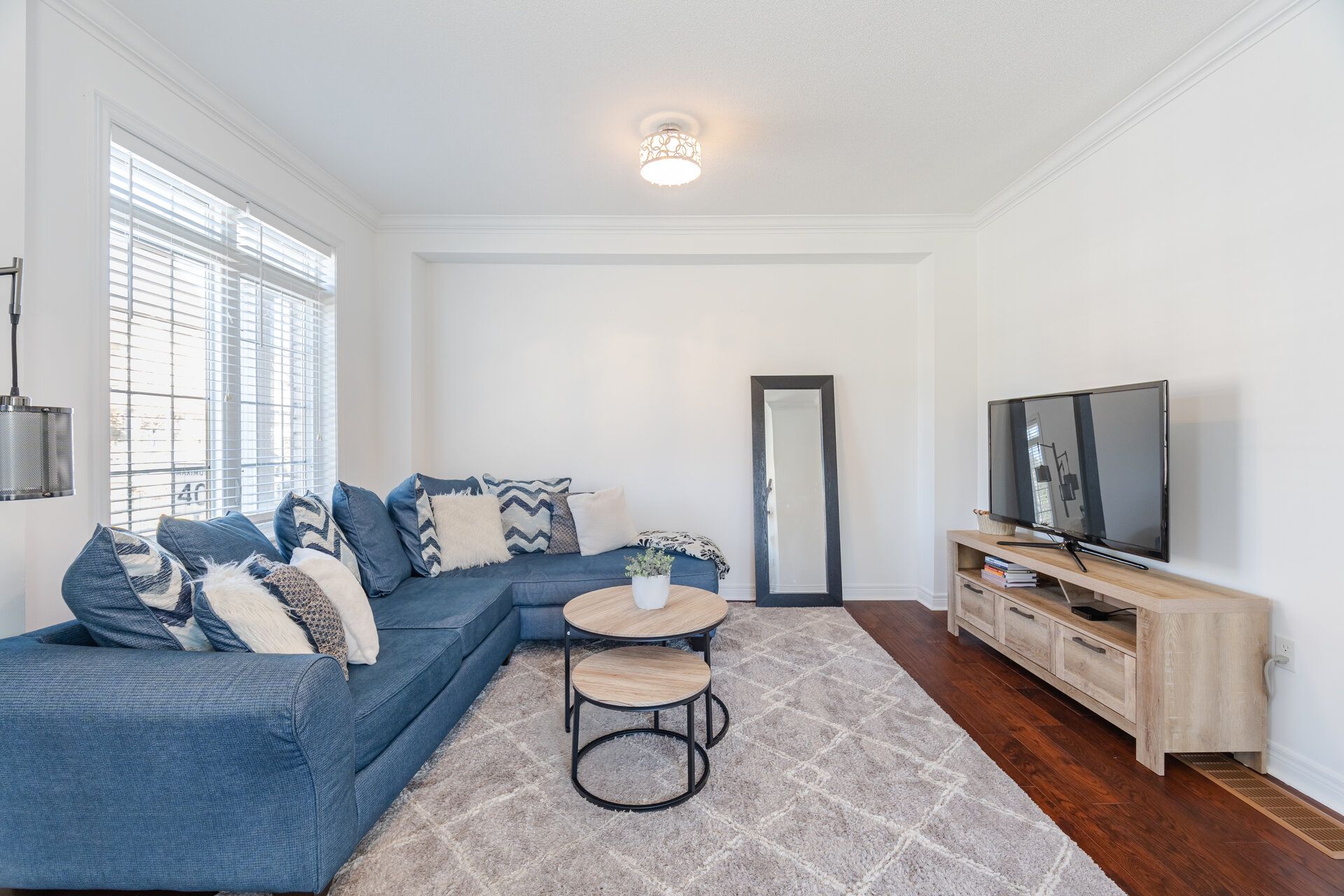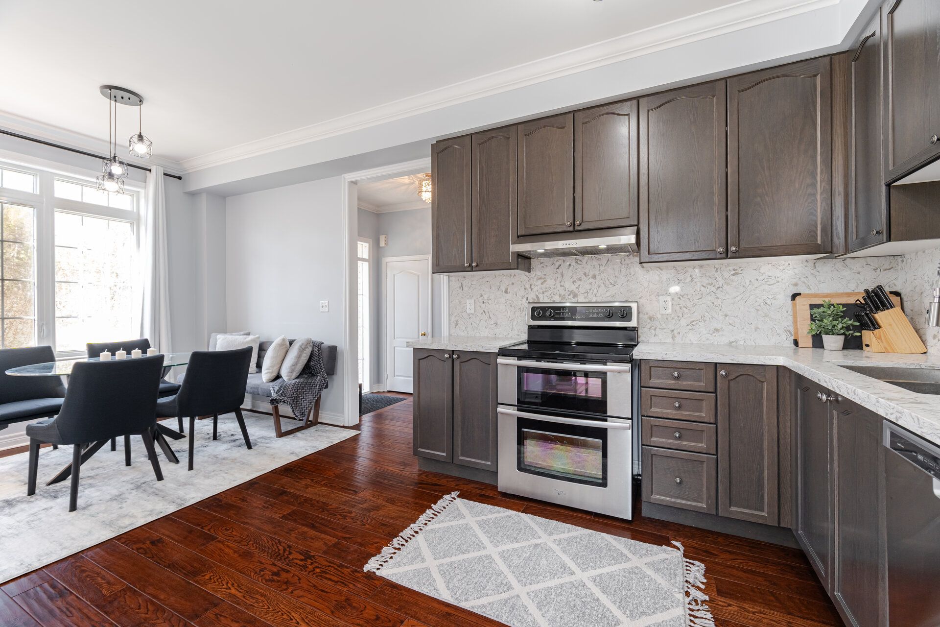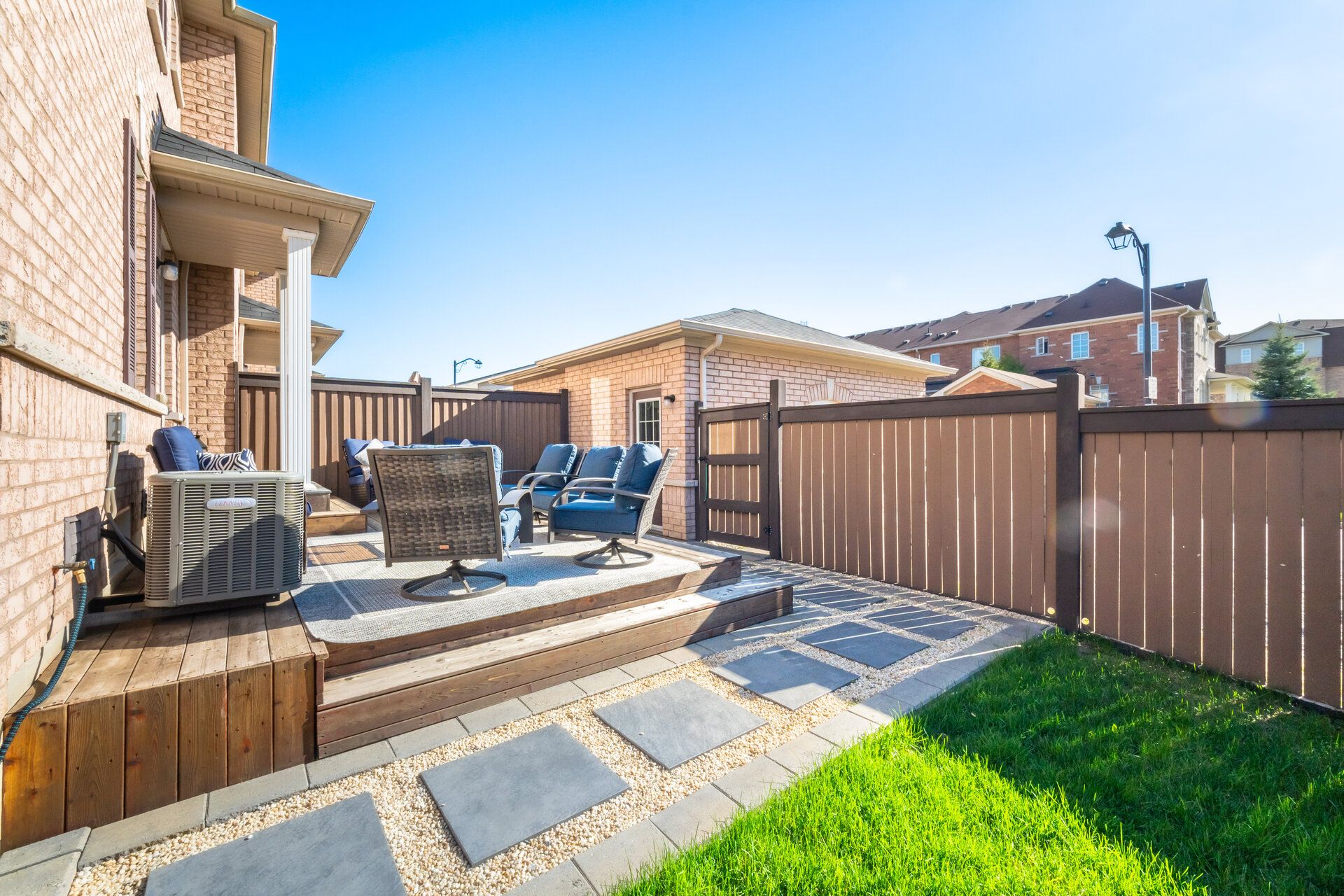 Impressive property, as good as semi-detached home in natural ravine frontage set-up with 3 (three) car parking spaces on extra wide freehold corner lot! Stunning end-unit freehold townhouse on a premium corner lot in desirable duffin heights! Welcome to this beautifully maintained home, proudly cared for by its owners. Nestled on an oversized premium corner lot, ths home offers exceptional space and a thoughtfully designed layout. Step inside to a bright and airy main floor featuring 9-foot ceilings adorned with elegant crown moulding. The open-concept design is enhanced by scraped solid oak hardwood floors, creating a warm and inviting atmosphere. A recently painted, sun-filled living room leads seamlessly to a formal dining area, perfect for hosting gatherings. The eat-in kitchen showcases stainless steel appliances, quartz countertops, a stylish backsplash, extended cabinetry, a double sink with a modern faucet, and a walk-out to a large deck ideal for relaxation and entertaining. Upstairs, the spacious primary suite boasts a walk-in closet and a luxurious 4-piece ensuite. The separate garage provides added convenience, while unfinished basement is a blank canvas awaiting your personal touch - complete with a 3-piece rough-in bath and large egress-style windows, offering endless possibilities. Unique features: for townhouse having 3 (three) car parkings! Located in a quiet, family-friendly neighbourhood, this home is just minutes from major highways (401 & 407), shopping centers, pickering golf club, greenwood conservation area, and the scenic duffin heights forest & river trail. Don't miss this incredible opportunity to own a home in one of pickering's most sought-after communities! Whether you're a growing family, a professional couple, or a savvy investor, this home offers the perfect blend of comfort, space, and future potential. Fall in love at first sight, unique property in natural ravine with parkings!!