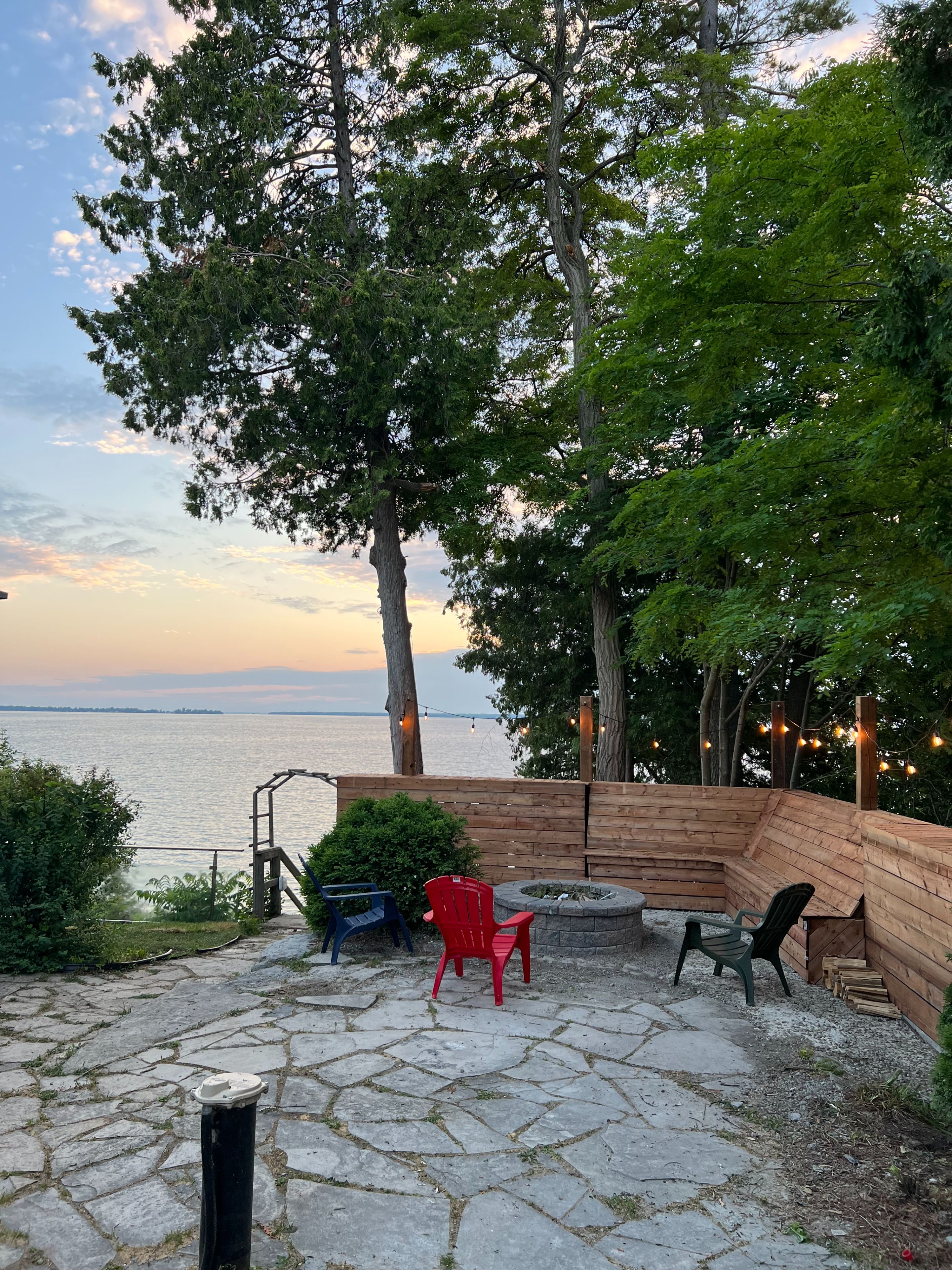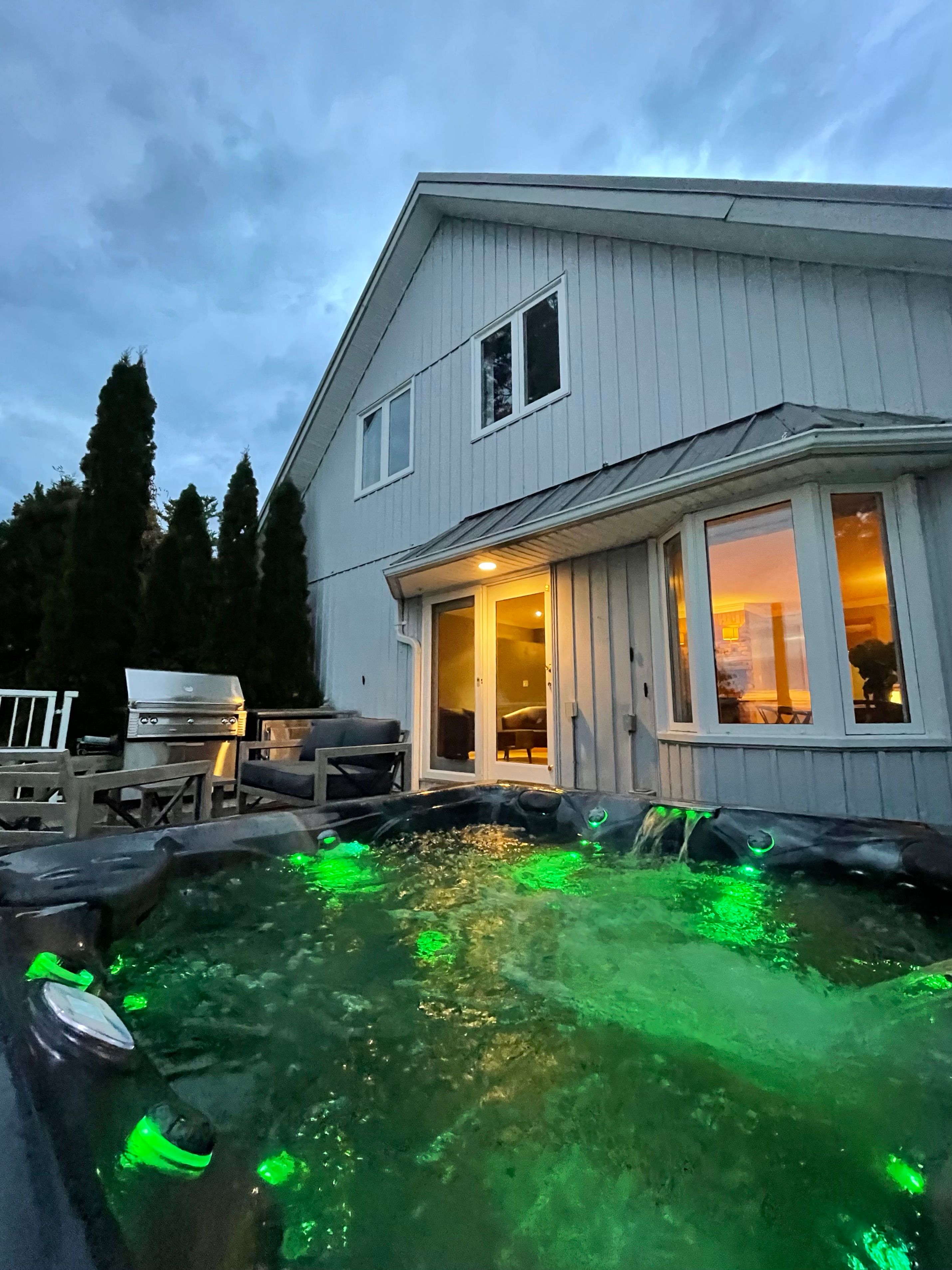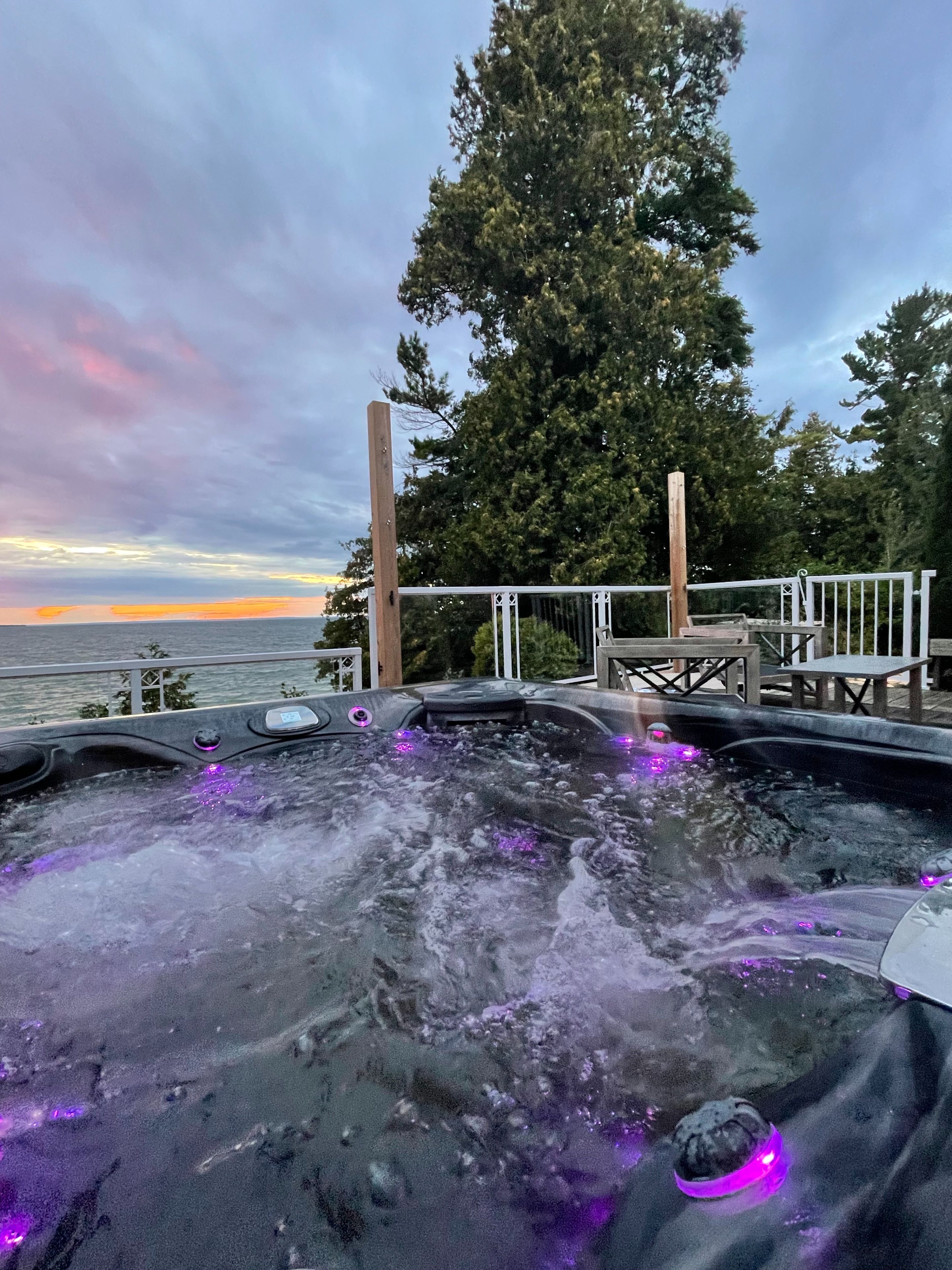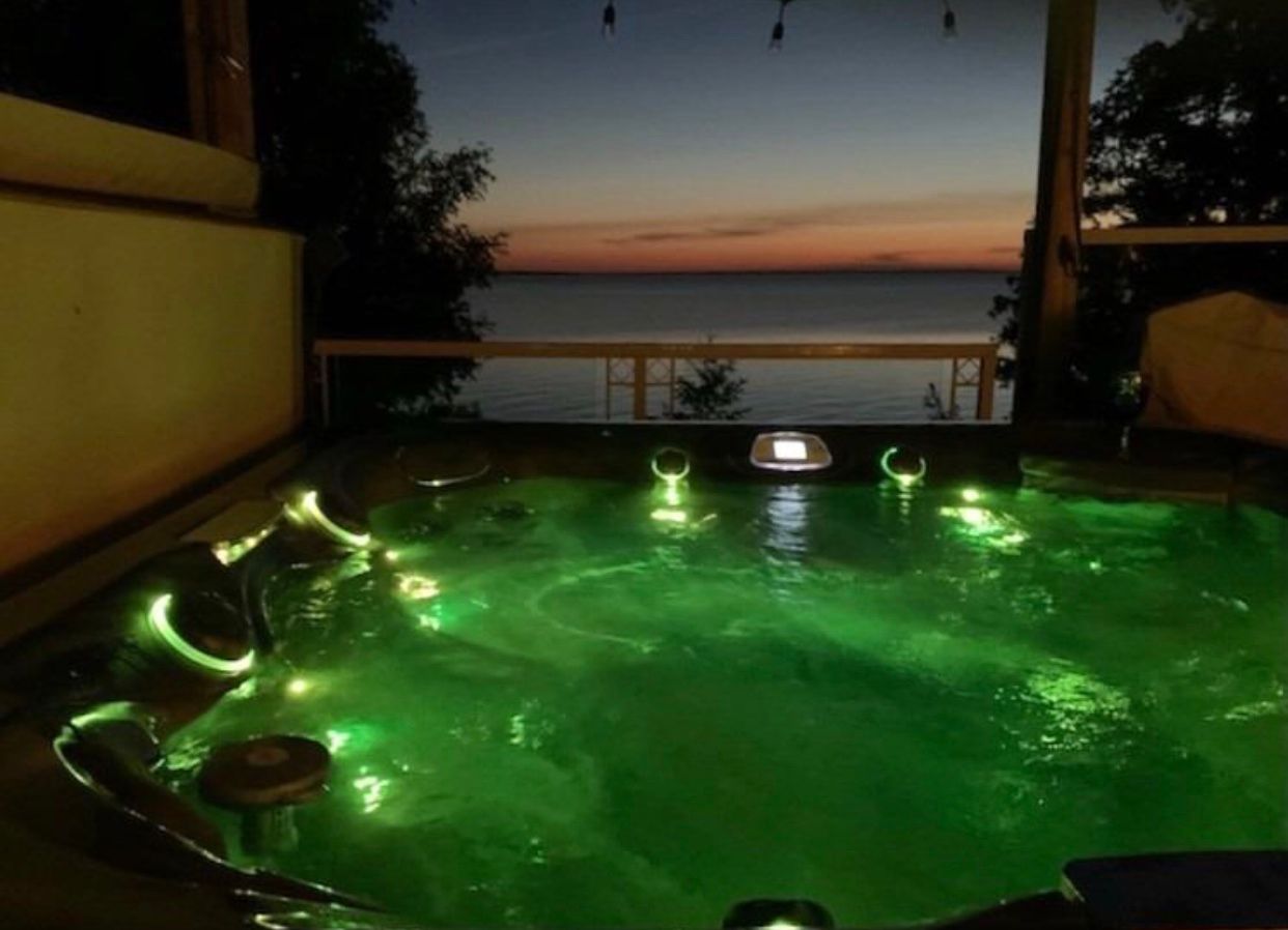• Large deck with a romantic hot tub overlooking the lake.