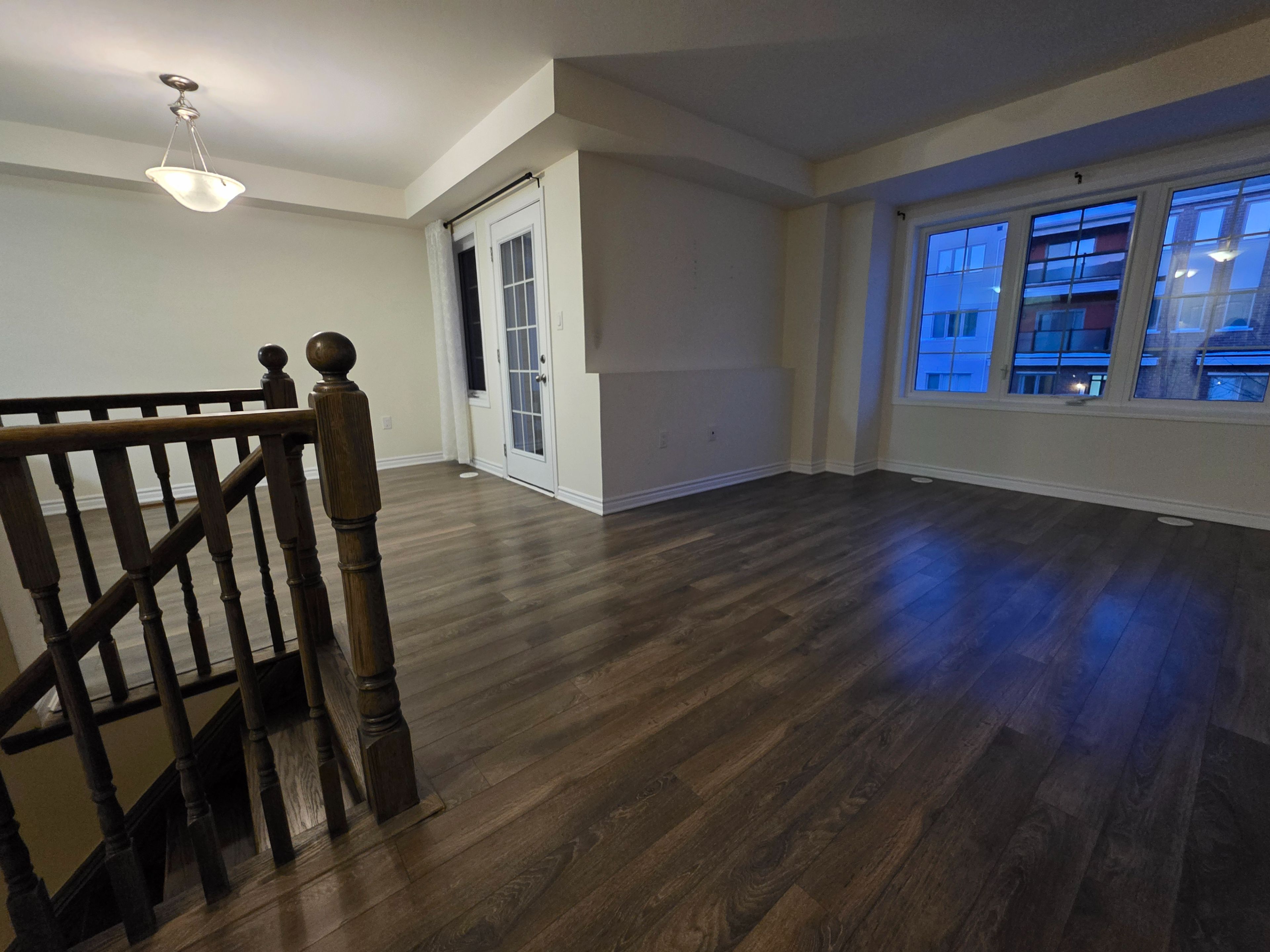 Welcome to this spacious, 3-story mattamy-built townhouse in north pickering, ideal for anyone seeking comfort and room to grow. With 3 bedrooms and 3 baths, this home is beautifully designed for single family living. The open-concept second floor features a stylish kitchen with appliances, a breakfast bar, and walkout to a balcony for bbqs and outdoor dining. A bright family room and a combined living-dining area with 9-foot ceilings, 2 pc powder room complete this level. Upstairs, the primary bedroom offers a walk-in closet & 4pc ensuite, with two more bedrooms and an additional 4pc bath. Car garage and a nearby parkettes make this cozy, landscaped neighborhood even more inviting.