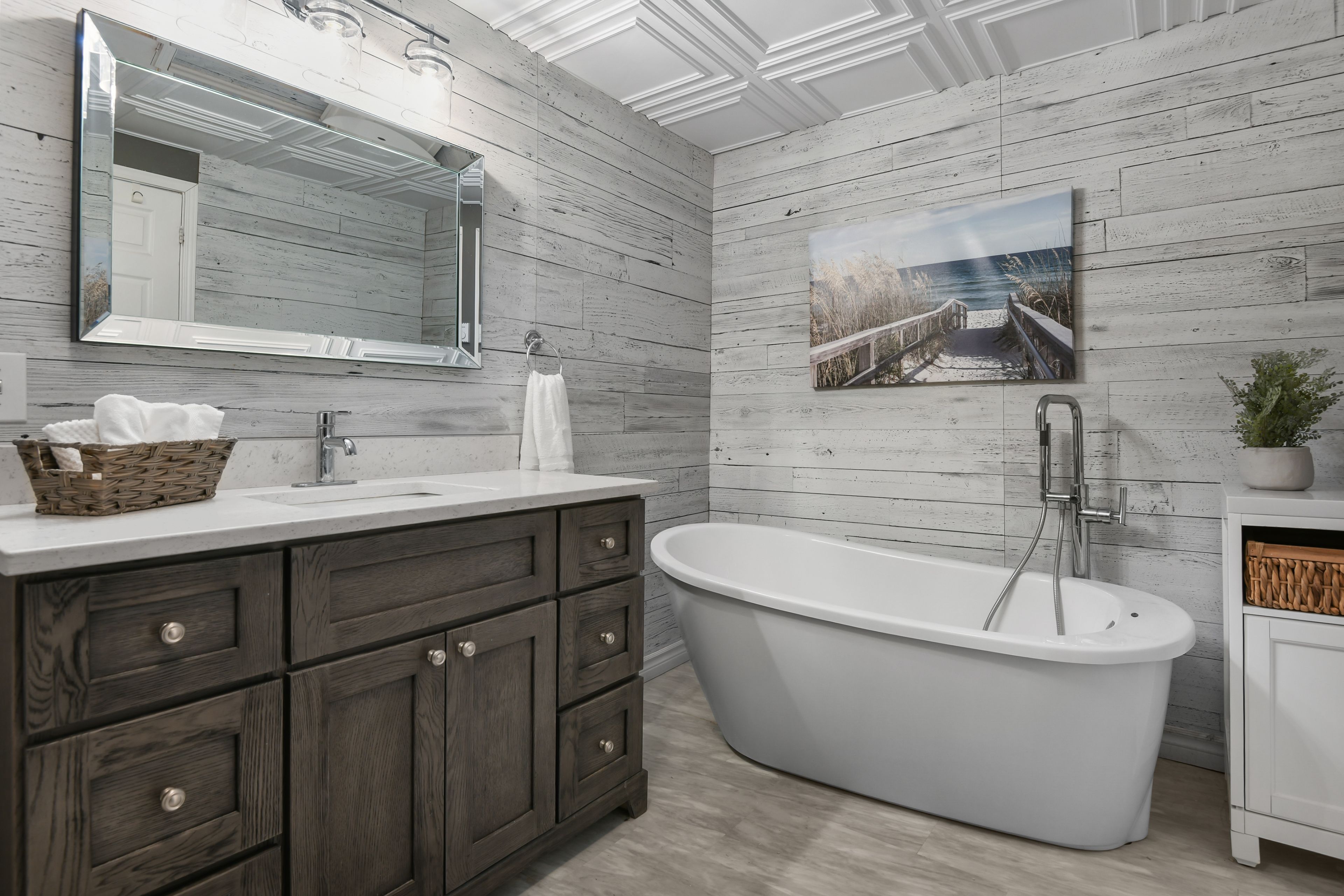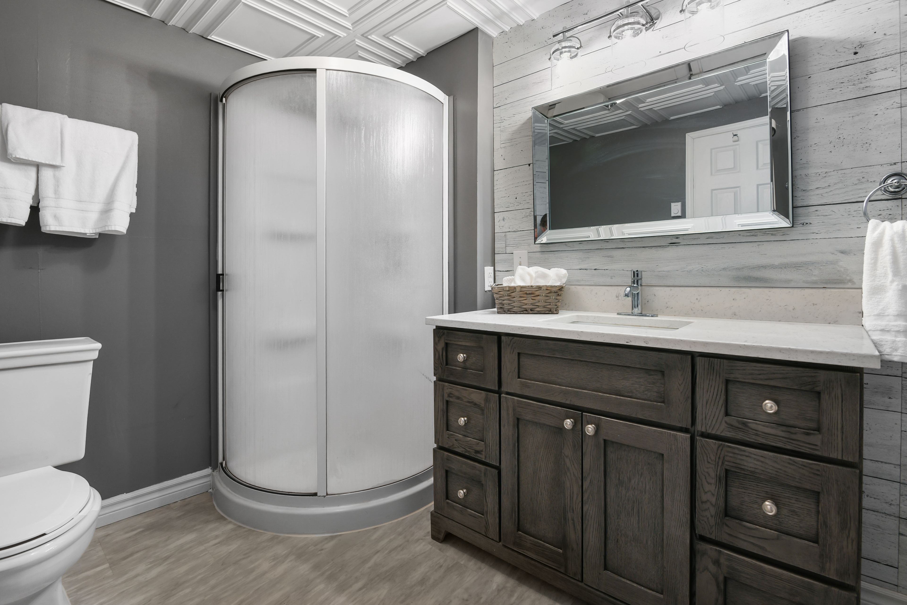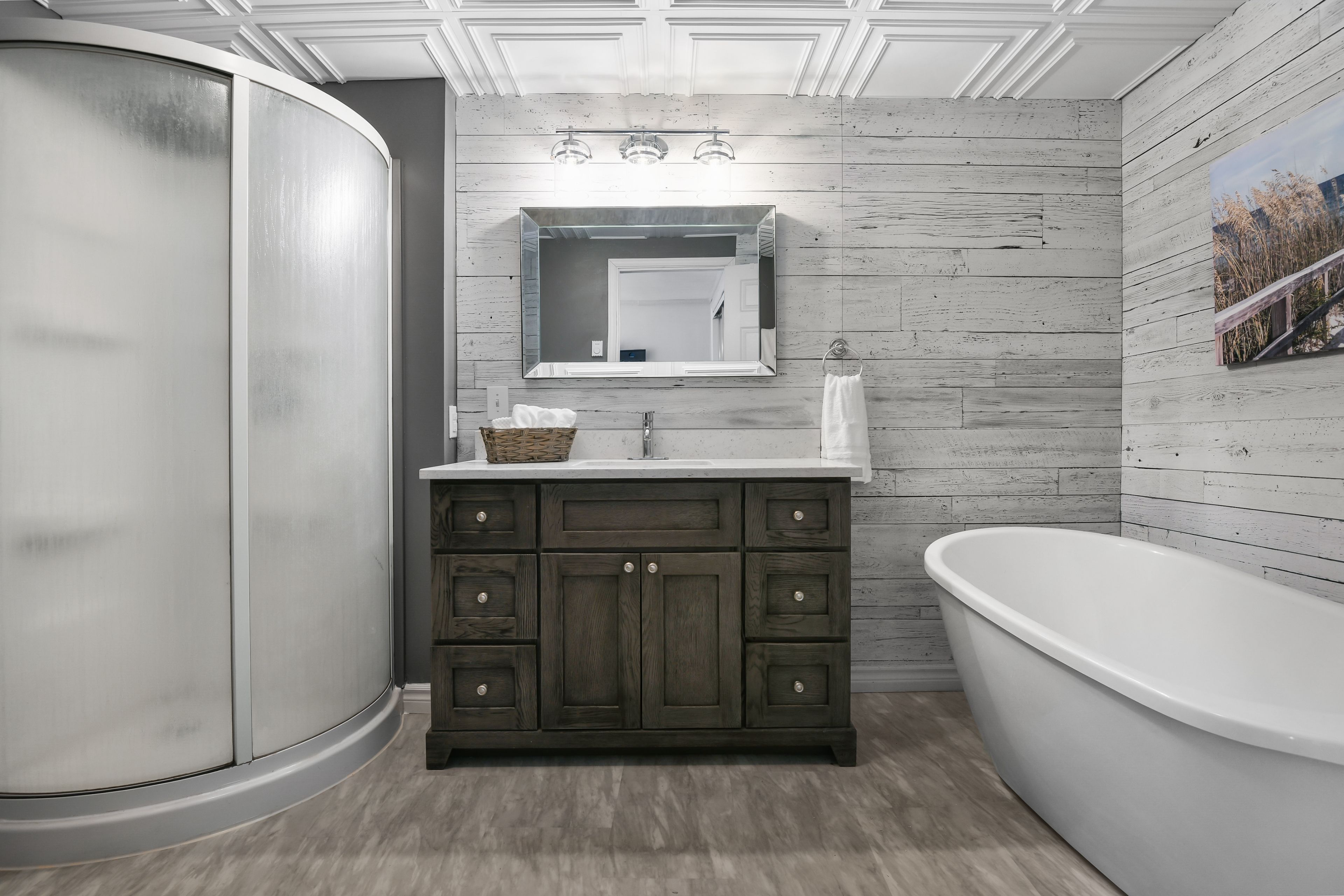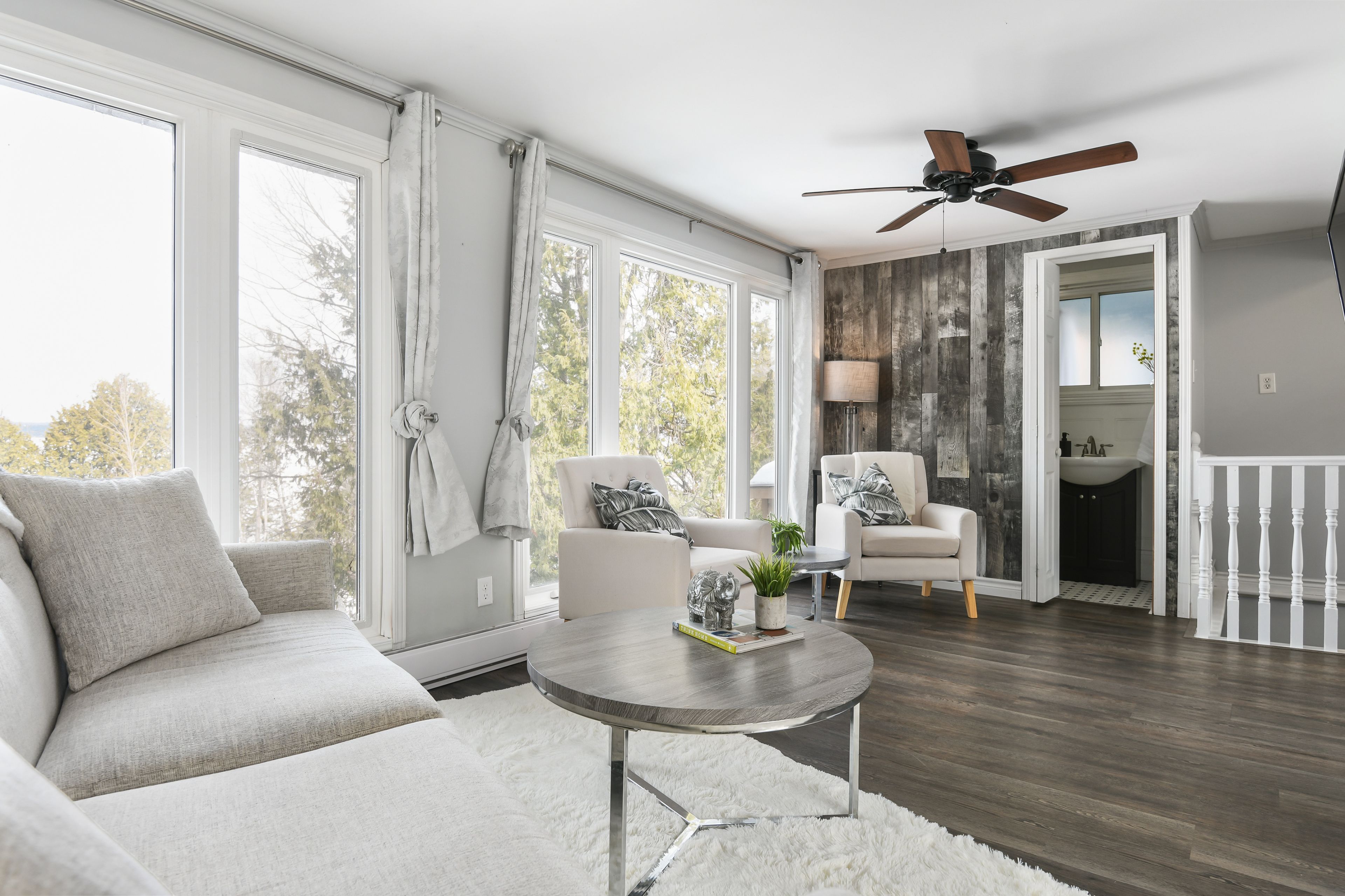 • Lower level features a walkout, bedrooms, and a spa-inspired bathroom.