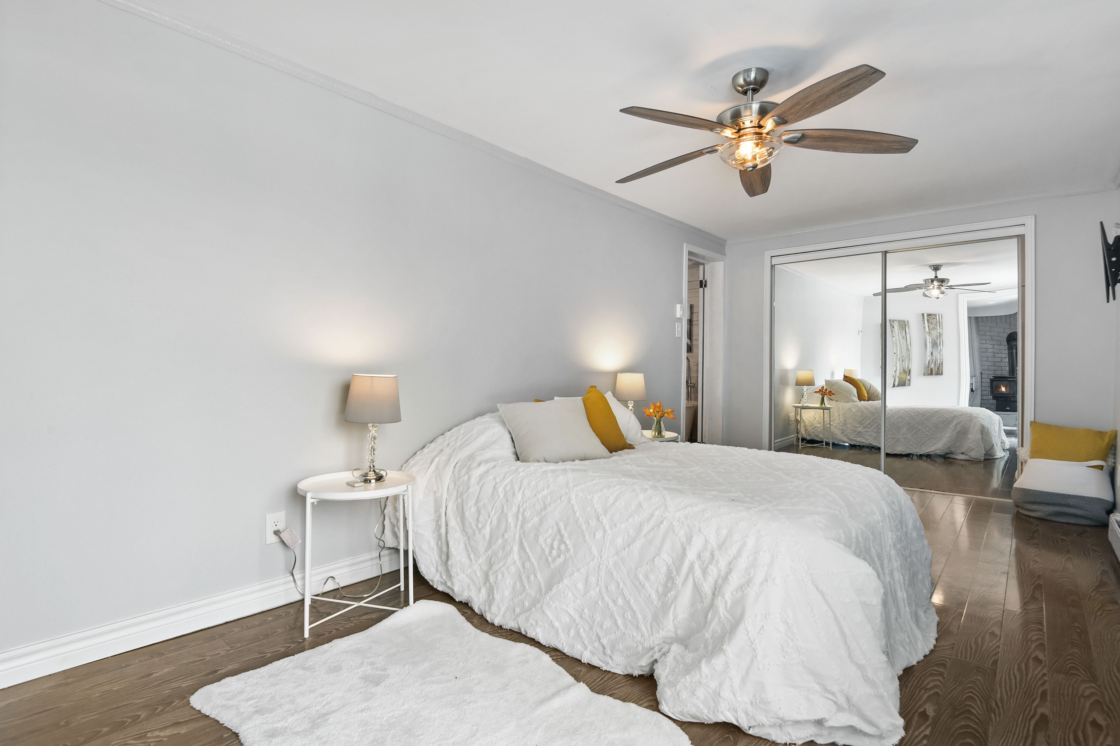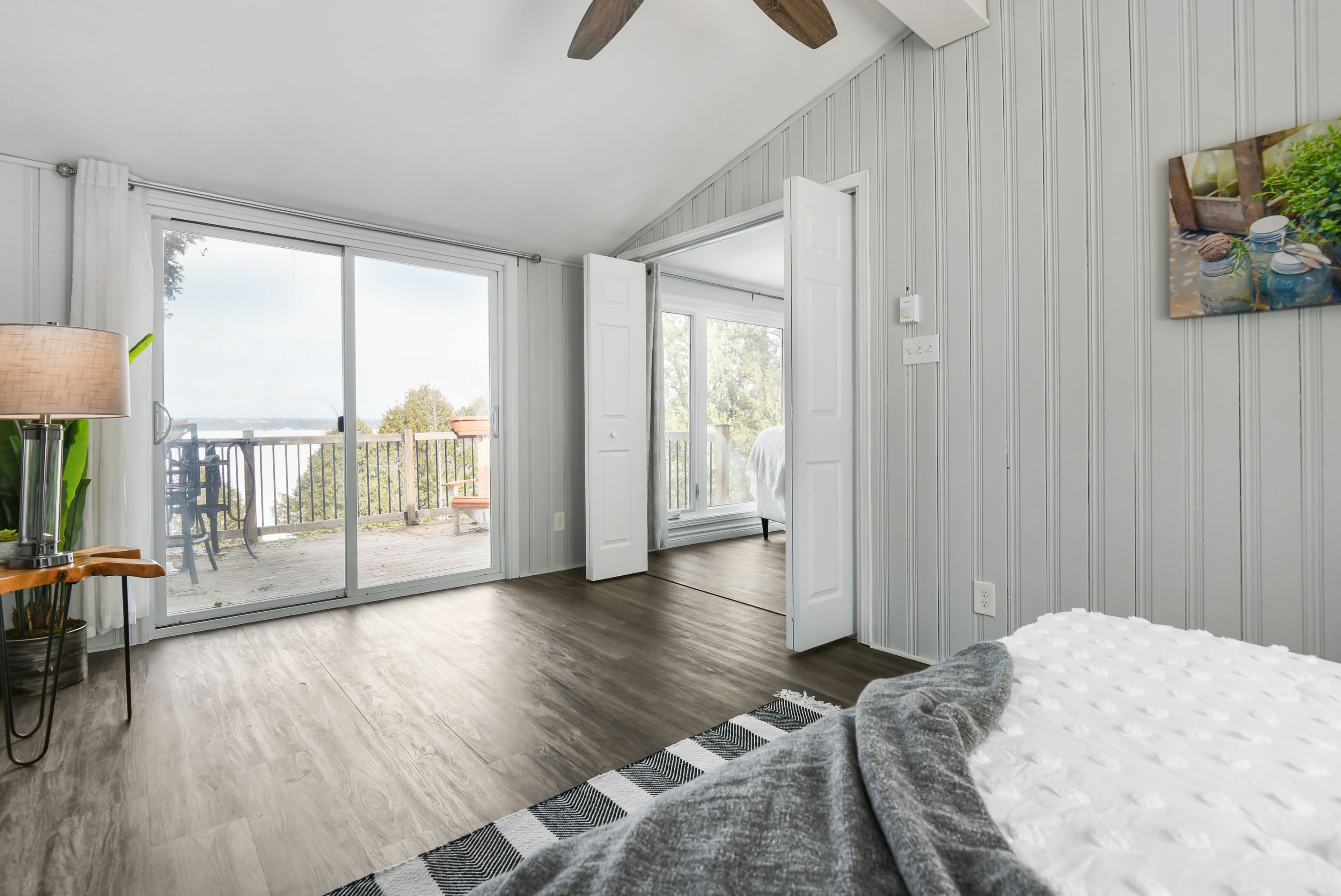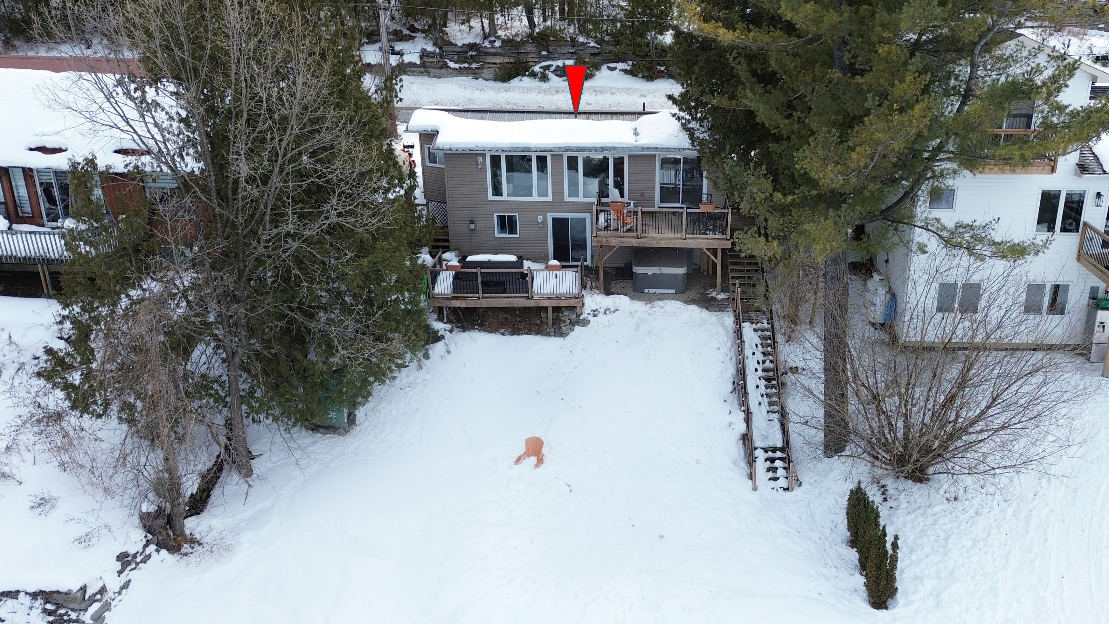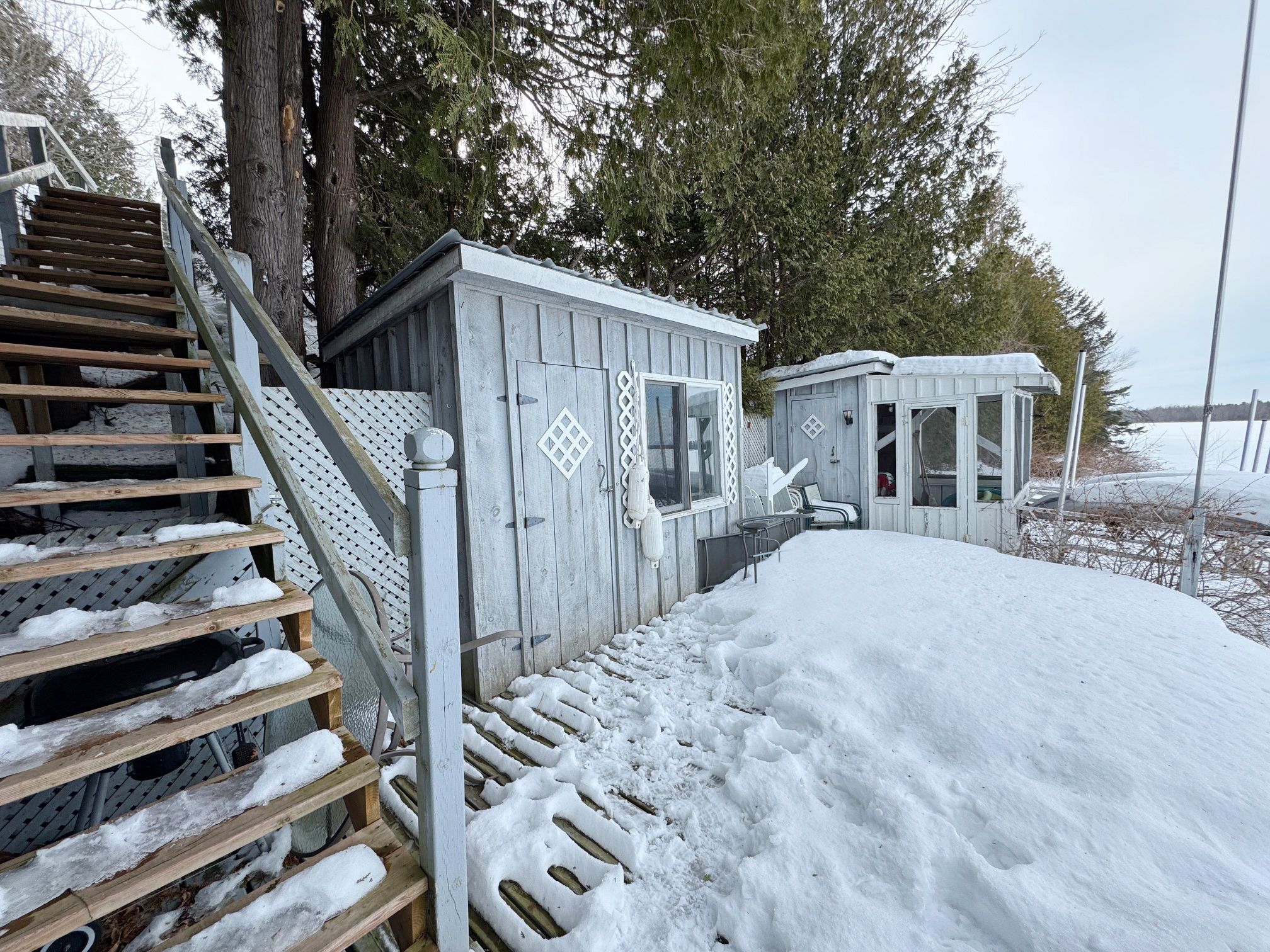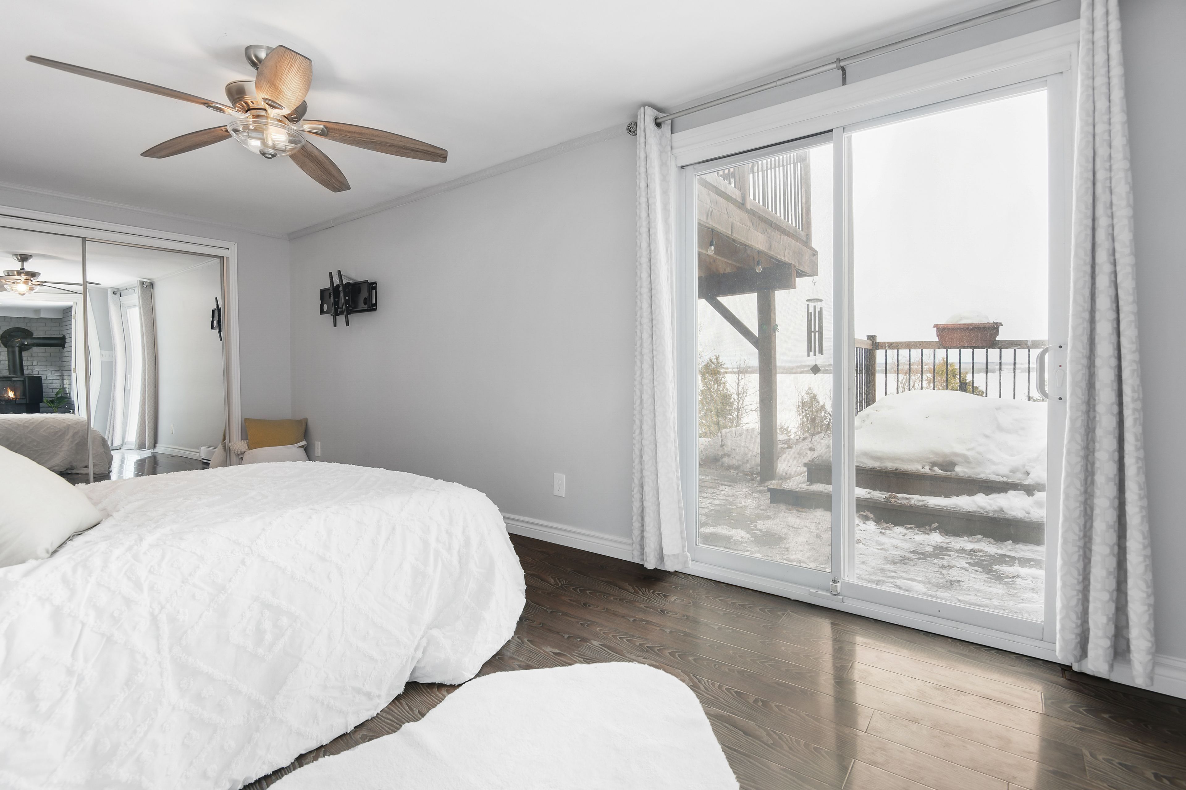 • Generous yard with private shoreline access, dock, and outdoor deck.