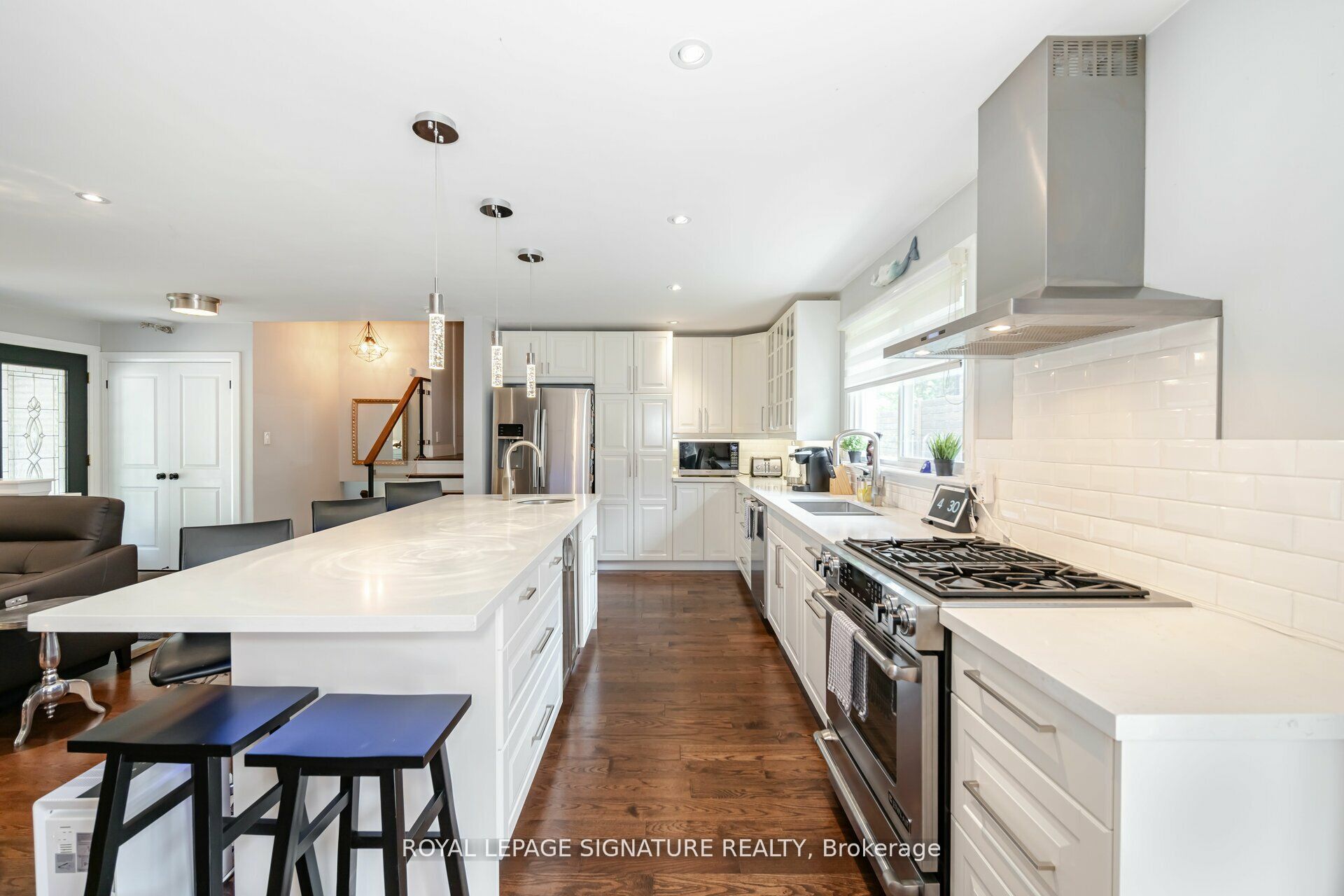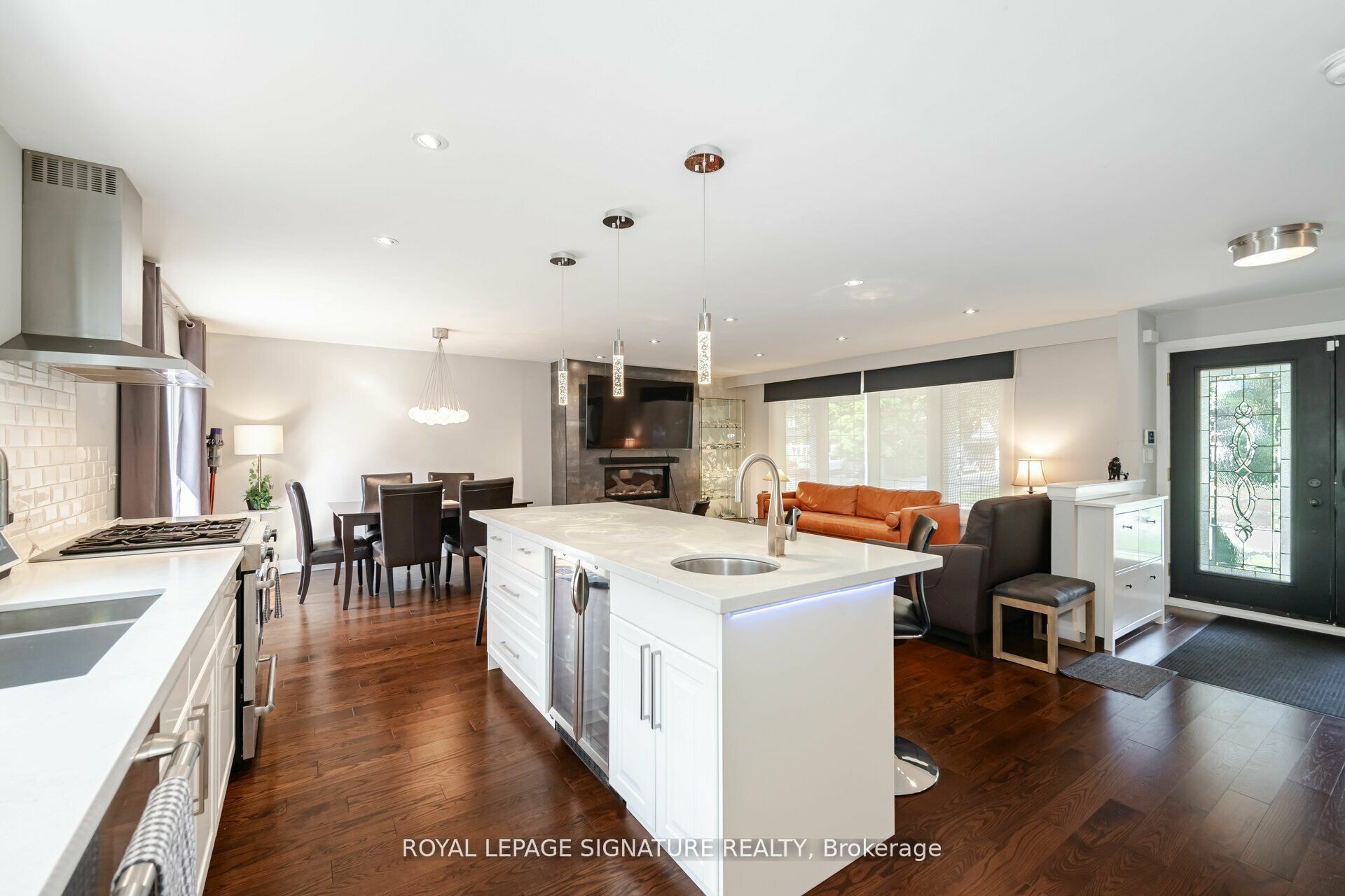 Extremely well-maintained 4 level side split. Hardwood flrs, smooth ceilings thru-out, pot lights, 3 gas fireplaces, 3 bathrooms, heated floors in lower level bathroom, amazing open concept kitchen, 8' island with 2nd sink and wine cooler, w/o to prof. Landscaped patio, w/o from mbr. To deck, remote controlled blinds in living room. Ready to just move in. Shows amazing! Quiet family-friendly street and neighbourhood, walking distance to bronte village's shops, restaurants and the lake! Quick and easy highway access! Close to go station.