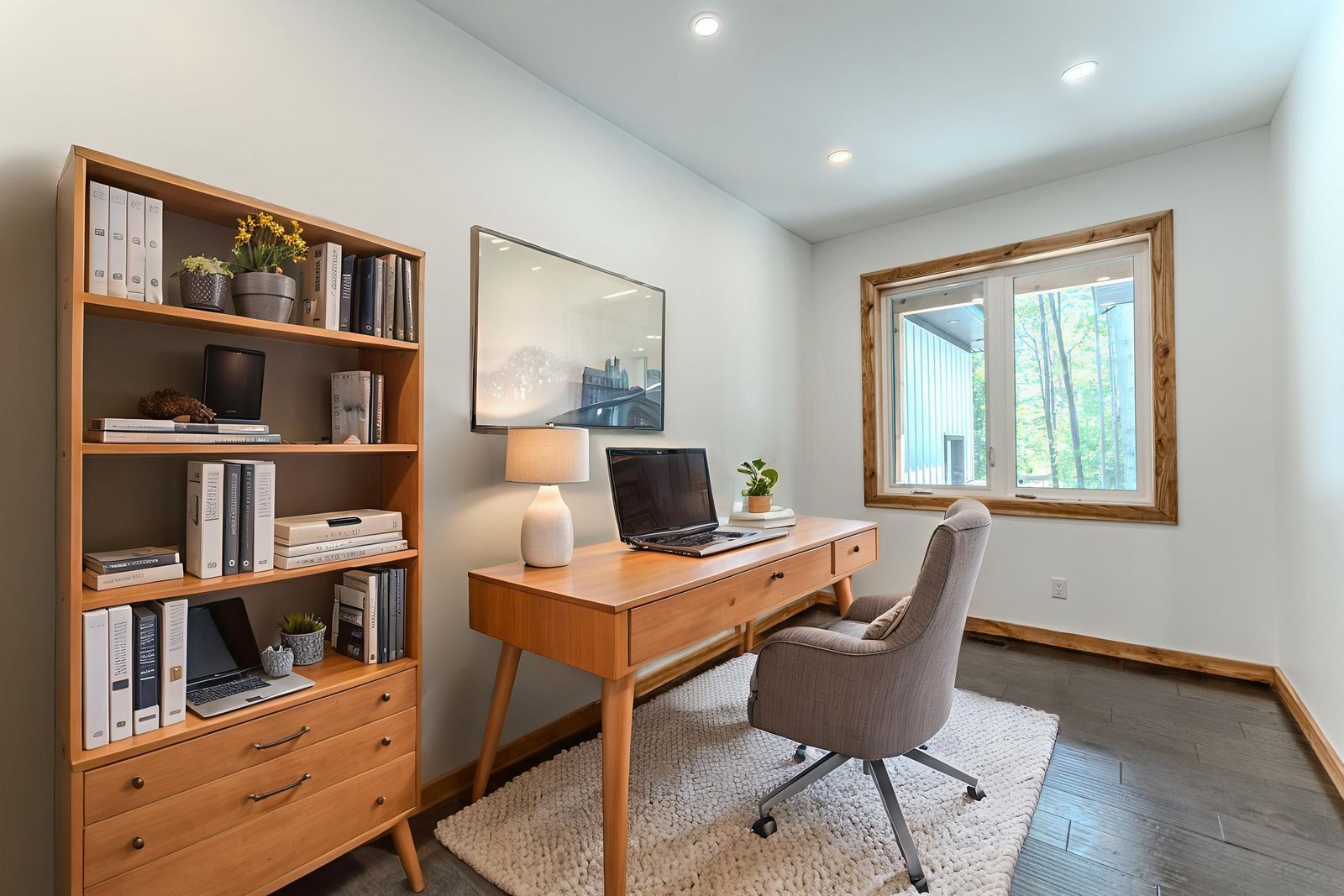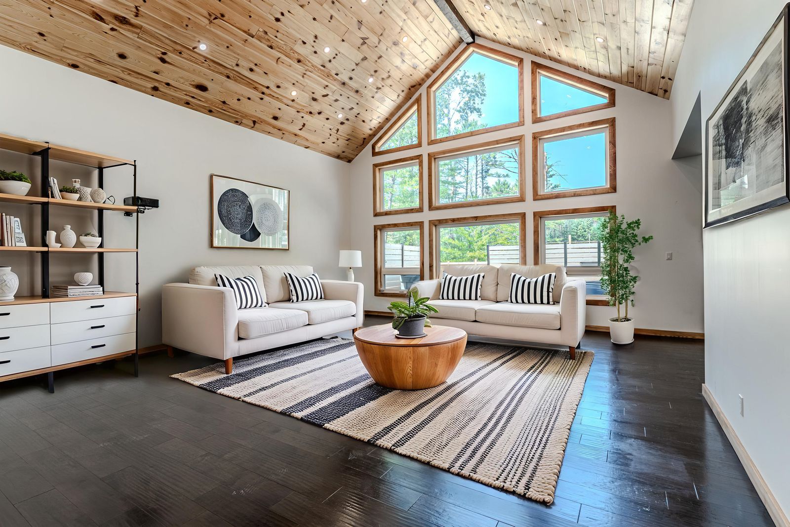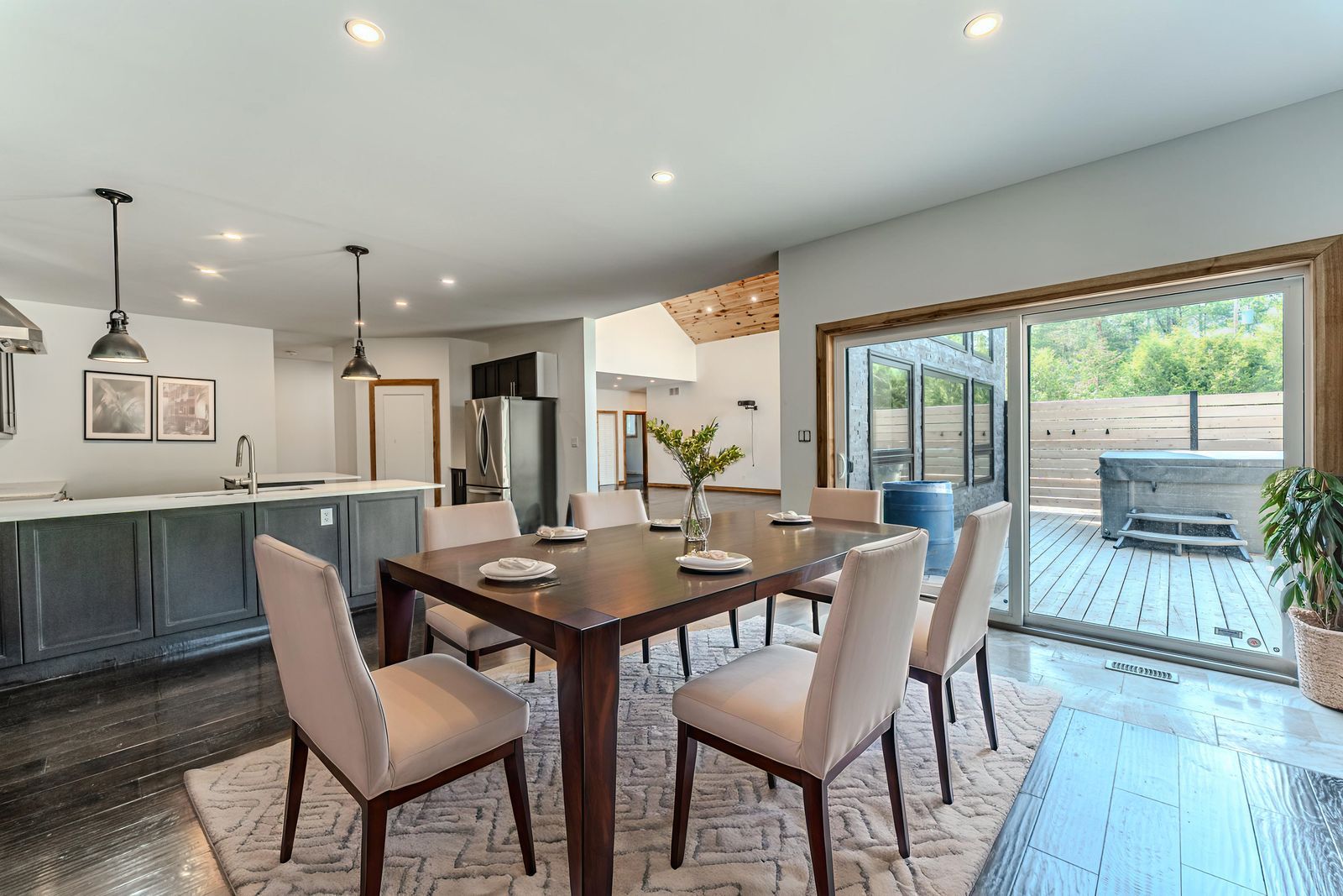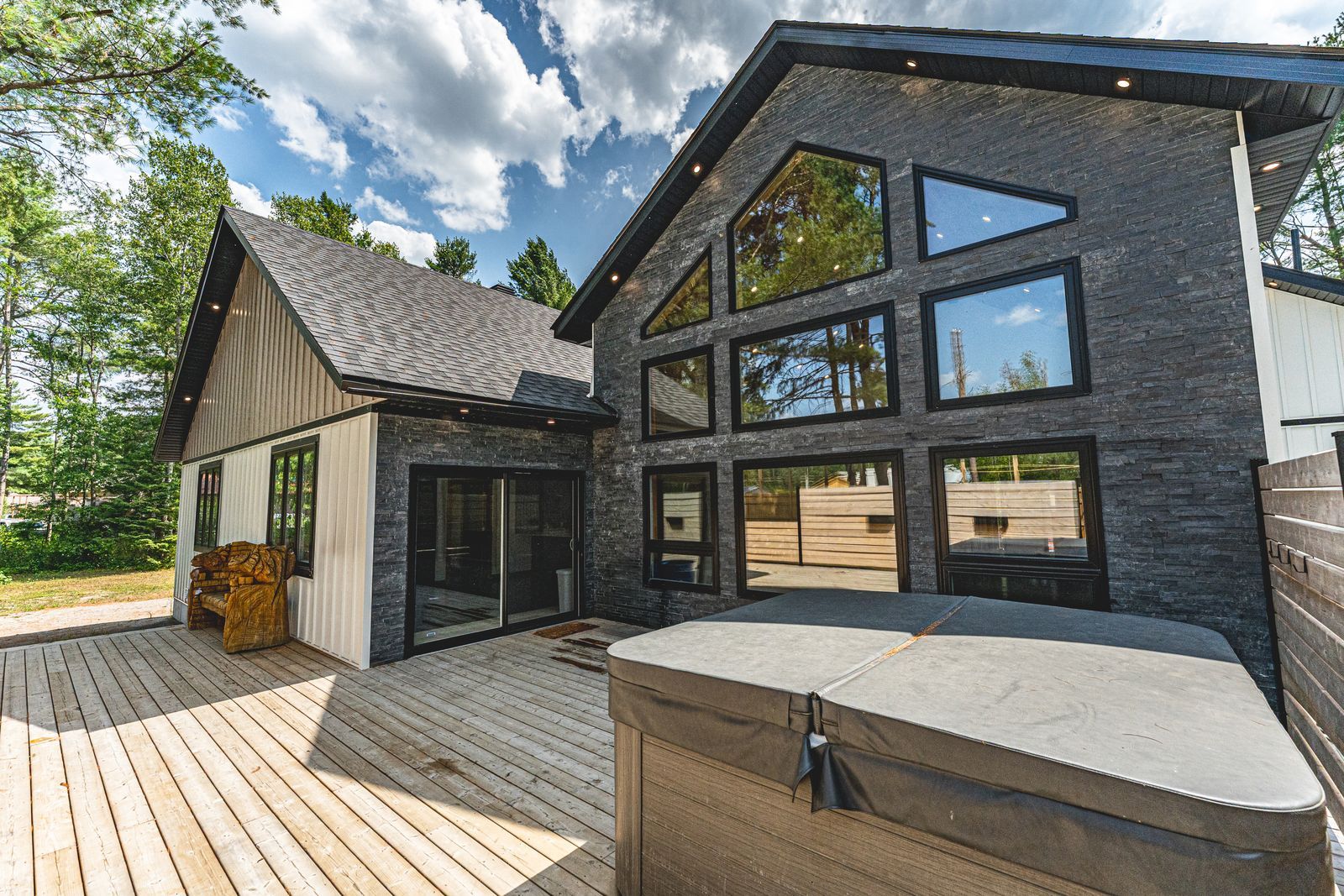Showstopping 2022-built bungalow on a private 1-acre lot with a garage that impresses! Set on a private one-acre property surrounded by nature, this remarkable bungalow, constructed in 2022, delivers modern design and quality craftsmanship in a peaceful setting. The striking exterior features stone and siding, peaked rooflines, black-framed windows, soffit lighting, and a large covered front porch finished with a stamped concrete pattern. A true highlight for hobbyists and enthusiasts, the triple-car garage spans over 1,500 sq ft and is heated, insulated, and drywalled, with 12-ft ceilings, led strip lighting, three 220v welder plugs, 10-ft x 10-ft modern doors, and liftmaster wi-fi openers. Outdoor living continues with a 600 sq ft deck designed for entertaining, complete with a seven-person hot tub, privacy panels, partial fencing, a shed, and a chicken coop. The spacious interior features 9-foot ceilings, hardwood flooring throughout, pot lights, and vaulted ceilings in the great room, which is filled with natural light by floor-to-ceiling windows. The kitchen showcases quartz countertops, an island, a tile backsplash, and newer stainless steel appliances. The primary bedroom offers a private ensuite with a soaker tub, walk-in shower, and dual-sink vanity, while a second full bath and powder room with laundry add functionality. The unfinished basement includes a separate entrance from the garage and a partially completed 3-piece bath, providing an opportunity for future living space. With its close proximity to restaurants, grocery stores, schools, medical services, and parks, and just under ten minutes from downtown bancroft, this beautiful #hometostay combines privacy, modern features, and everyday convenience in one impressive package.
