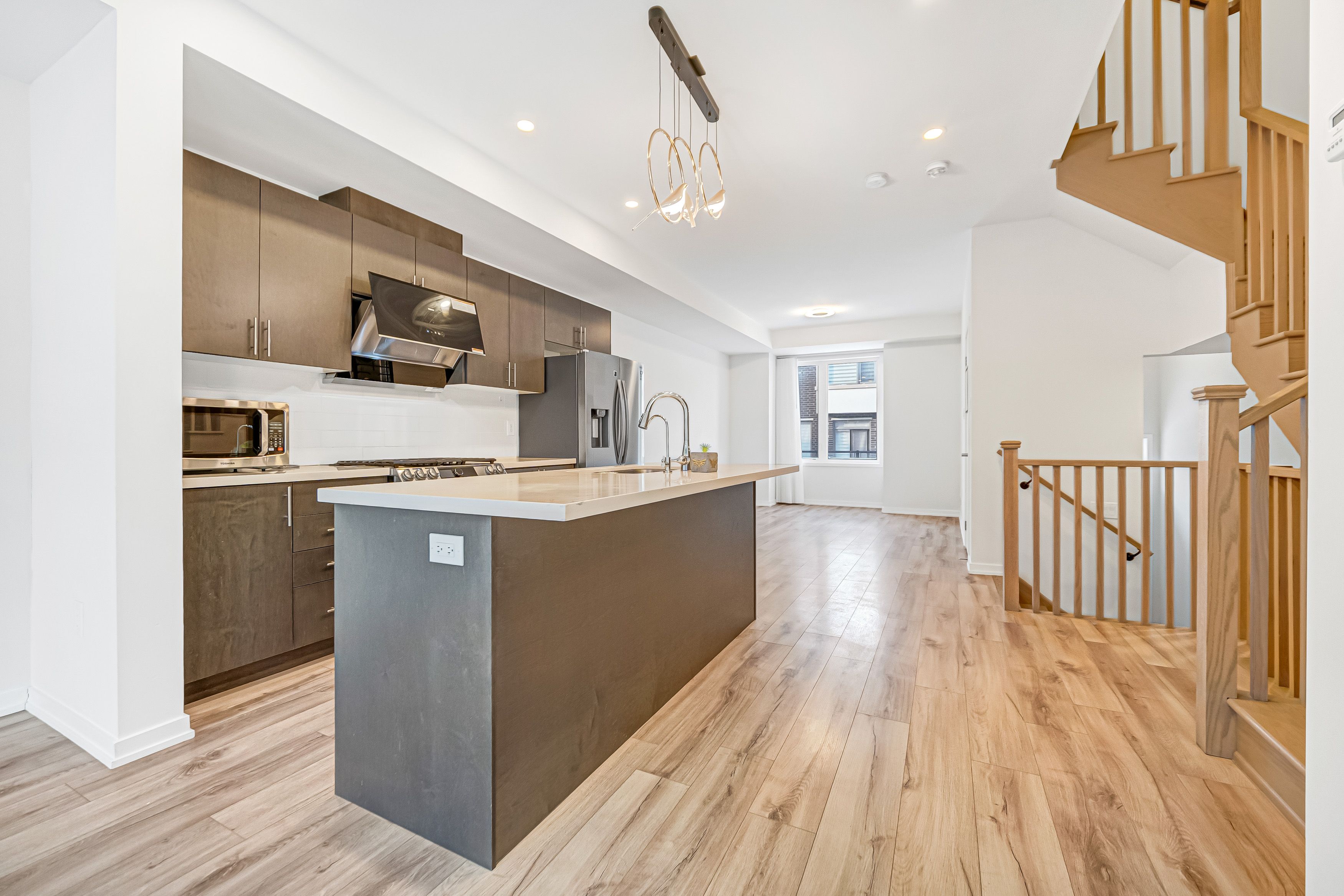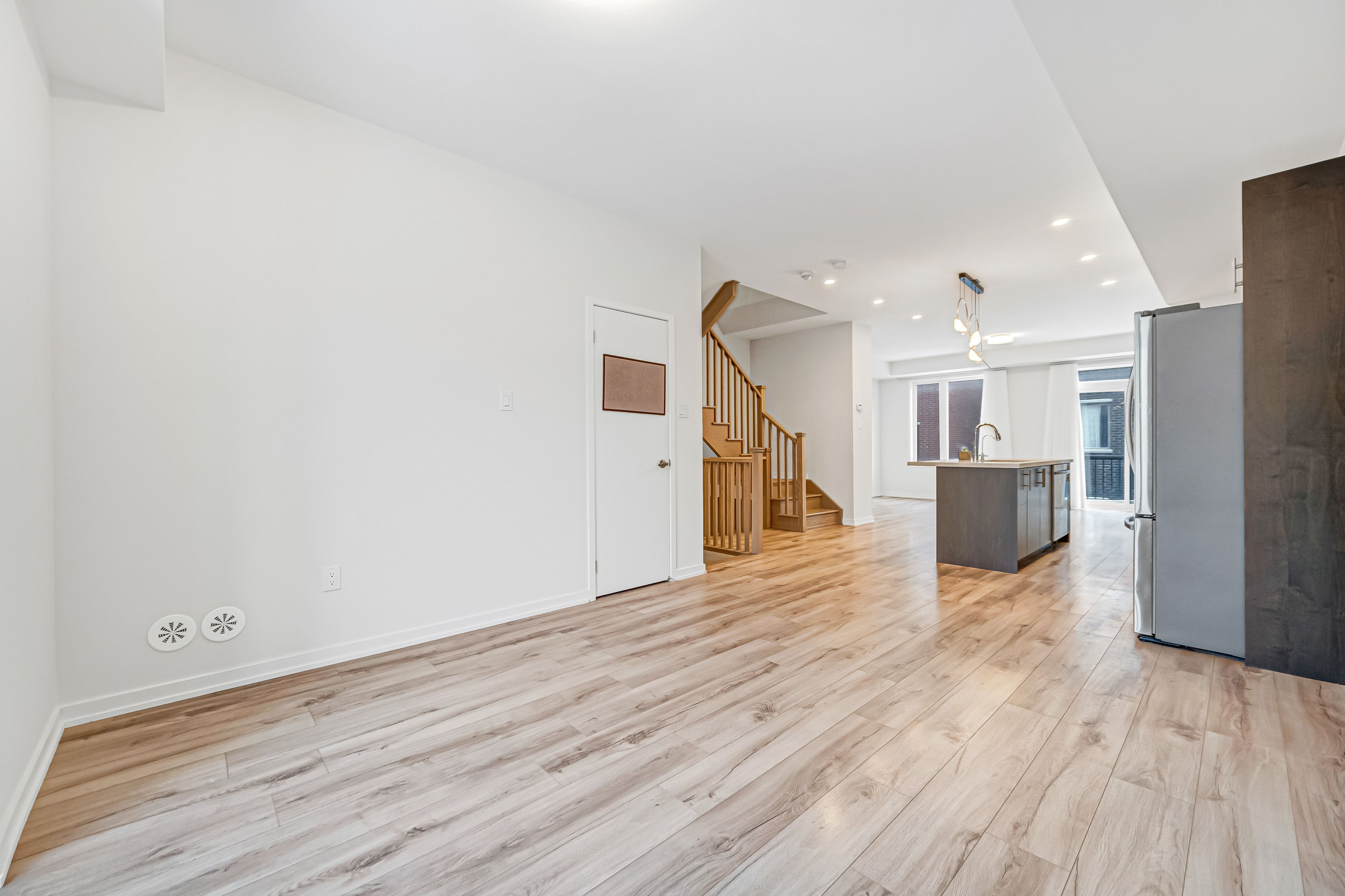 Heart location in vaughan! 3-storey end unit townhouse by treasure hill in patterson, vaughan. 3 bedrooms plus ground floor family room can be used as a 4th bedroom or office with walk-outto backyard. Functional and square layout throughout. 9 ft smooth ceilings, bright and spacioussouth-facing home with tons of natural light. Open-concept kitchen with centre island, gasstove, and stainless steel appliances. One bedroom features a private balcony. Minutes to gostation, hwy 400 & 407, shopping centers, schools, parks, supermarkets, restaurants, and more.