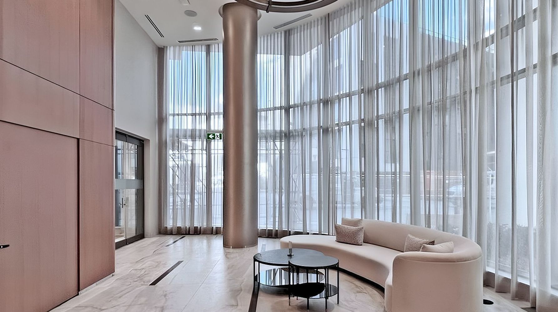 • Building amenities include fitness studio, indoor pool, and concierge service.