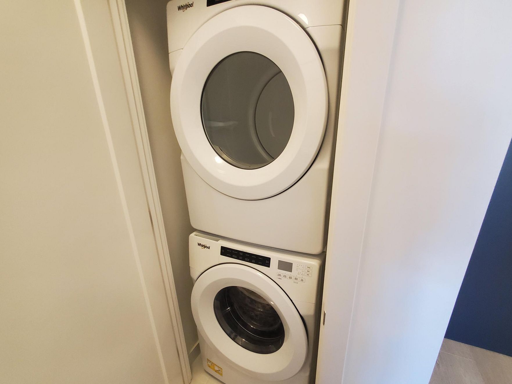• Contemporary soft close cabinetry and in-suite laundry enhance functionality.