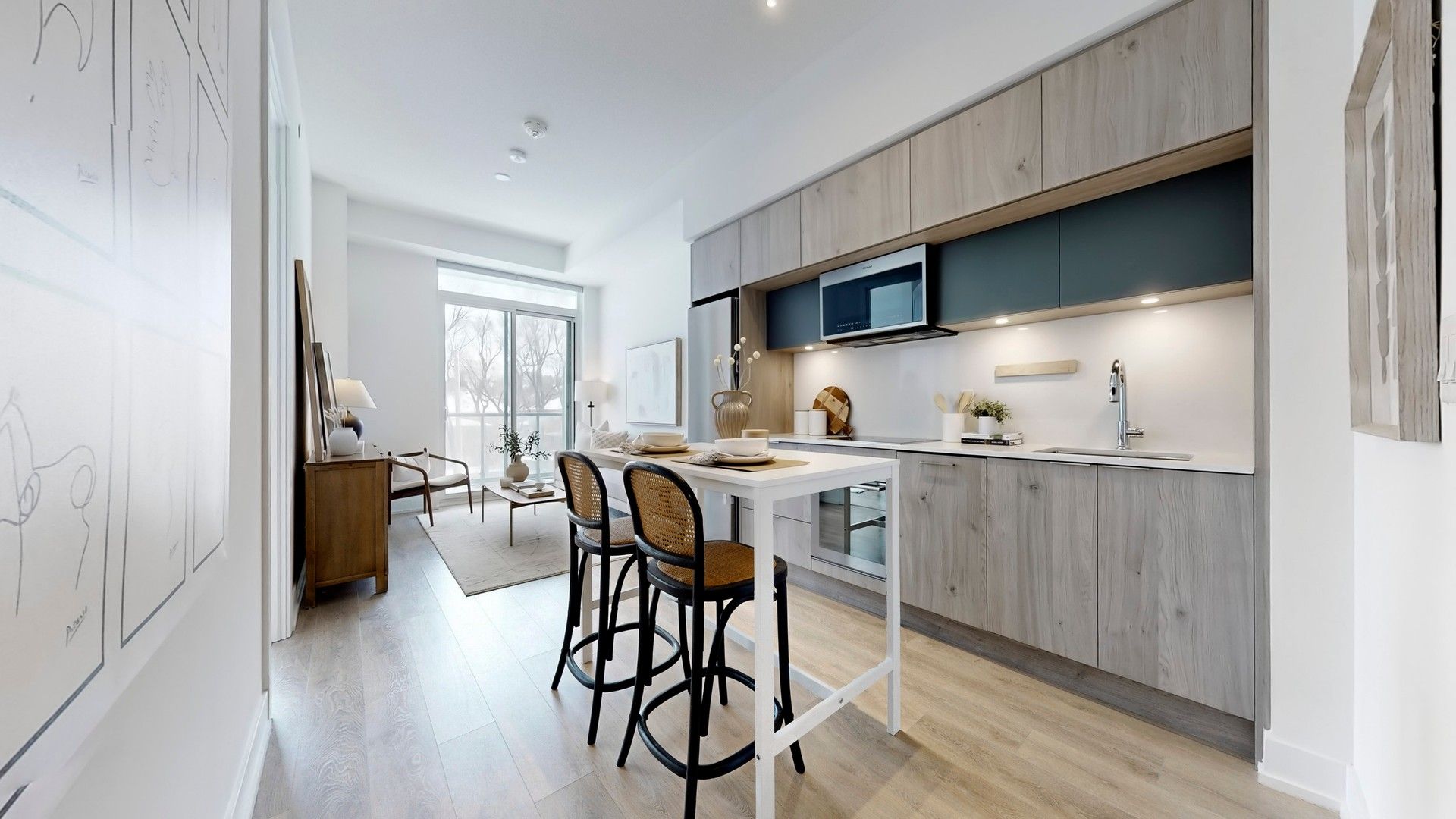 Welcome to scala by tridel, a sophisticated residence in the heart of bayview village. This spacious 1-bedroom plus den suite offers a functional and elegant layout, featuring 10-ft ceilings, two full bathrooms, and a large private balcony with serene east-facing views. The versatile den can easily serve as a second bedroom, home office, or guest space-ideal for modern living. The open-concept design is enhanced by floor-to-ceiling windows, filling the home with natural light. A contemporary kitchen showcases quartz countertops, sleek cabinetry, and quality finishes throughout. Enjoy the convenience of one parking space and one locker, along with access to an exceptional range of building amenities located on main floor, 7th floor, and 16th floor including a fully equipped fitness centre, indoor pool, party room, theatre, and 24-hour concierge service. High-speed internet by rogers is included in the maintenance fees for added value and convenience. Located in one of north york's most desirable communities, you're just minutes from bayview village, fairview mall, subway stations, parks, ravines, restaurants, ikea, hospitals, top schools, and major highways. Experience elevated urban living at scala - where comfort, style, and convenience come together.