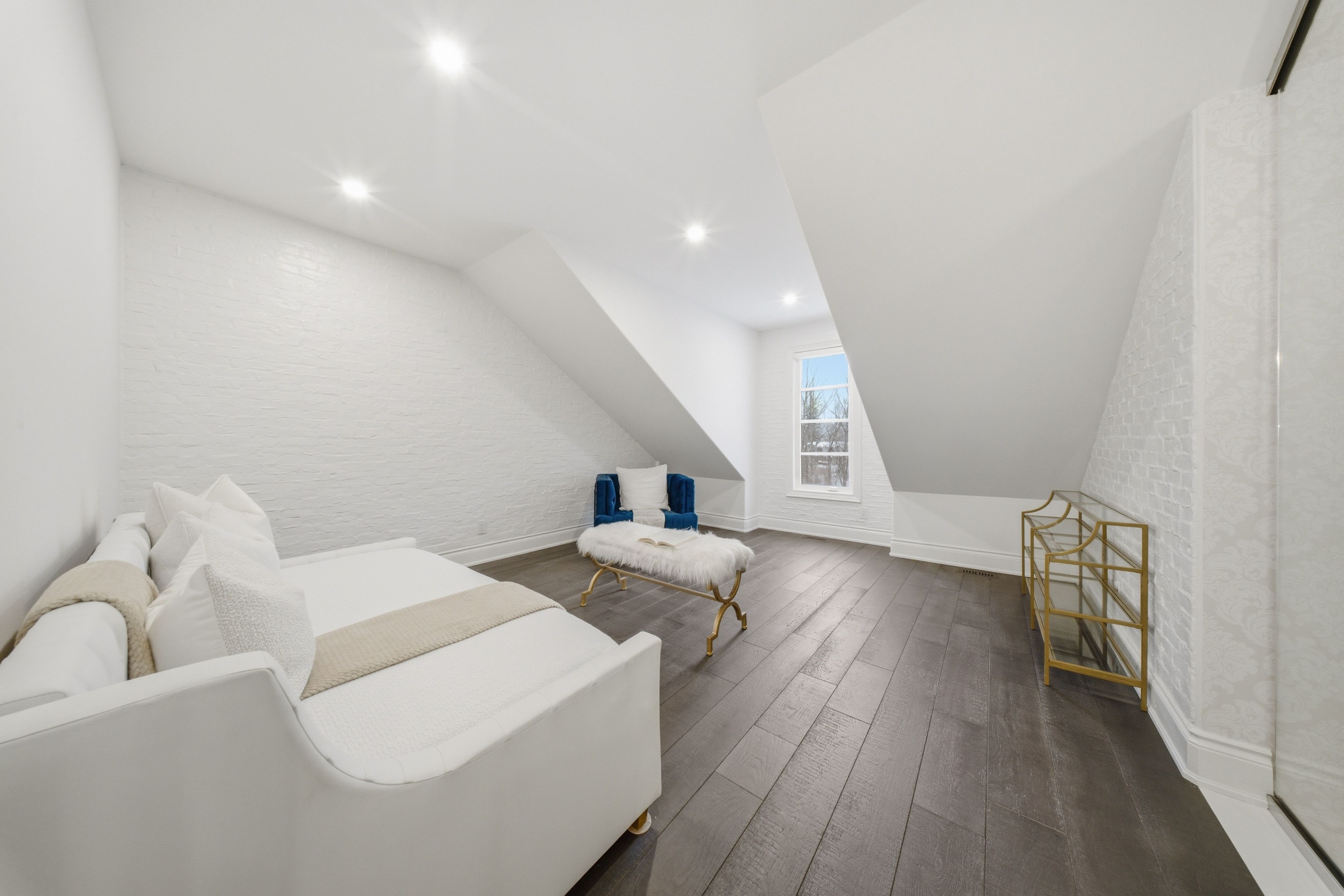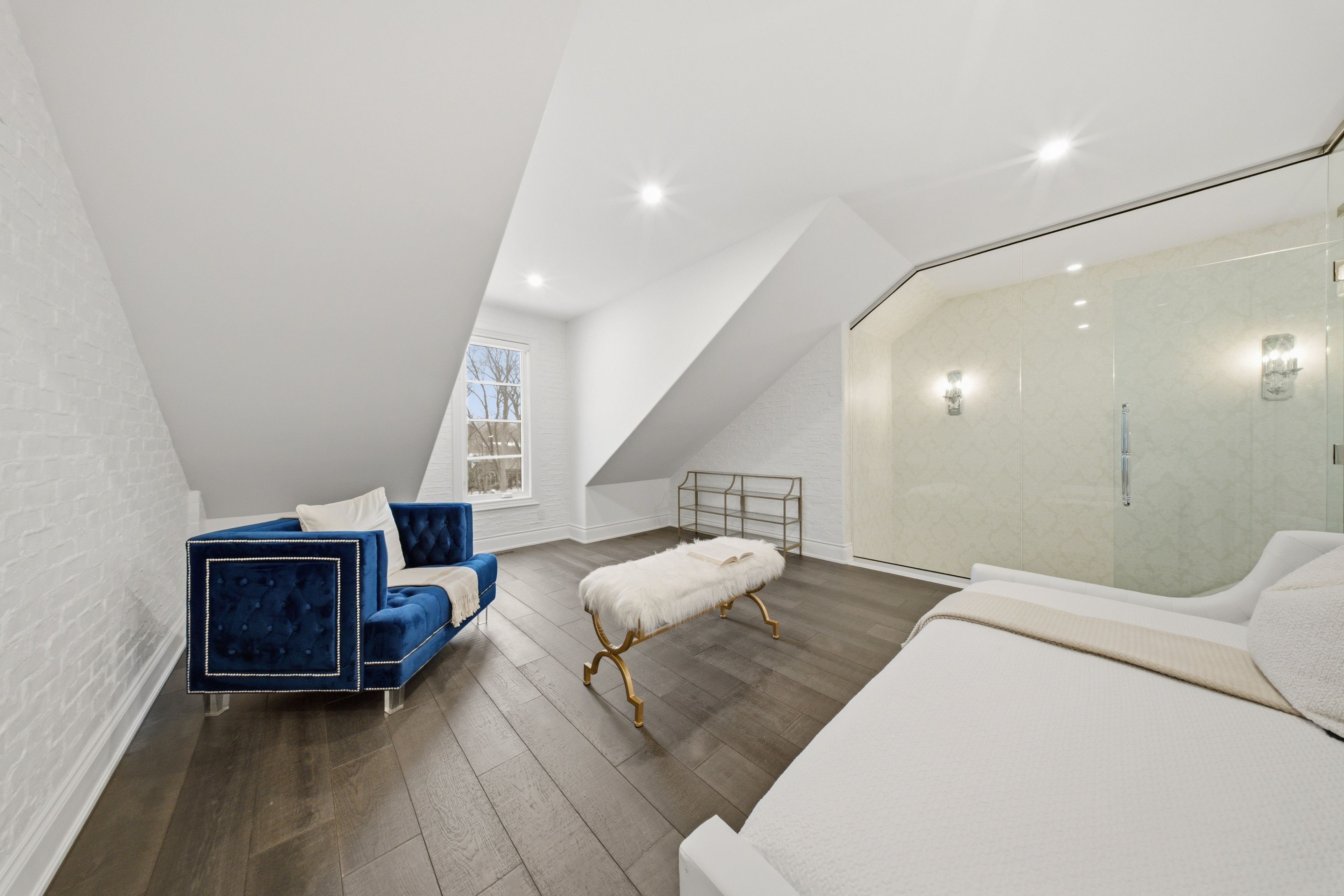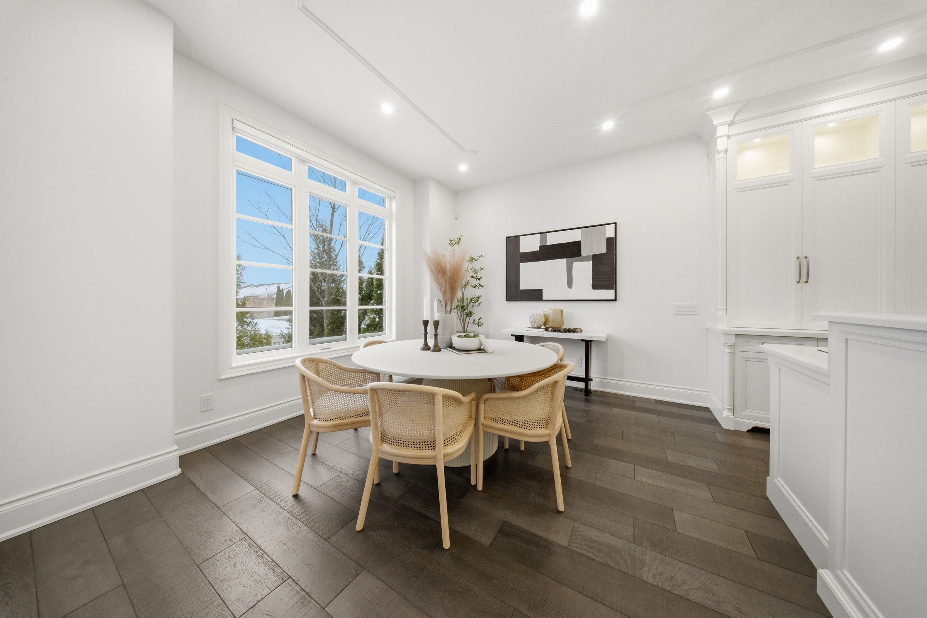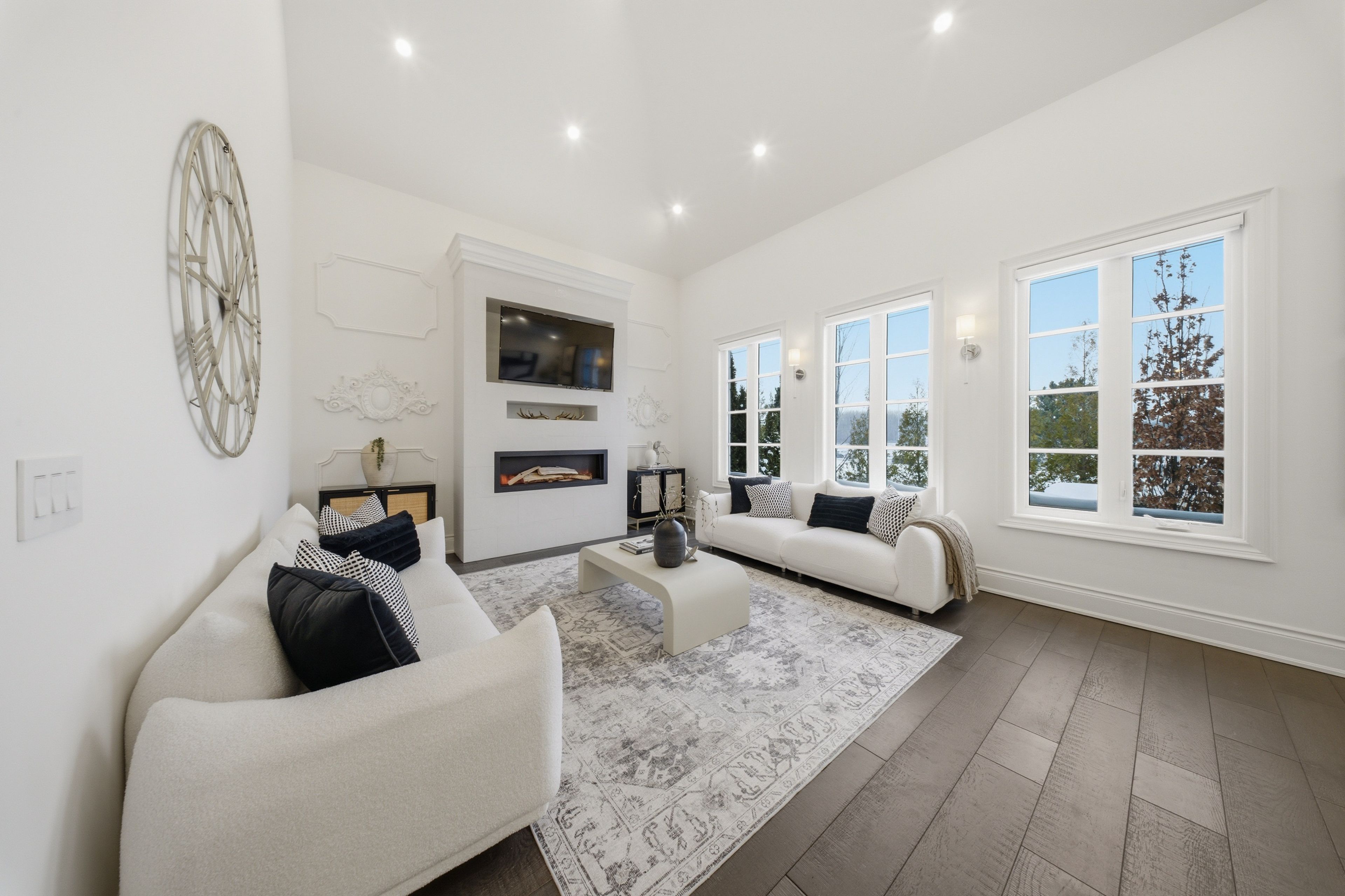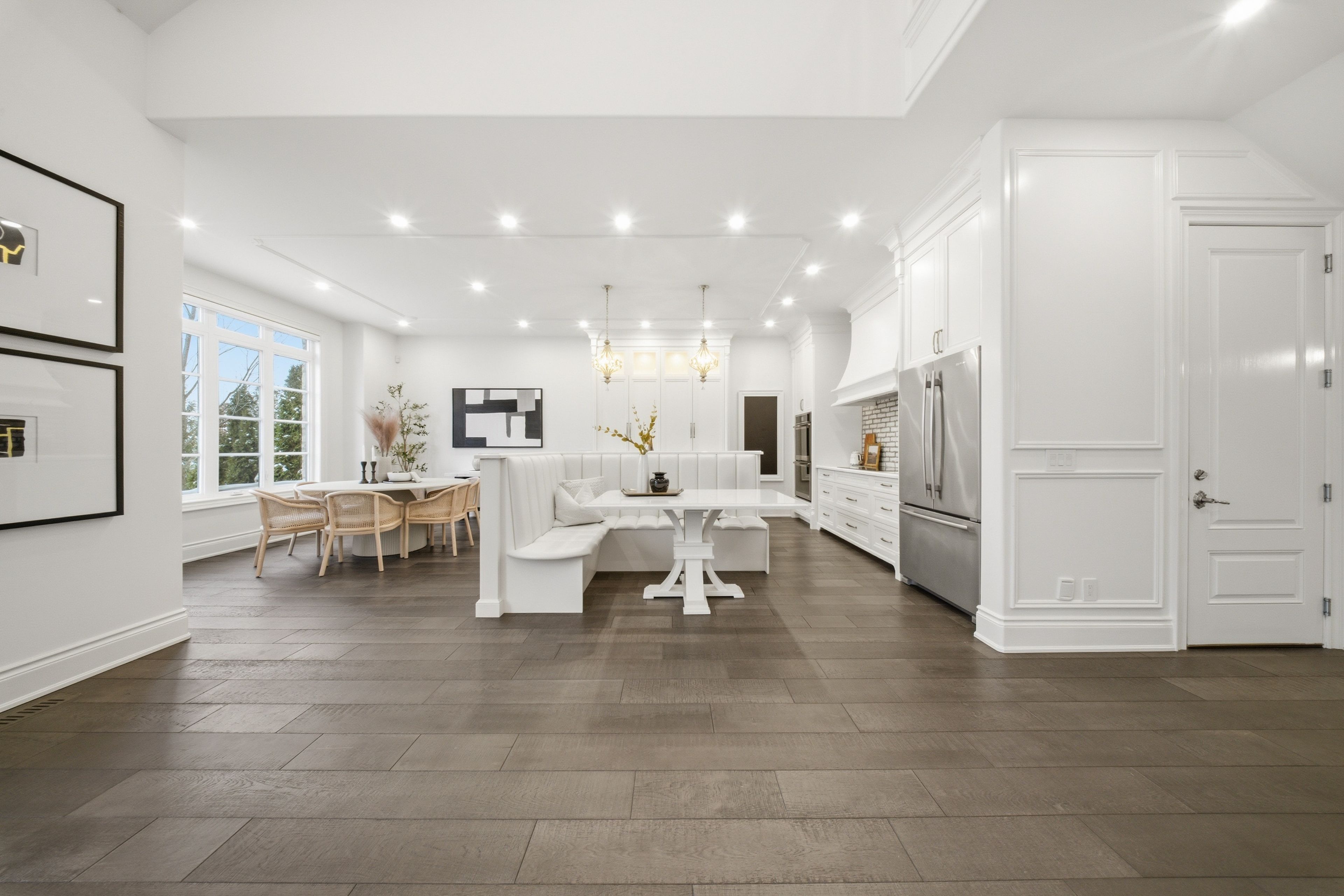 • Main level features 20-foot ceilings and expansive windows for natural light.