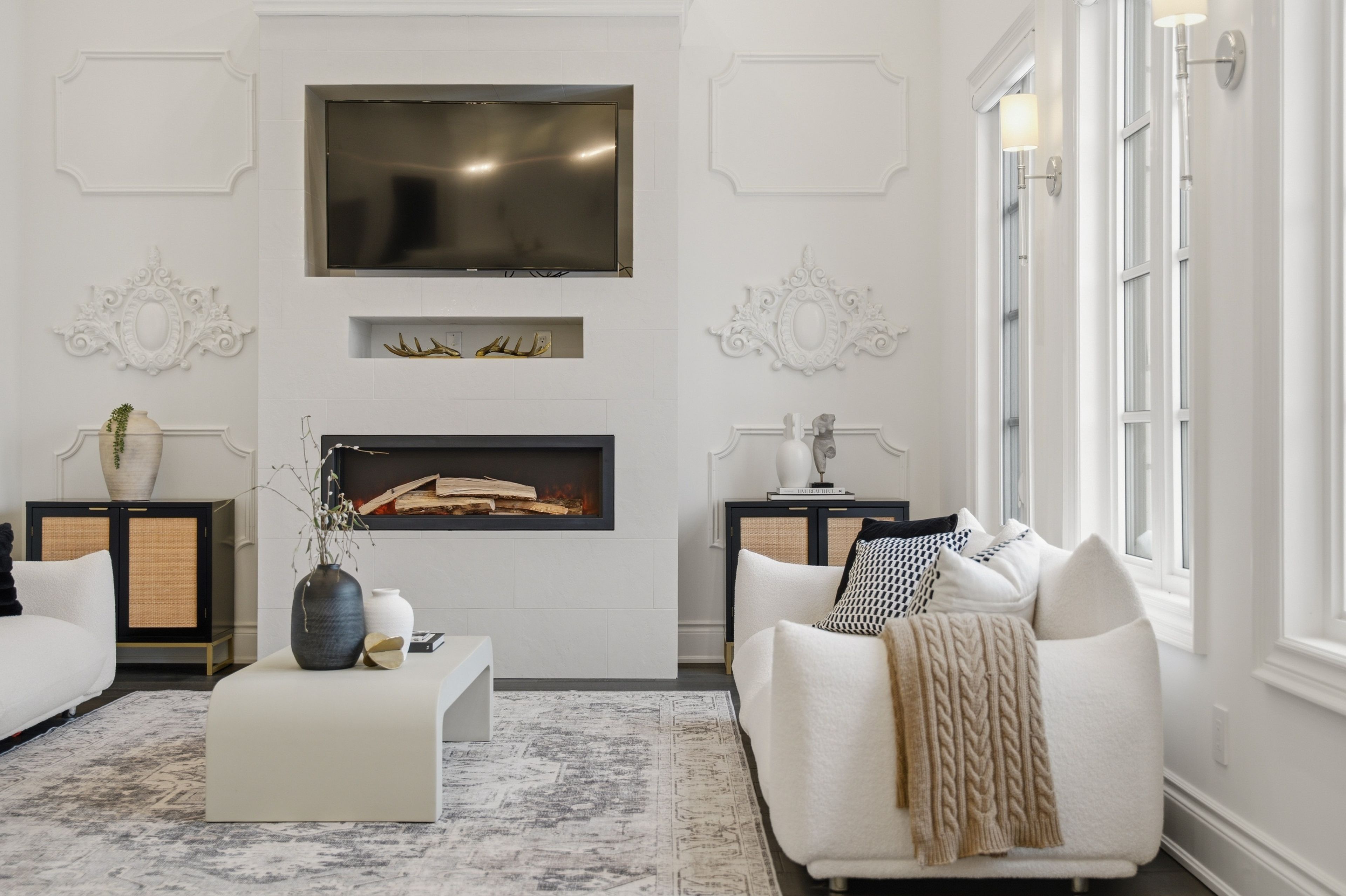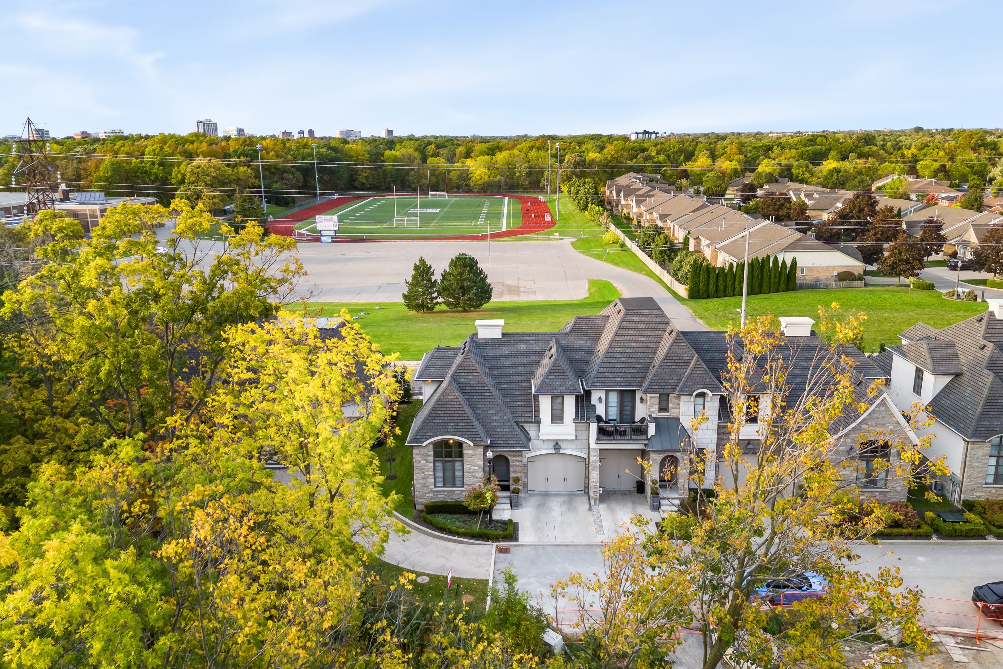 • Custom-built townhome with elegant stone exterior and European-inspired design.