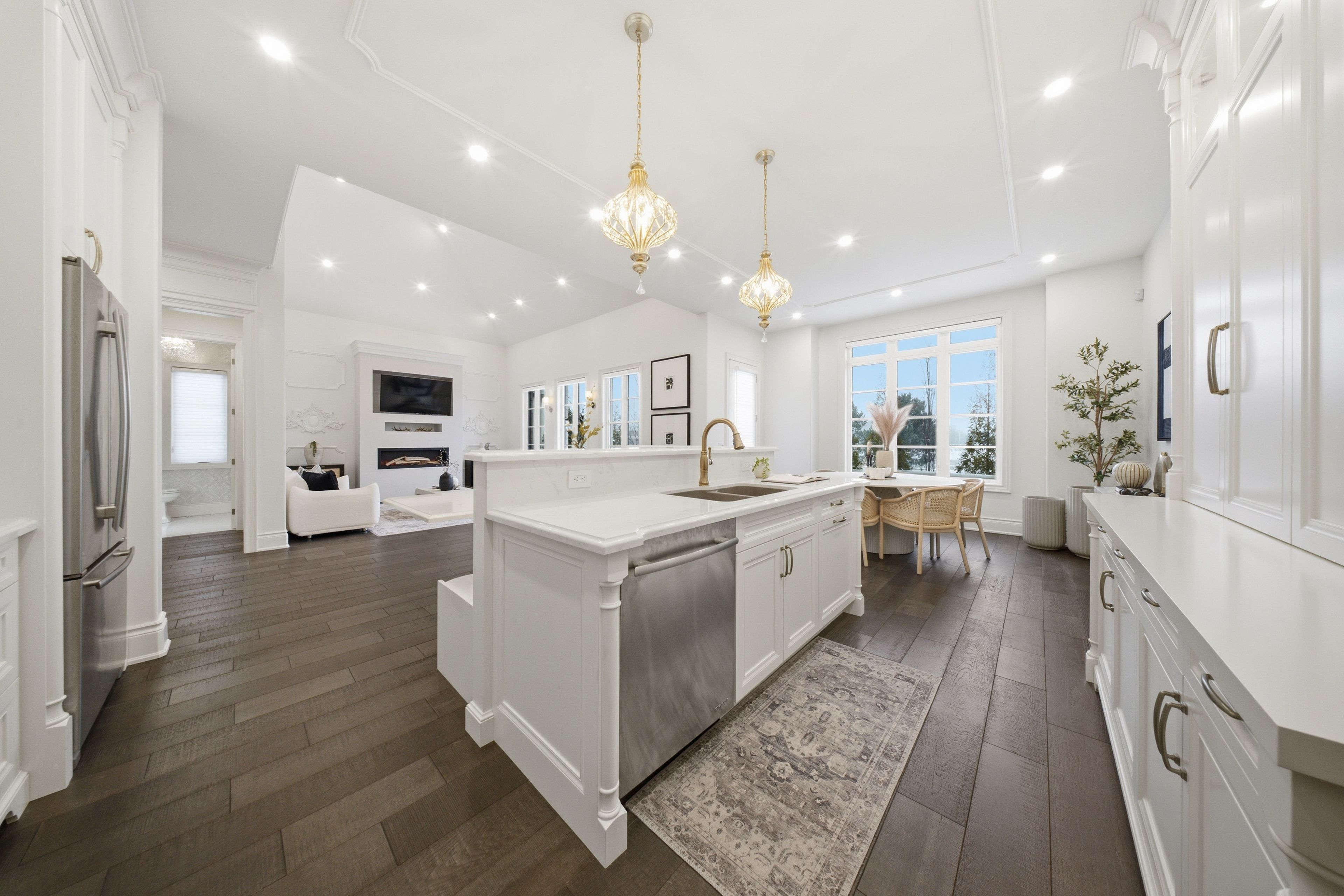 • Chef-inspired kitchen with quartz island and premium appliances for easy cooking.