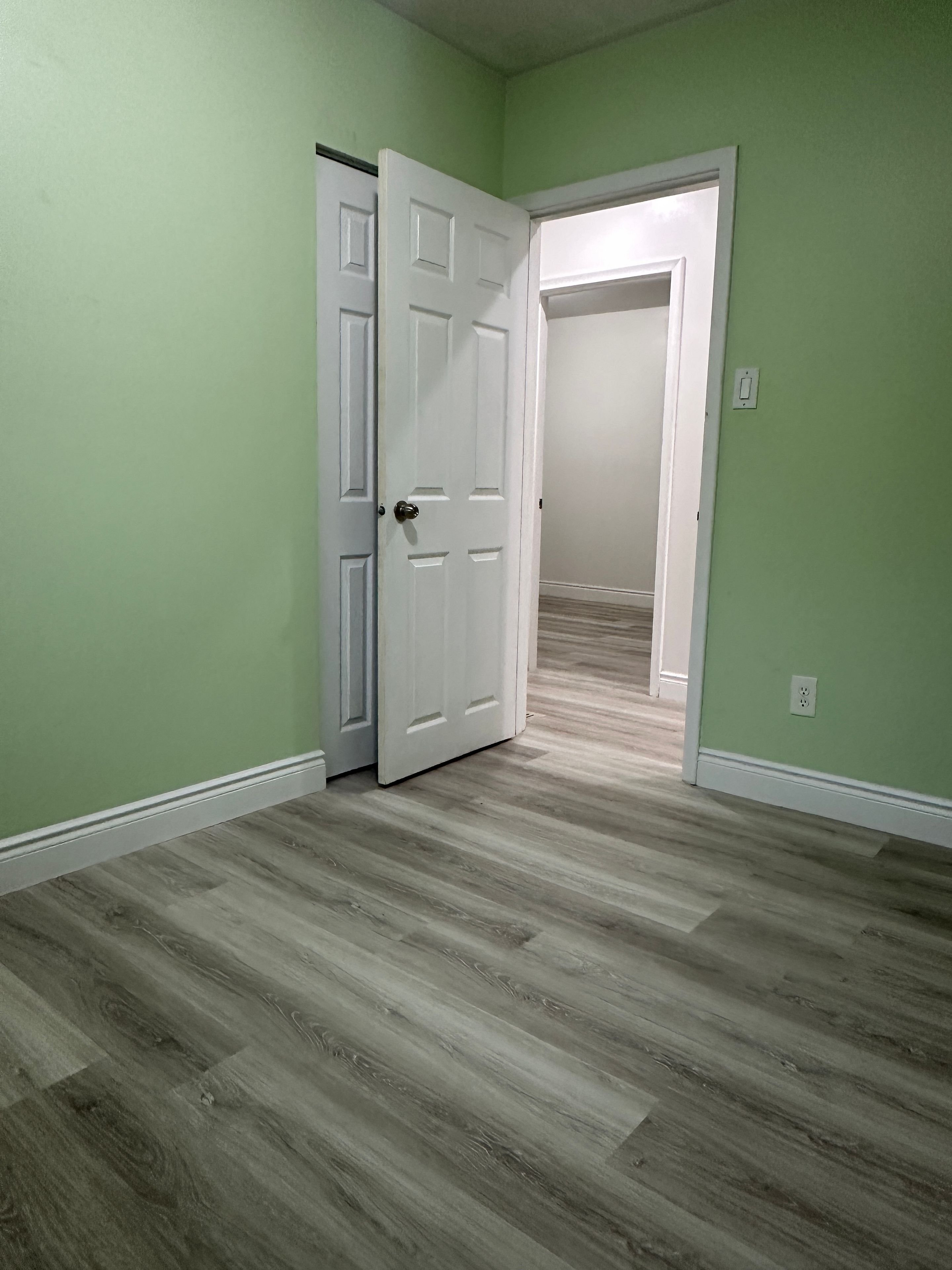 • Freshly painted apartment with new vinyl flooring and bright, natural light.