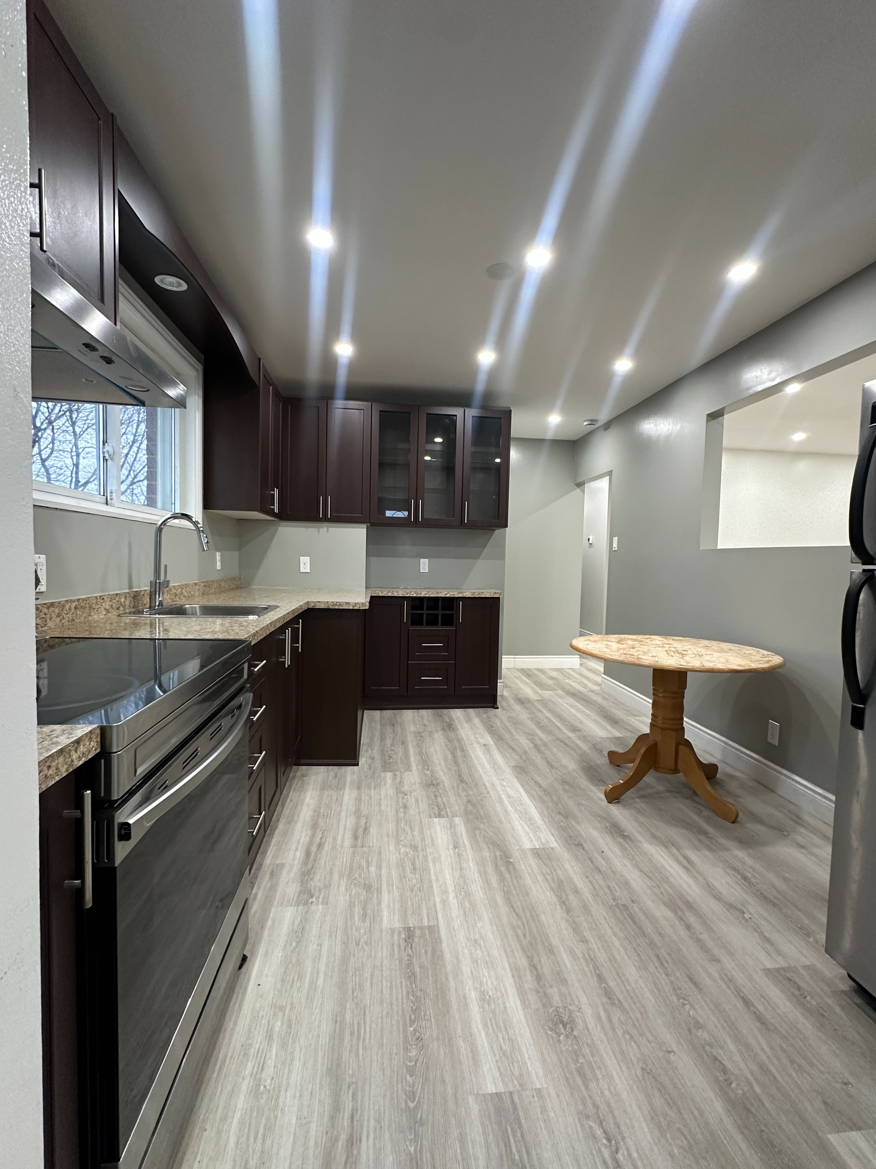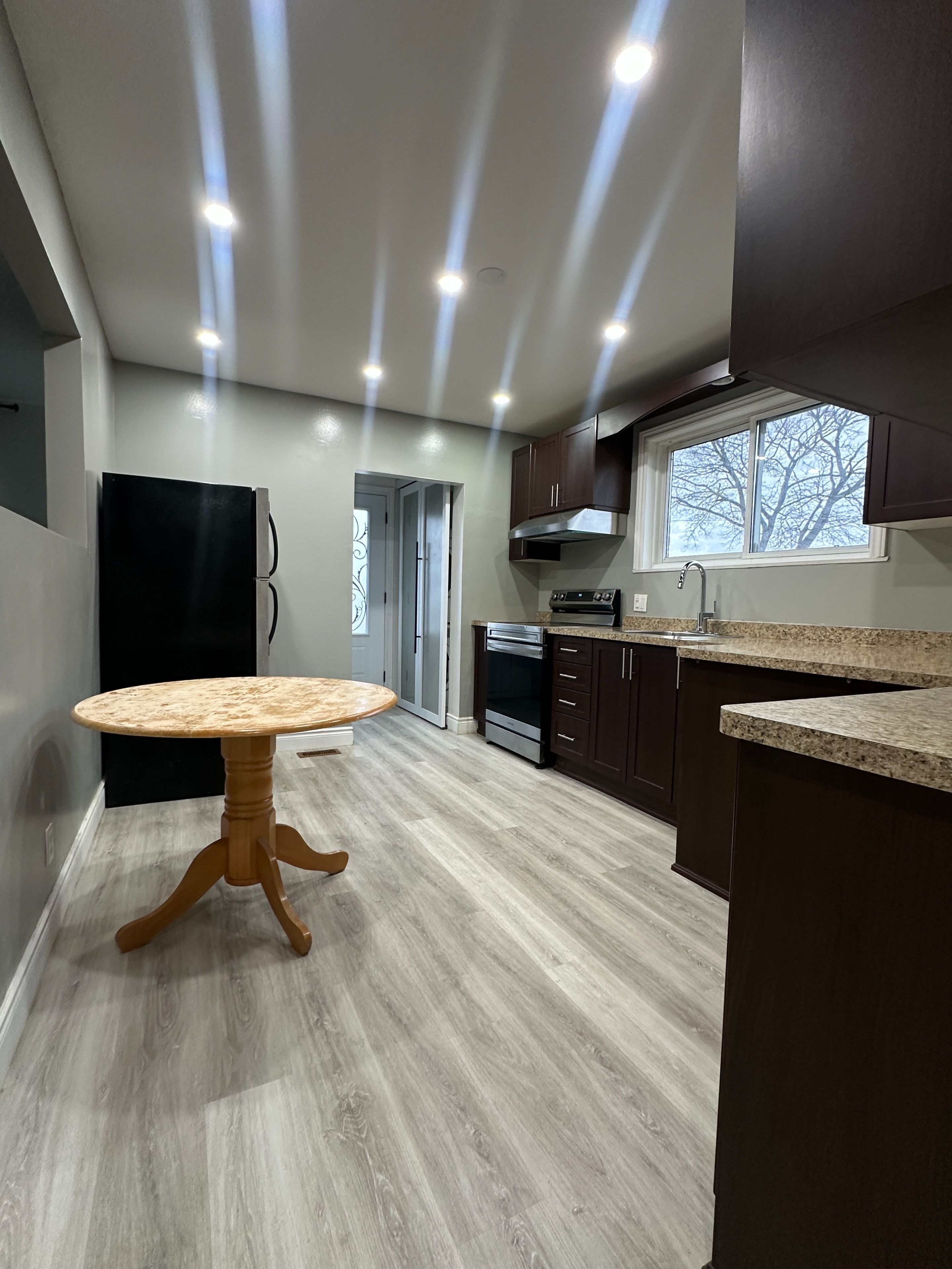 Freshly painted, bright, and completely private 3-bedroom, 1 parking, 1-bath apartment available immediately in a friendly, welcoming neighbourhood. This spacious unit features new vinyl flooring installed a couple of months ago and offers a clean, modern feel throughout. Large windows in every room fill the home with abundant natural light, creating a warm and inviting atmosphere. The kitchen features stainless steel appliances and a convenient eat-in table, perfect for everyday dining. Enjoy the convenience and comfort of an in-suite washer and dryer. Located in a highly accessible area with bus stops and a bus terminal nearby, plus shopping centres and plazas within walking distance. The go train station is also just a short walk away, making commuting easy. Tenants are responsible for 70% of utilities. Available now - a great opportunity to enjoy a bright, well-maintained home in a convenient location.