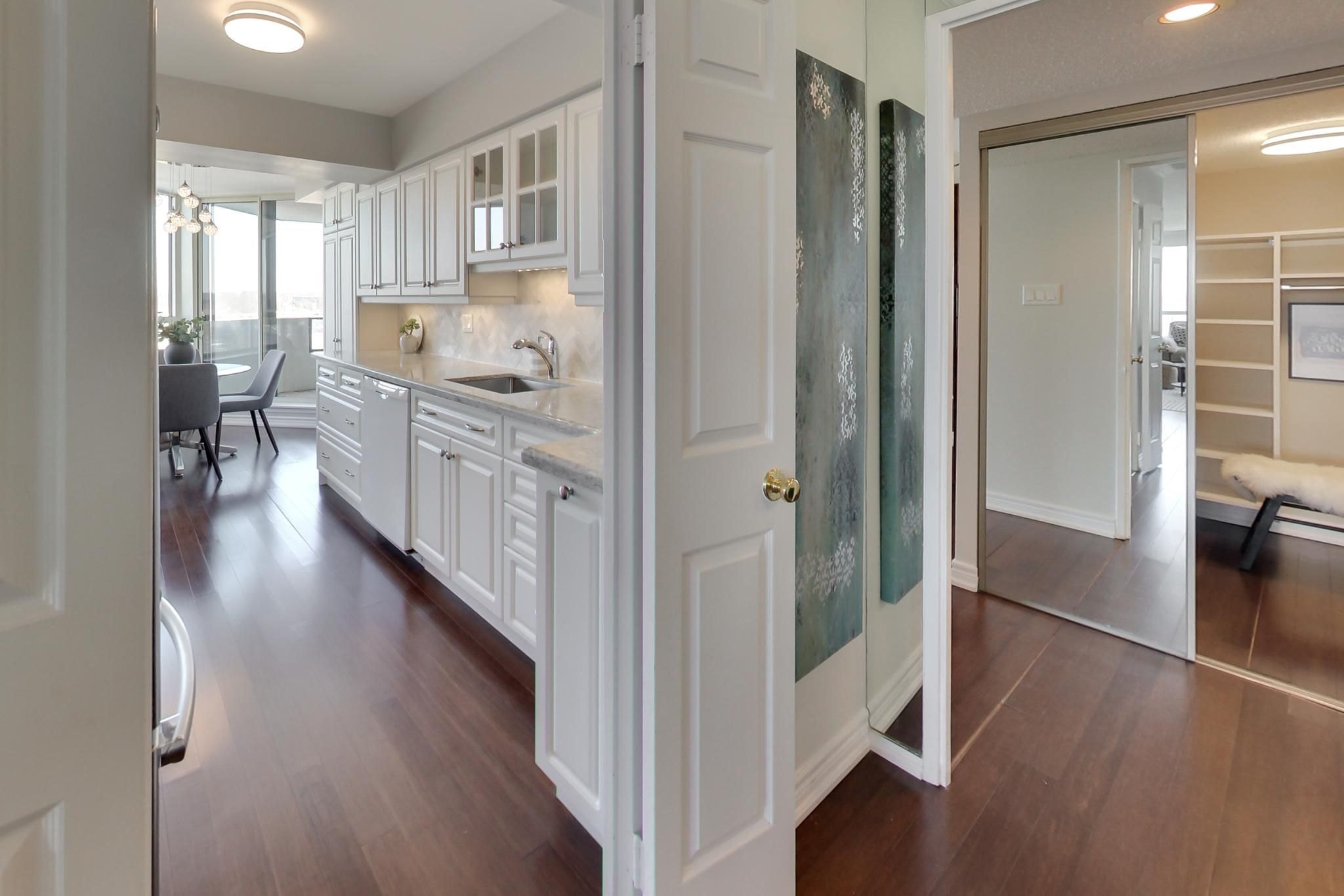 Welcome to tridel's walden pond2! Beautiful corner 1530 sq ft suite with clear views. Bright, open, spacious concept. 2 large bedrooms with ample space and privacy. Den was used as a third bedroom. Large kitchen with breakfast area and sliding doors to balcony. Carpet free! Engineered hardwood, has near floor to ceiling windows which floods the suite with year-round natural light. All-inclusive maintenance fees, including rogers basic cable and wifi. Has 2 underground parking spots, side-by-side and close to the elevator. The exceptionally managed building has many amenities. 24hr gatehouse security, full gym, indoor swimming pool, change rooms, billiards room, guest suites, library, tennis courts, and more. Walking distance to markville mall, restaurants, parks, trails, ponds, markville secondary school, centennial go station, groceries, and more.