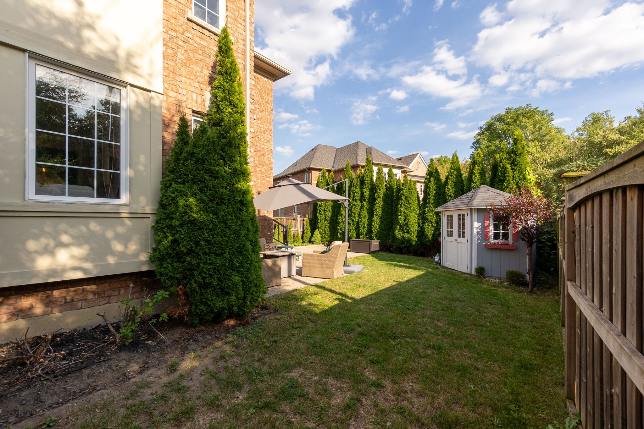 • Fully fenced backyard with professional landscaping for added privacy.
