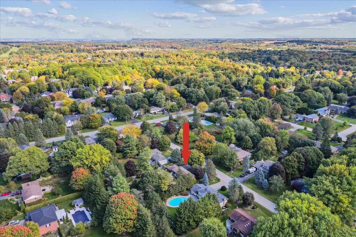 Reimagine your dreams & unlock the potential of this timeless well-proportioned raised bungalow on a stunning 100 x 200 ft mature private lot. Located in the sought-after community of carlisle, known for its estate-style properties & small town charm, this home offers the perfect combination of privacy, tranquility, & convenience, a short walk to parks and recreation centre, and all within easy reach of major commuter routes & urban amenities. Lovingly maintained & updated by original owners, the heart of this home features a light filled, spacious custom kitchen with generous amounts of cabinetry and fabulous backyard views. Sliding glass door to the large tiered deck allows convenient access to take in the outdoor sunshine, or build a fabulous 4 season sunroom addition! The incredible backyard awaits your personal touch to curate and create endless entertaining memories. Freshly painted throughout, this home offers a functional layout with a bright, light filled formal living room, sizeable primary bedroom with upgraded bathrooms featuring double under mount sinks, vanity with stone counter, wainscotting, crown moulding, skylight, seamless glass shower & additional separate 2-piece ensuite. 2 additional sizeable bedrooms complete the main level. The lower level expands the potential, featuring a spacious recreation room w/ fireplace, office/additional bedroom/flex space, laundry & workshop, well suited for a future media lounge, private guest suite, gym, or wine room. A cedar closet adds thoughtful storage with natural protection for seasonal items. Convenient separate entrance staircase to double garage with ample driveway (6) parking. Your future in beautiful carlisle is calling!