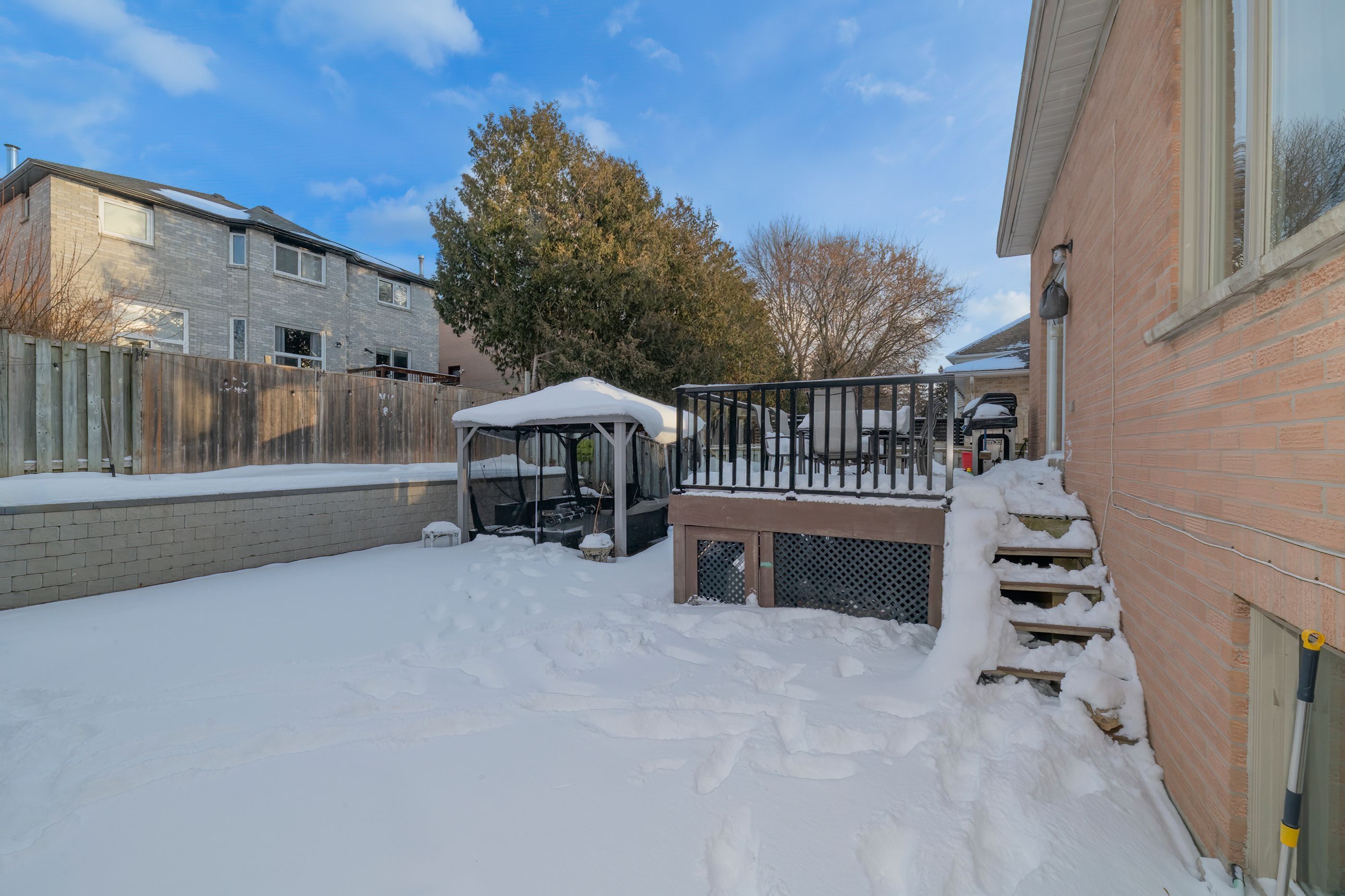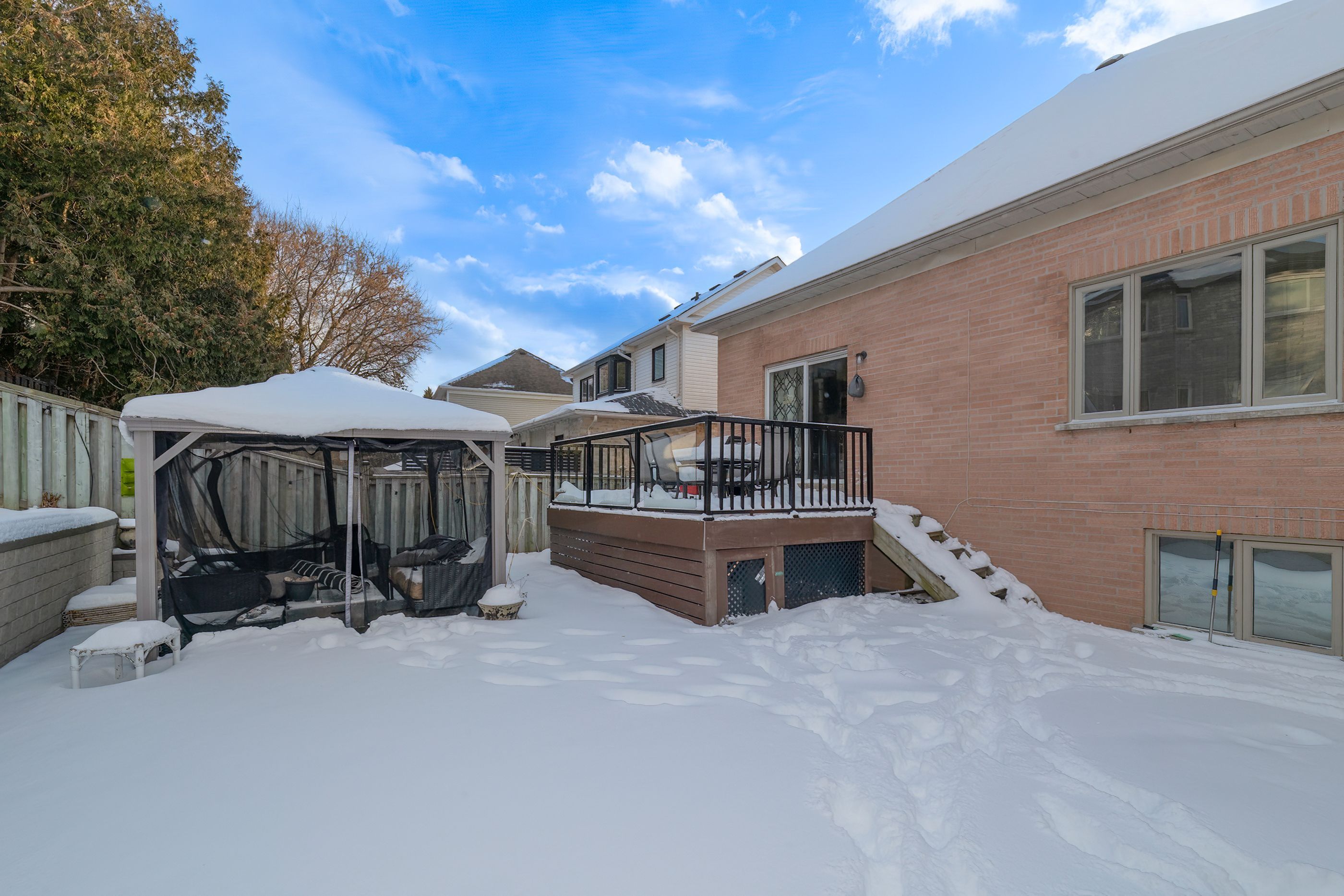 Welcome to 25 bedell crescent, whitby: a perfect blend of comfort, style, and space! Nestled on a quiet, family-friendly crescent, this beautiful brick-front home offers the perfect retreat for growing families or those looking for a versatile living space. From the moment you pull up to the oversized garage and the charming, snow-dusted landscape, you'll feel right at home. Interior highlights: bright & airy main level: step into a sun-drenched open-concept living and dining area featuring warm hardwood floors and a striking vaulted ceiling. The cozy gas fireplace is the perfect centerpiece for winter evenings. Modern comfort: the spacious kitchen flows seamlessly into the dining area, making it ideal for hosting dinner parties or family holidays. Versatile living spaces: a secondary lower-level family room, complete with its own fireplace and large window,s offers the perfect spot for a home theatre, playroom, or a quiet den. Generous bedrooms: retreat to the expansive primary suite or one of the well-appointed guest bedrooms, all featuring large windows and ample closet space. The great outdoors: the private backyard is an entertainer's dream, featuring a large raised resin deck, fully interlocked, and a lower stone-walled patio area. Whether you're hosting summer bbqs under the gazebo or enjoying the privacy of the fenced-in yard, this outdoor space is built for memories. Key features: multiple fireplaces for a cozy ambiance throughout. Large windows that flood every room with natural light. Spacious lower level with a separate bathroom, perfect for an in-law suite or teen retreat. Prime whitby location: close to top-rated schools, parks, shopping, and easy transit access. Don't miss your chance to own this whitby gem! Schedule your private showing today.